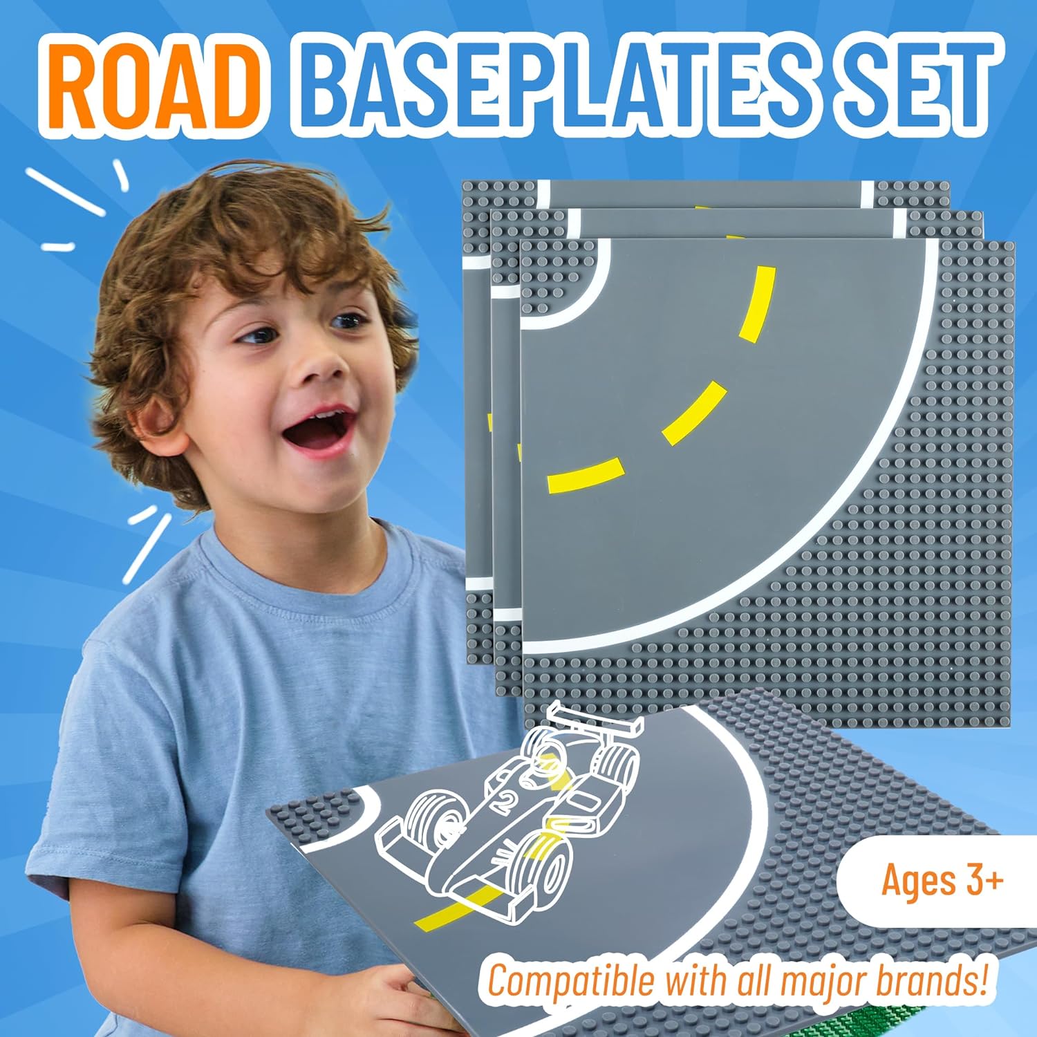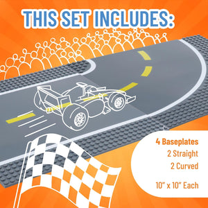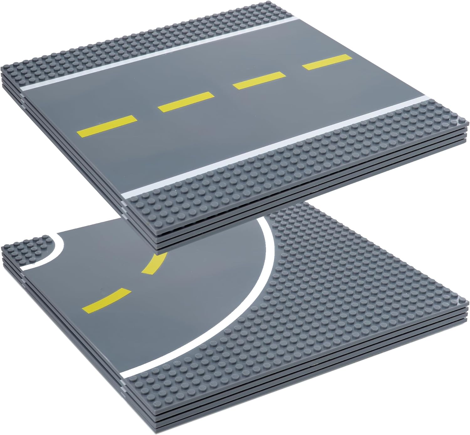 - INCLUDED IN THE SET: This set includes 1 straight stackable plate with smooth roads in the centers. The smooth road sections are 7 inches wide. Measuring 10 x 10 inches, each baseplate features 32 x 32 standard-size pegs. The possibilities are endless as your child uses their imagination to build tables or mats, or simply lay them out over the floor for hours of imaginative fun. Encourage STEM learning & open-ended play with this versatile set perfect for children of all ages.