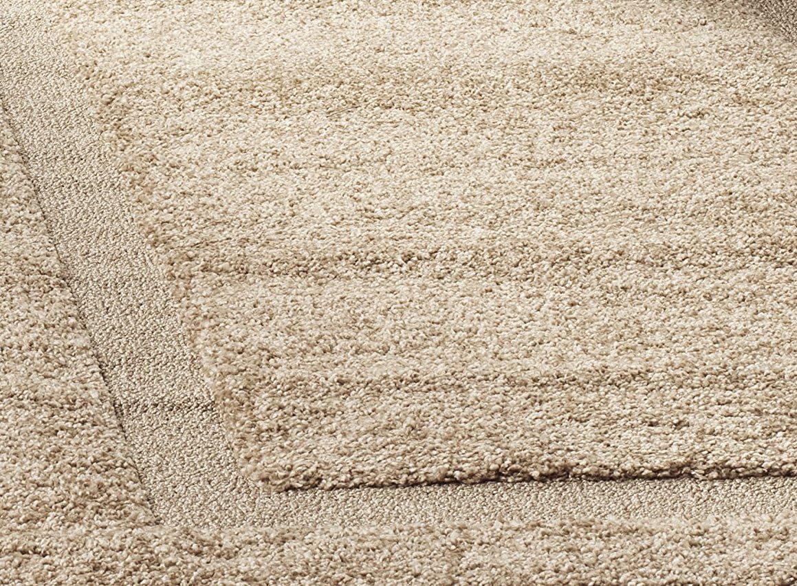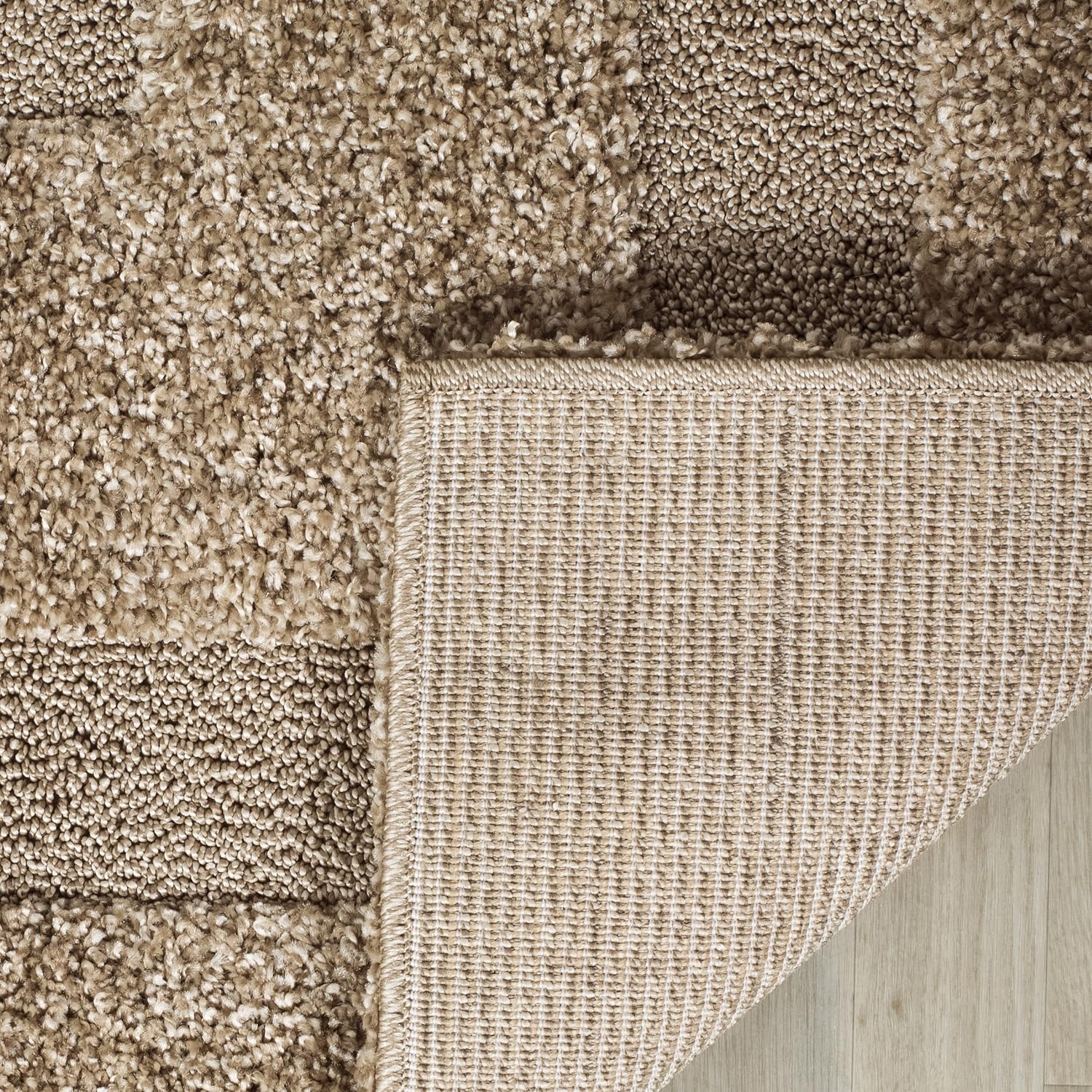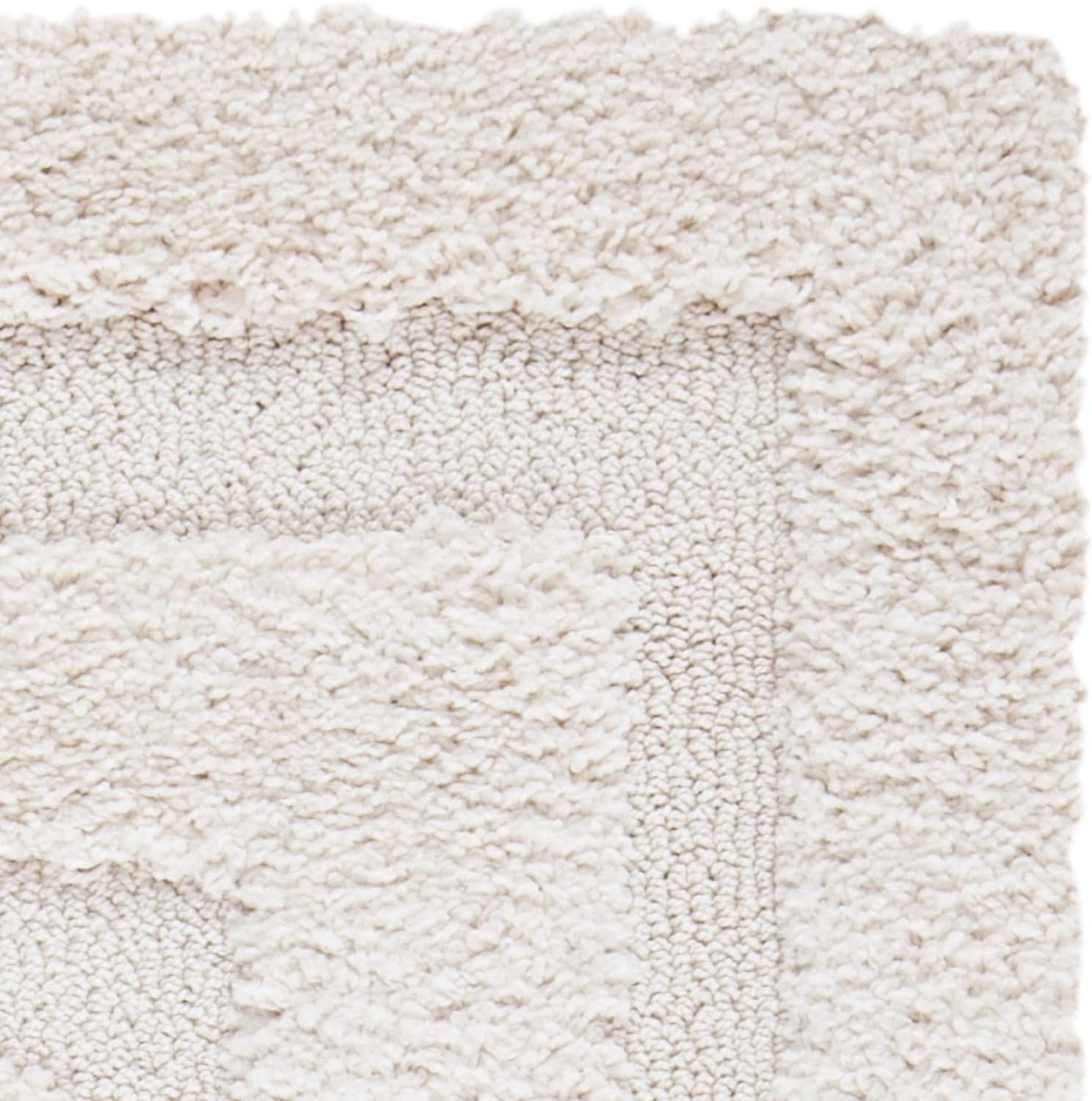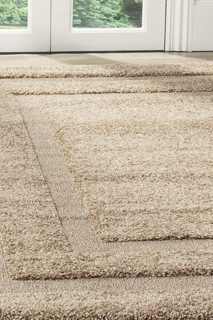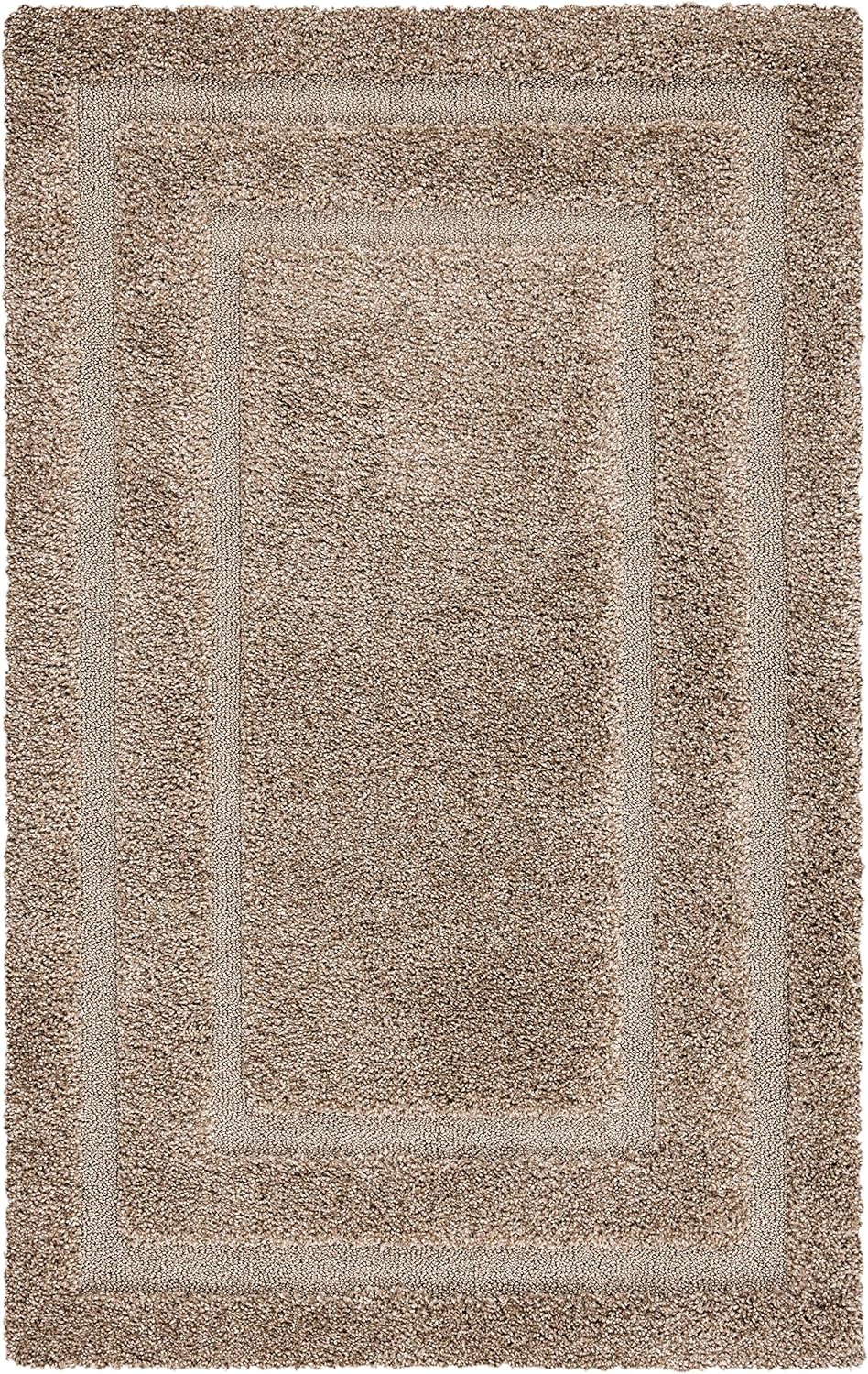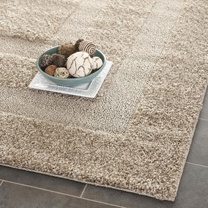 Soften your décor with this luxurious Shadow Box shag rug from Safavieh. It adds a touch of clean and tasteful elegance to your home with its soft neutral palette. Featuring a subtle high low texture with beige colored tone on tone borders, the rug creates an alluring geometric sculptured effect.