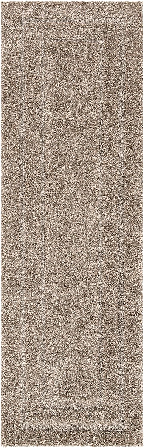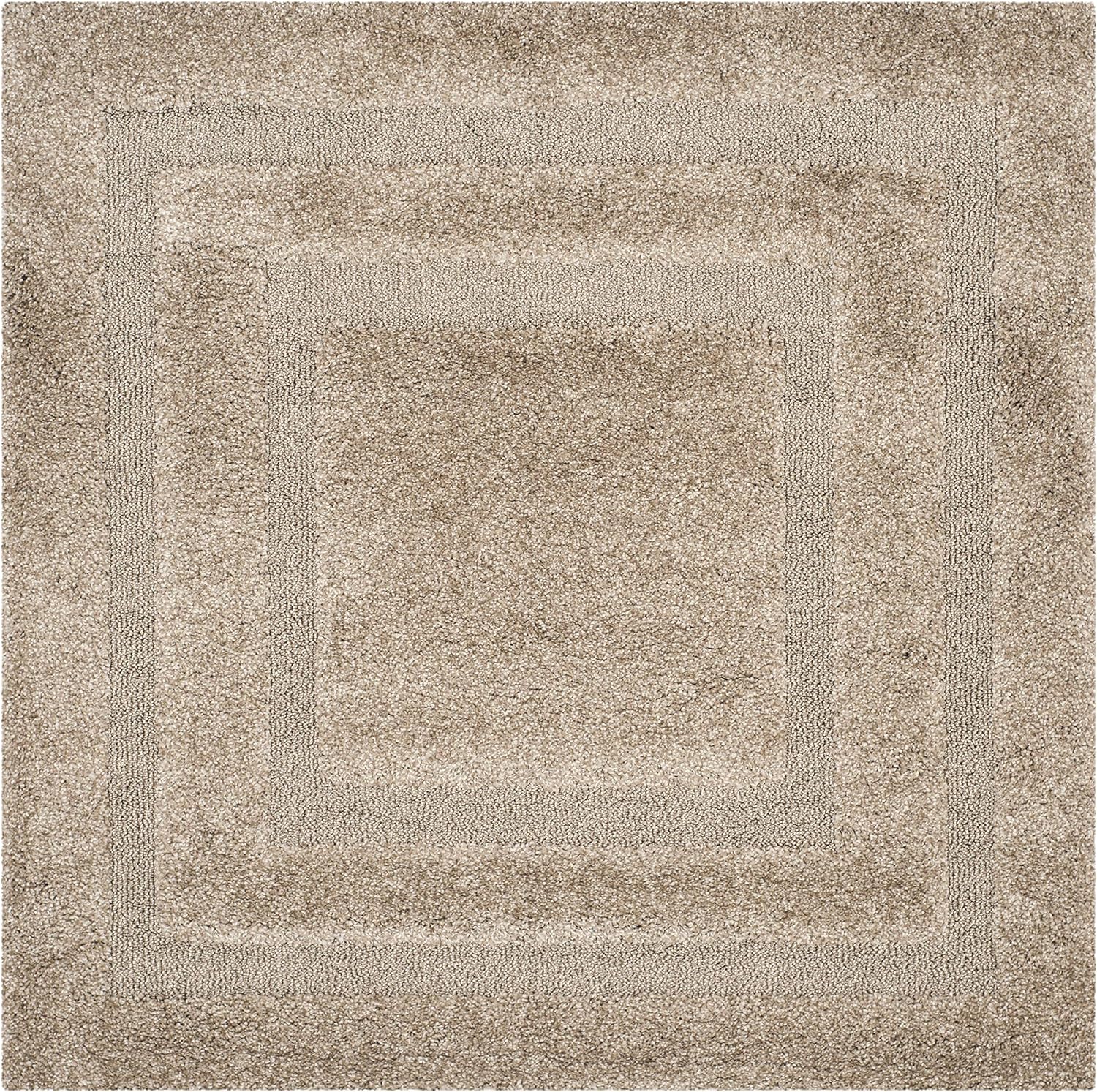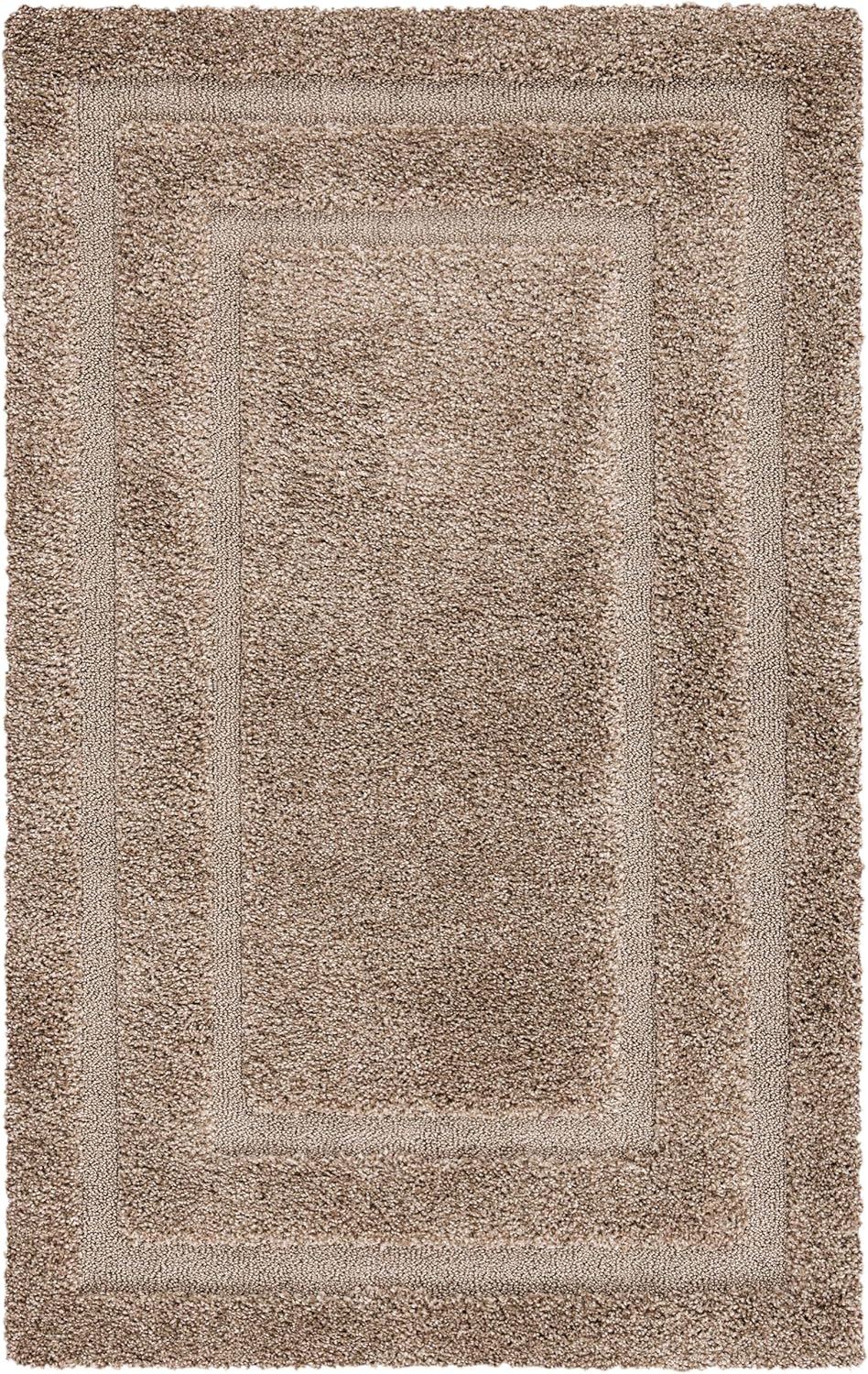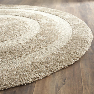 Safavieh Florida Shag Collection 5' Round Beige / Beige SG454 Border Non-Shedding Living Room Bedroom Dining Room Entryway Plush 1.2-inch Thick Area Rug