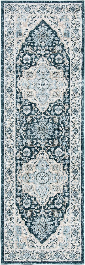 SAFAVIEH Isabella Collection 2'2" x 7' Navy/Cream ISA936N Oriental Non-Shedding Living Room Entryway Foyer Hallway Bedroom Runner Rug