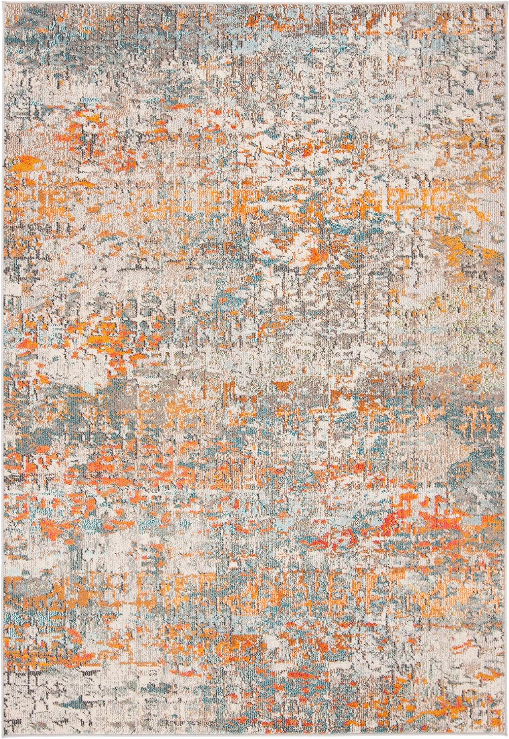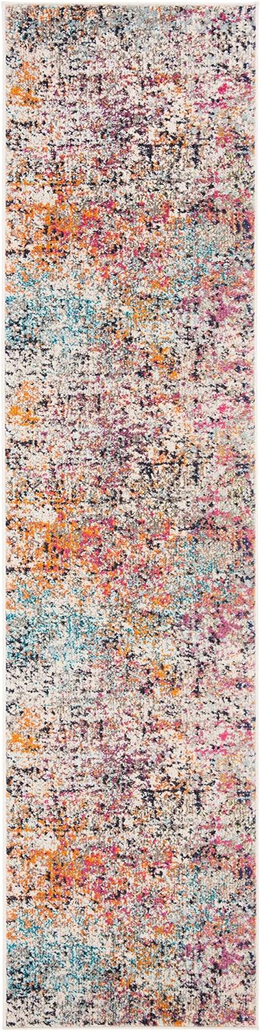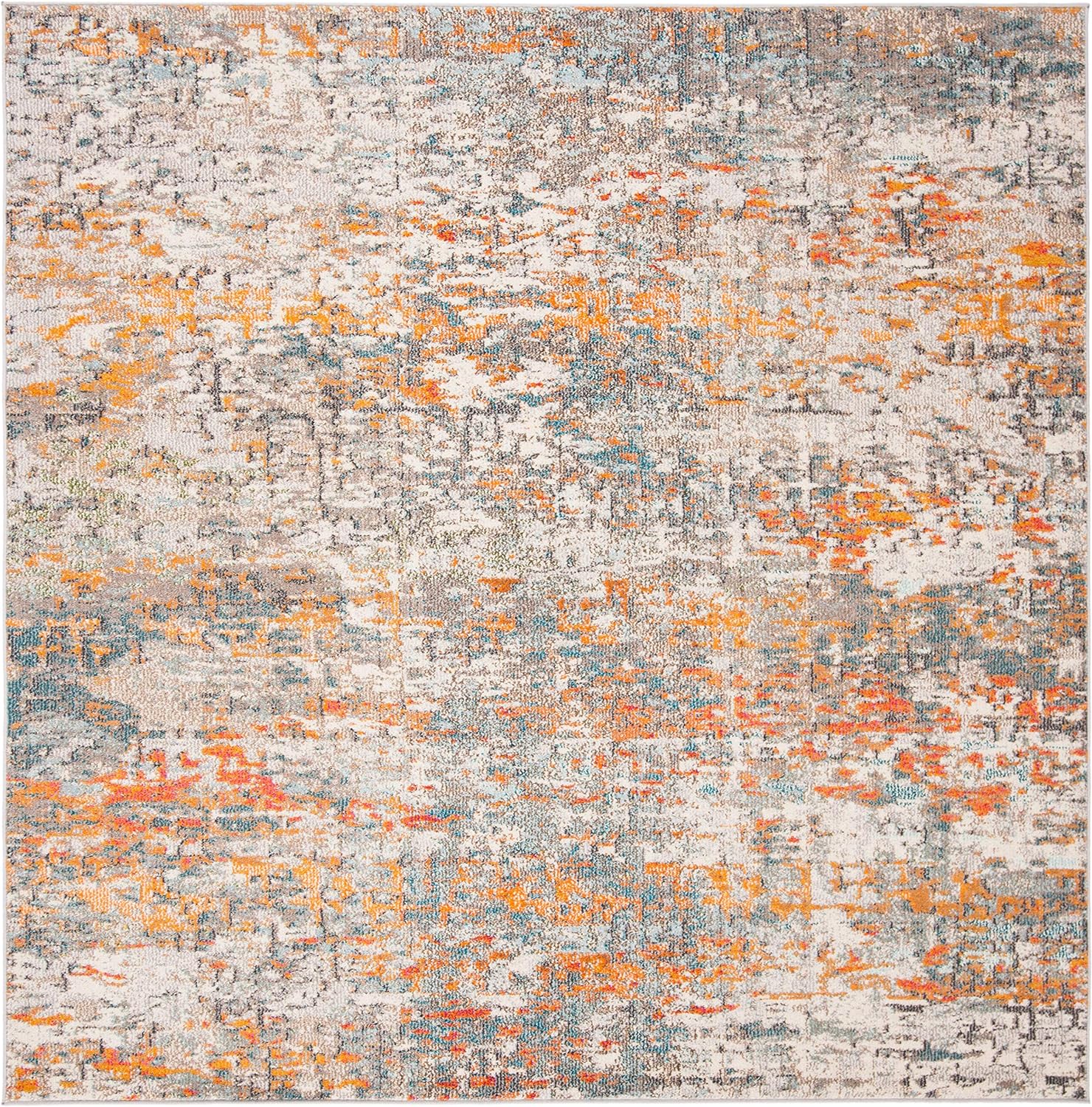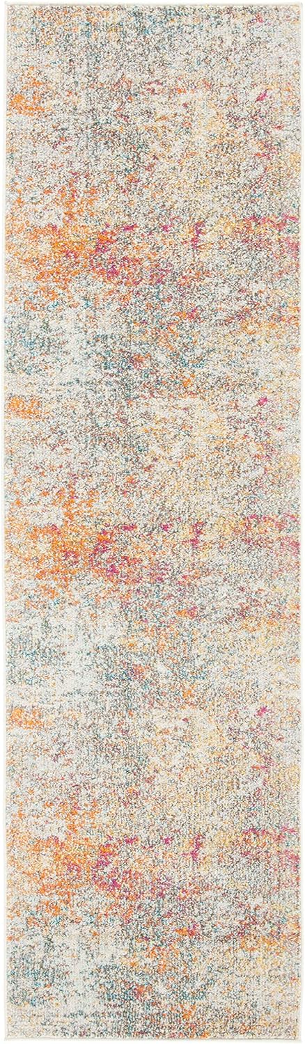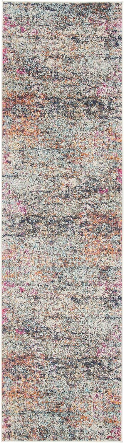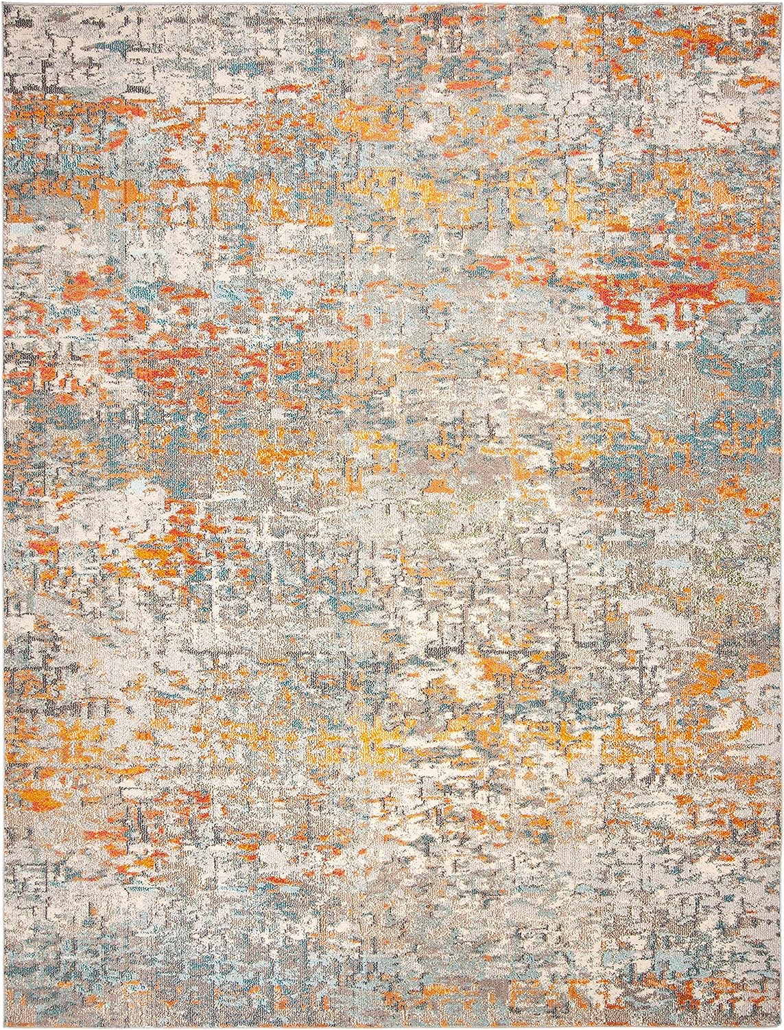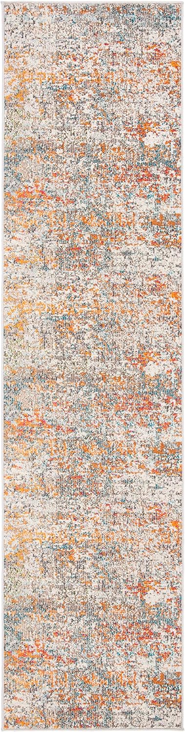 SAFAVIEH Madison Collection 2'2" x 20' Grey/Orange MAD460F Modern Abstract Non-Shedding Living Room Bedroom Runner Rug