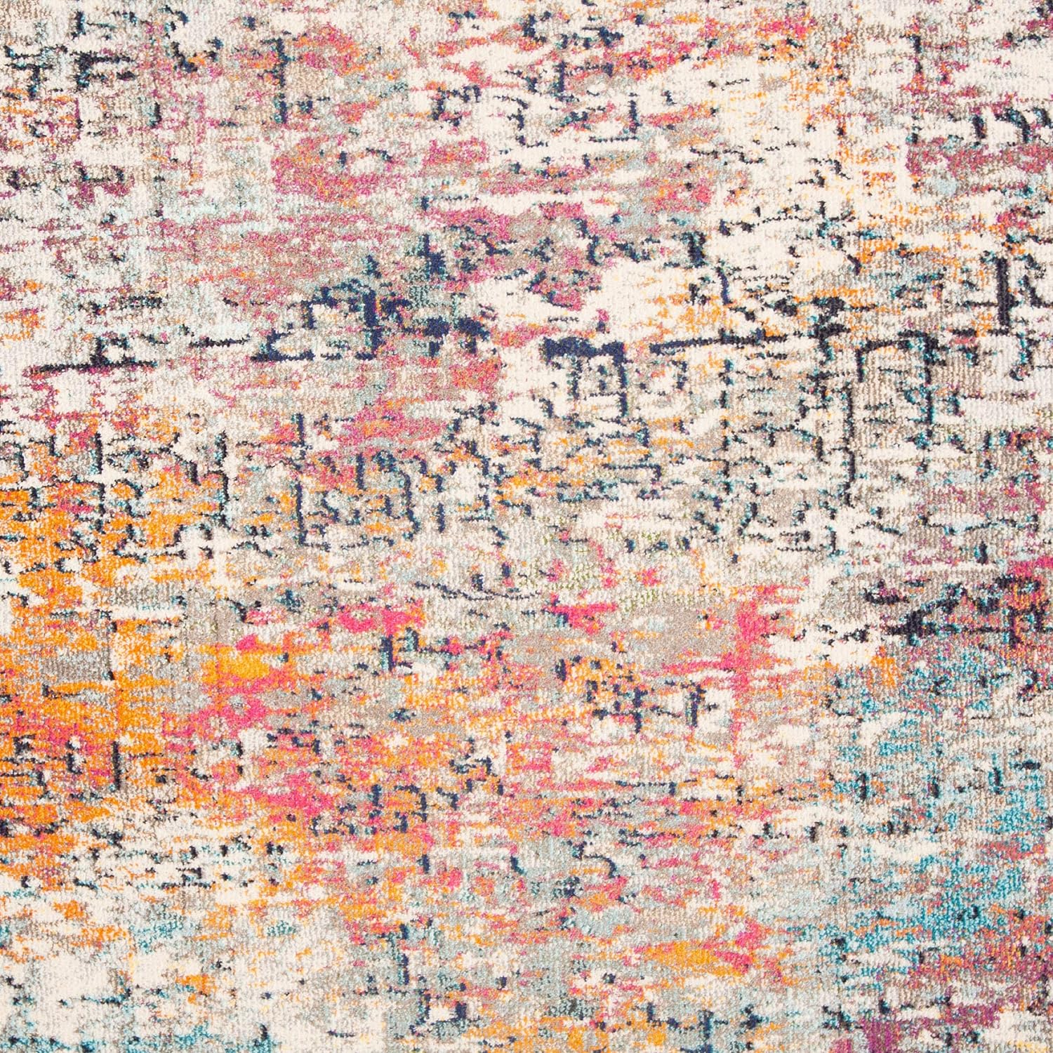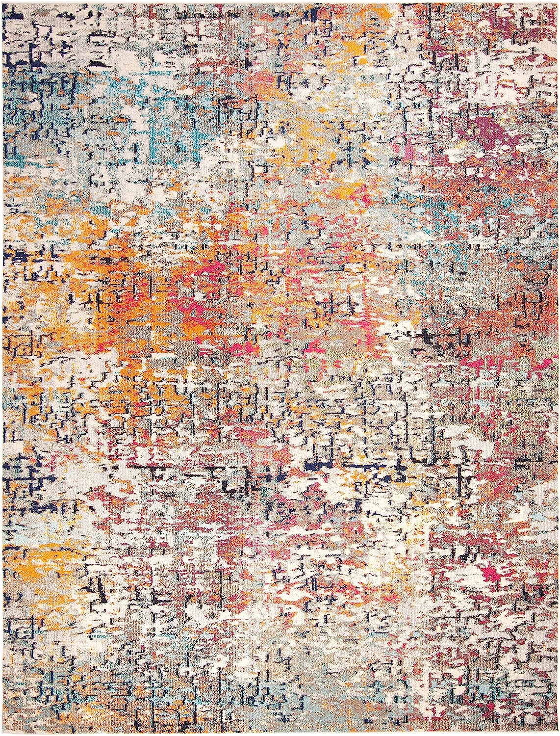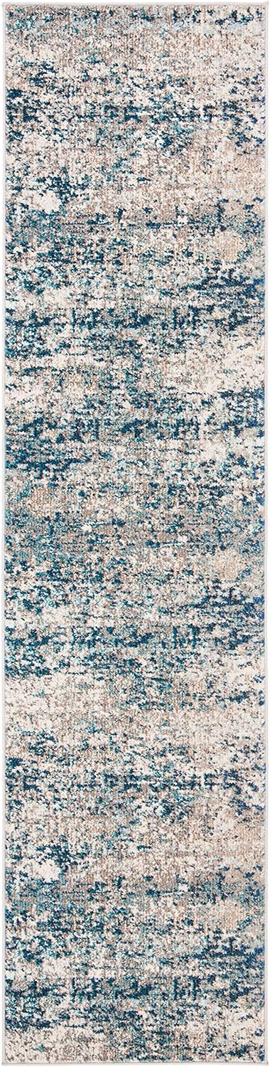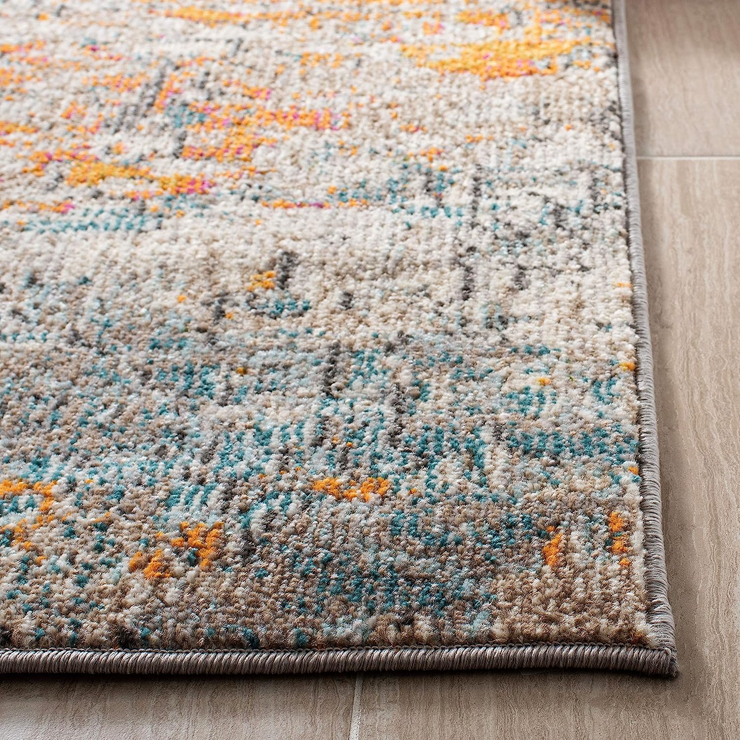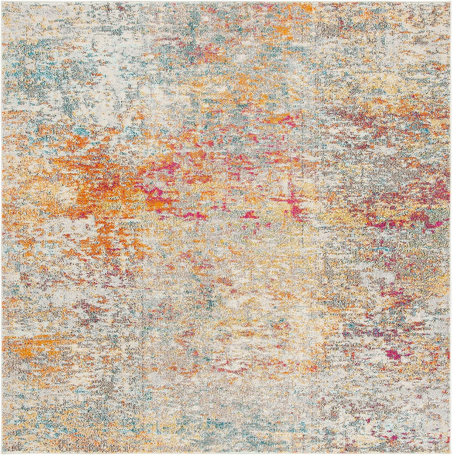 SAFAVIEH Madison Collection 2'2" x 20' Grey/Orange MAD460F Modern Abstract Non-Shedding Living Room Bedroom Runner Rug