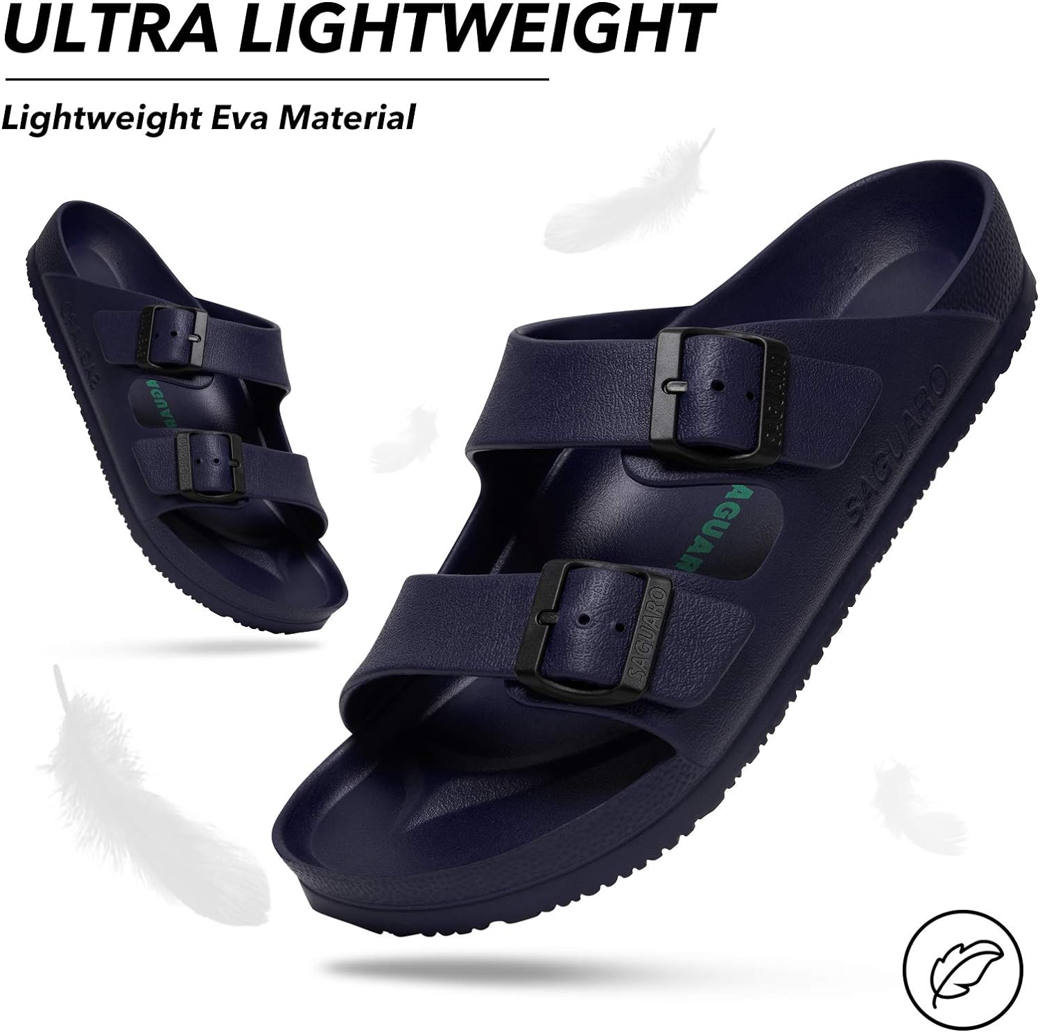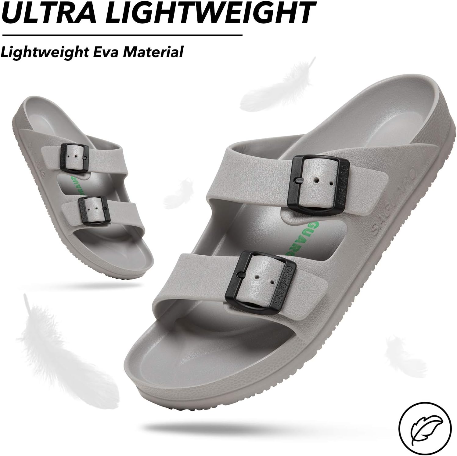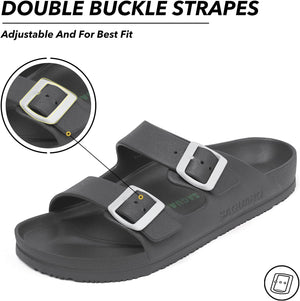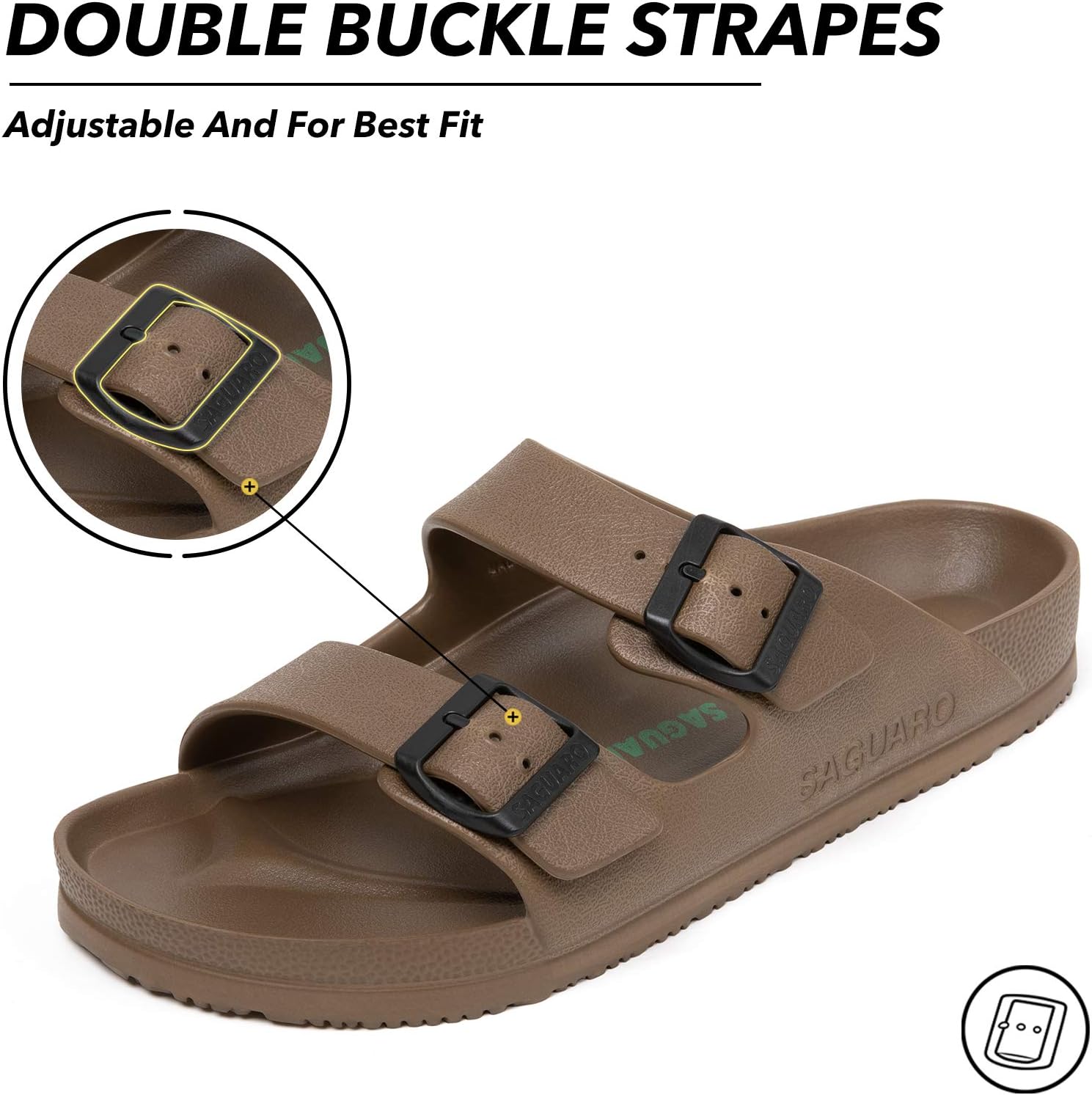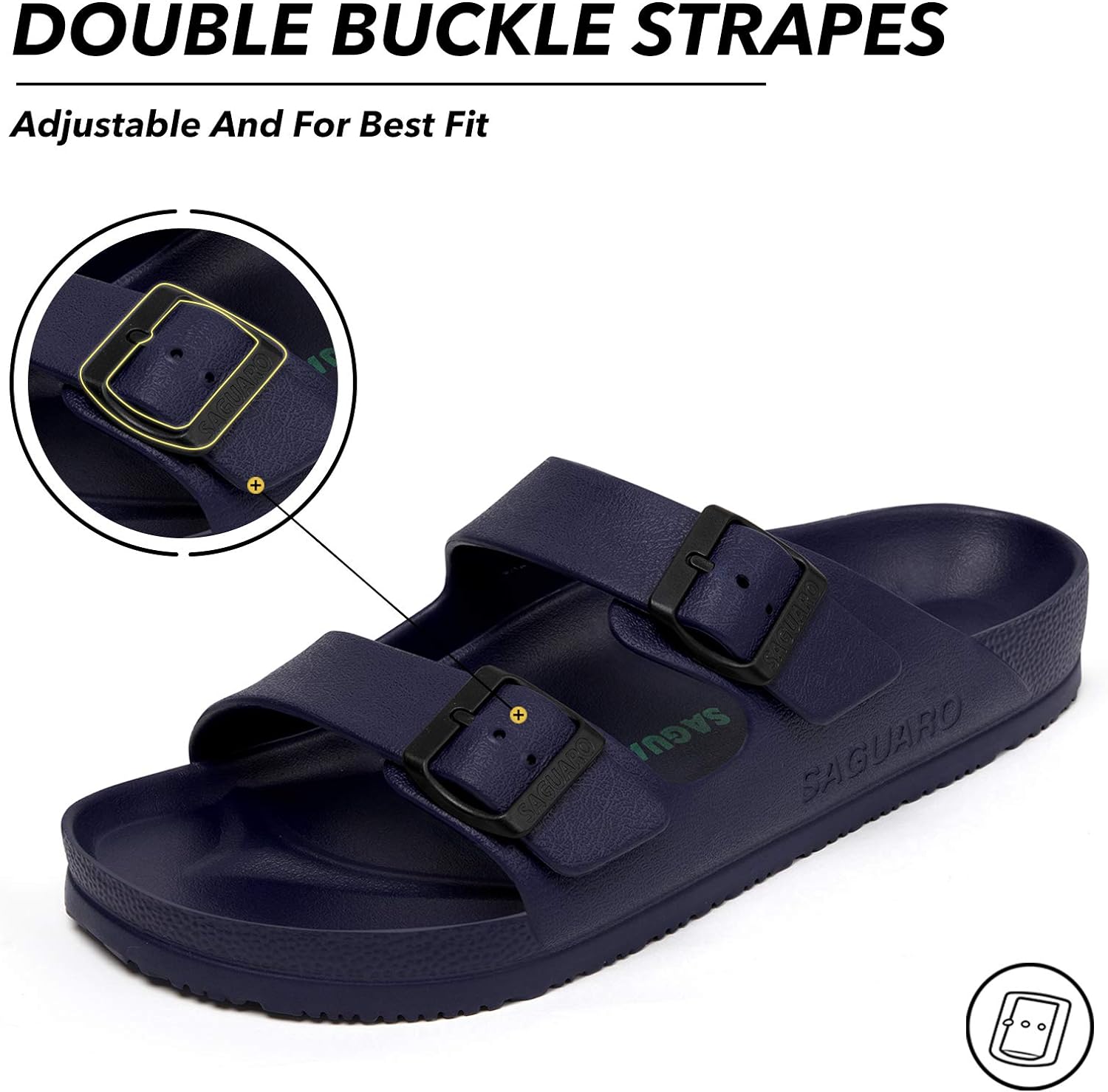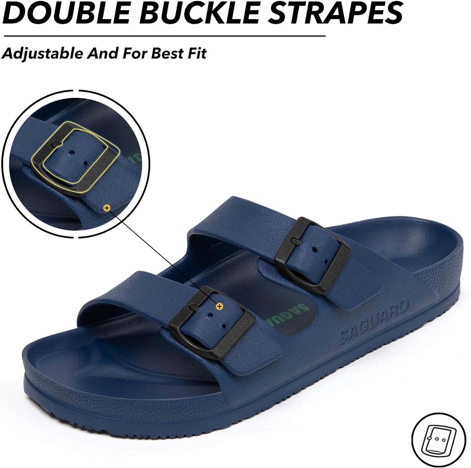 SAGUARO Men's Women's Comfort Slides Double Buckle Sandals Lightweight Adjustable EVA Sandals with Rubble Sole