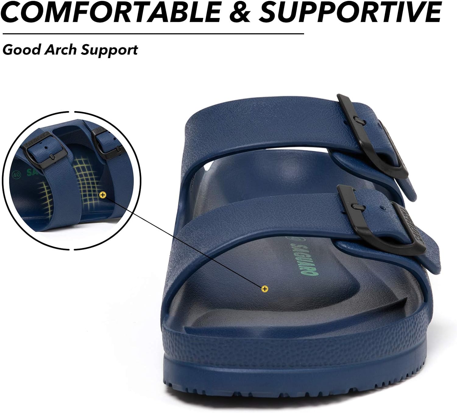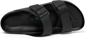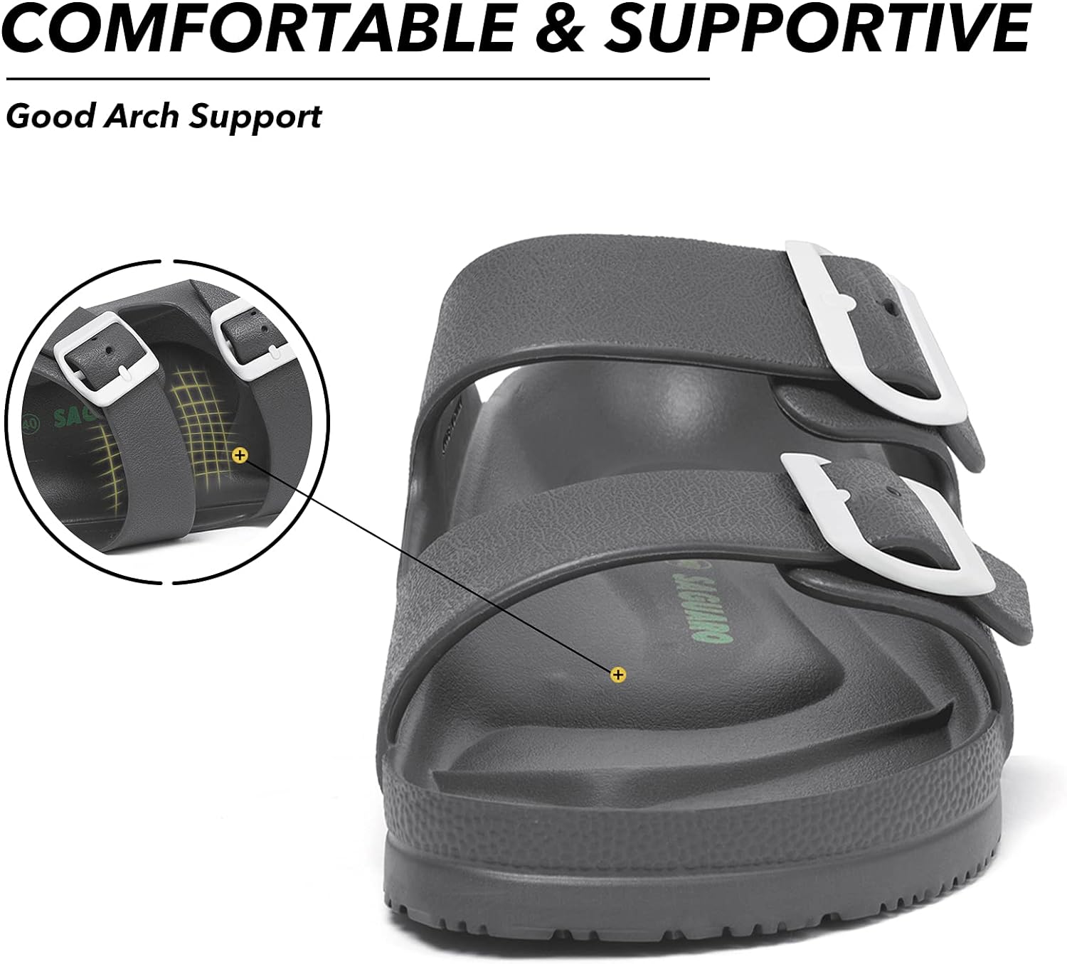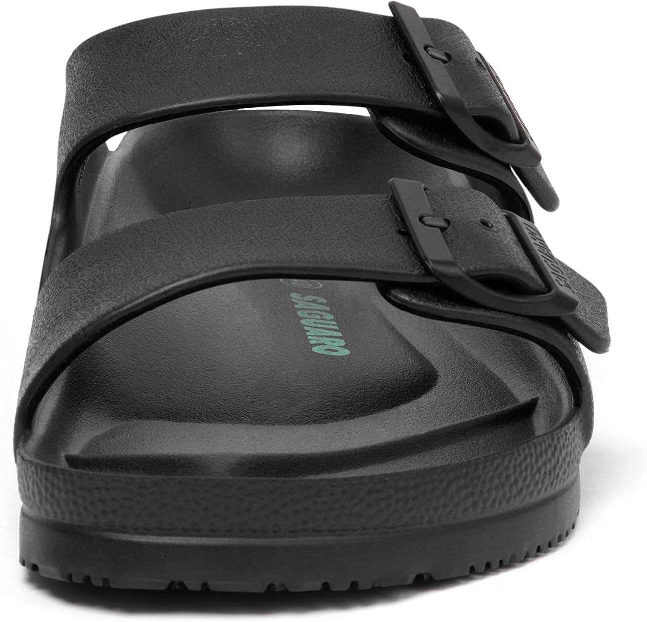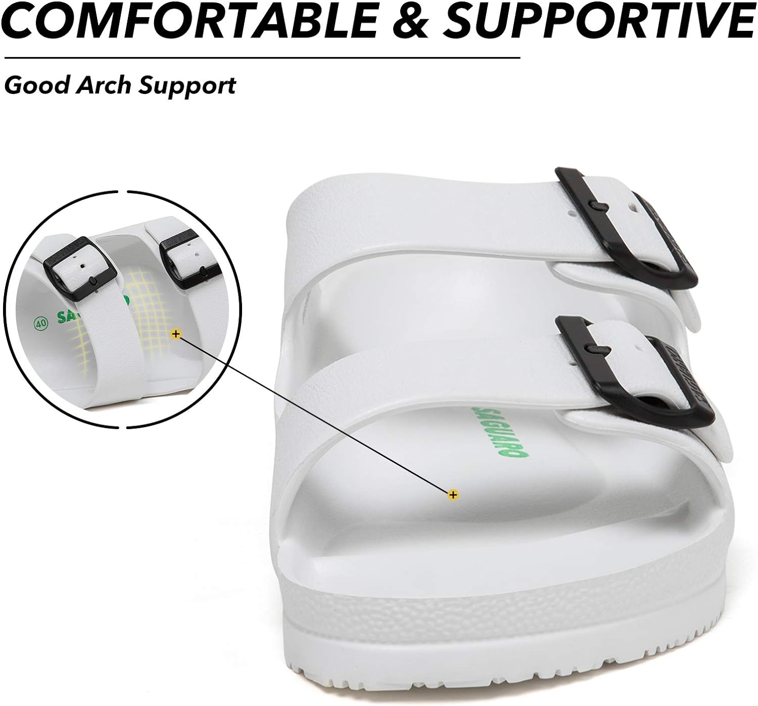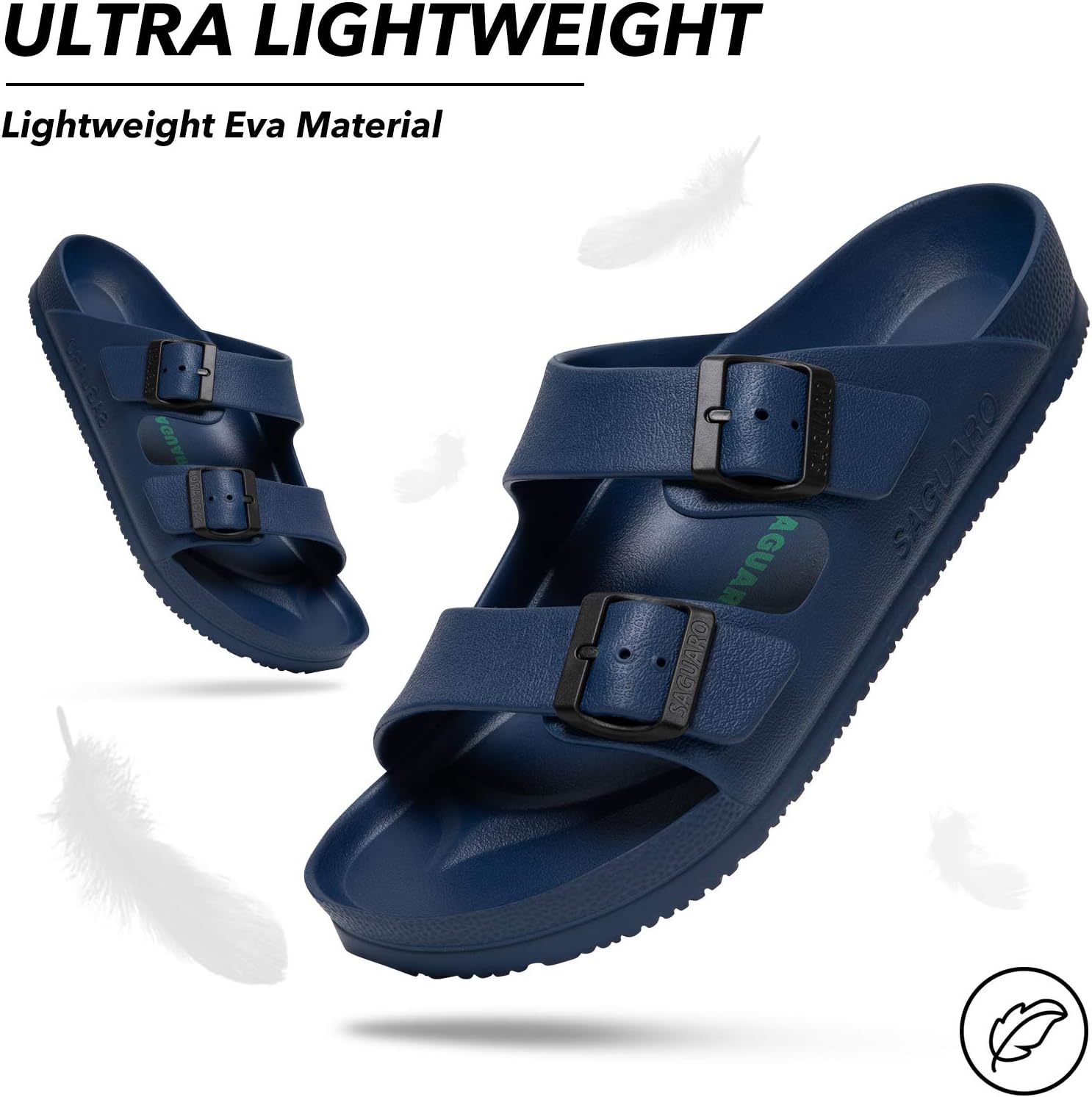 SAGUARO Men's Women's Comfort Slides Double Buckle Sandals Lightweight Adjustable EVA Sandals with Rubble Sole