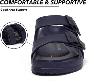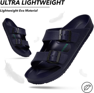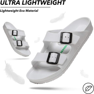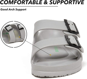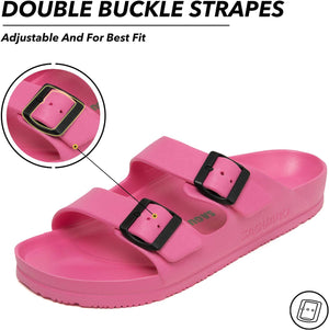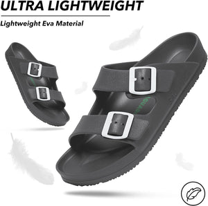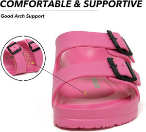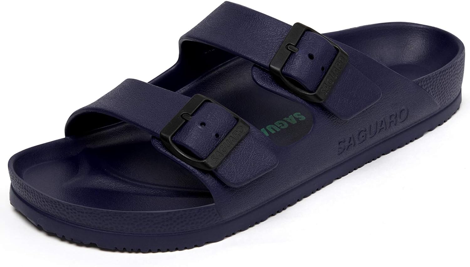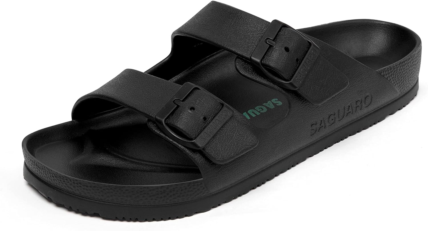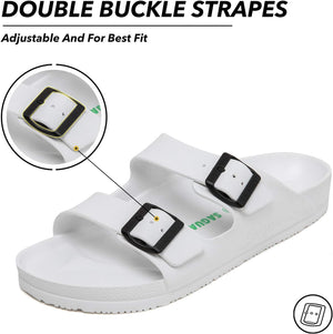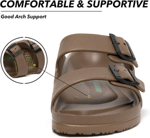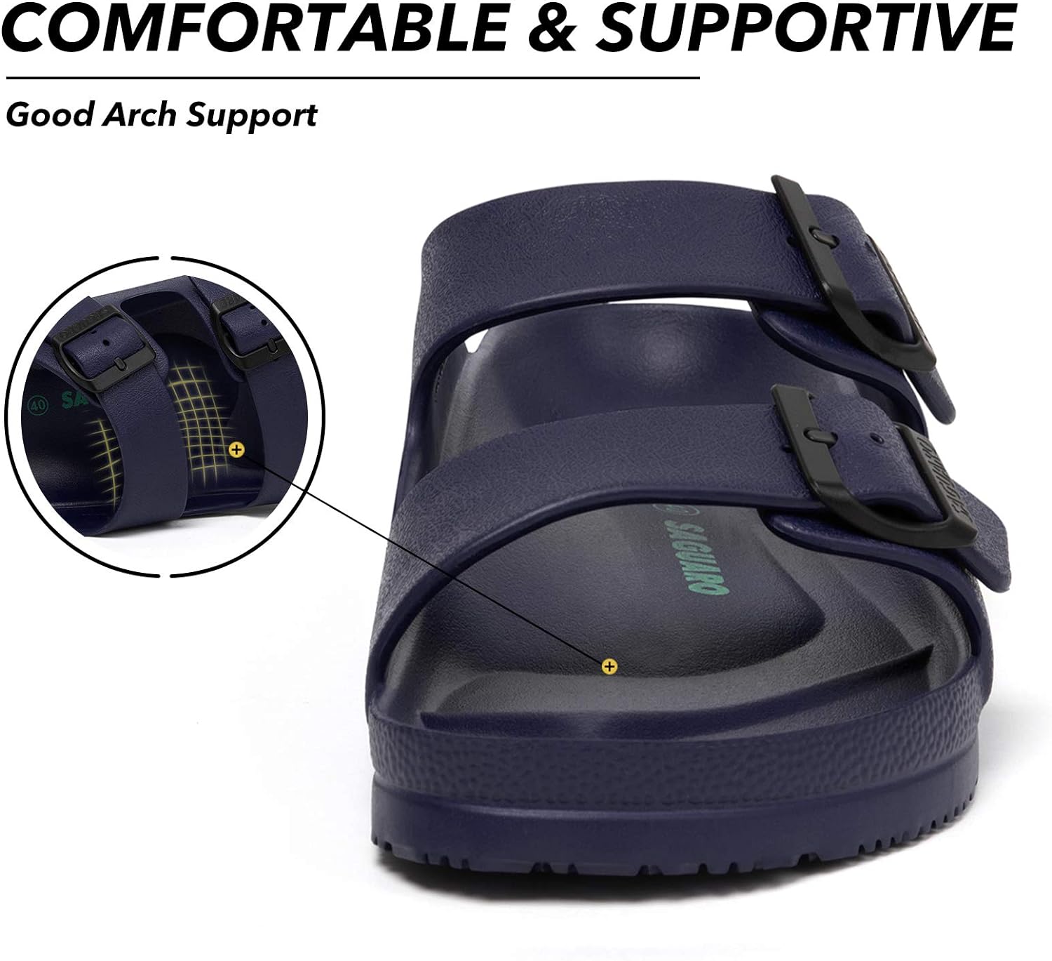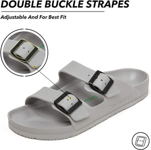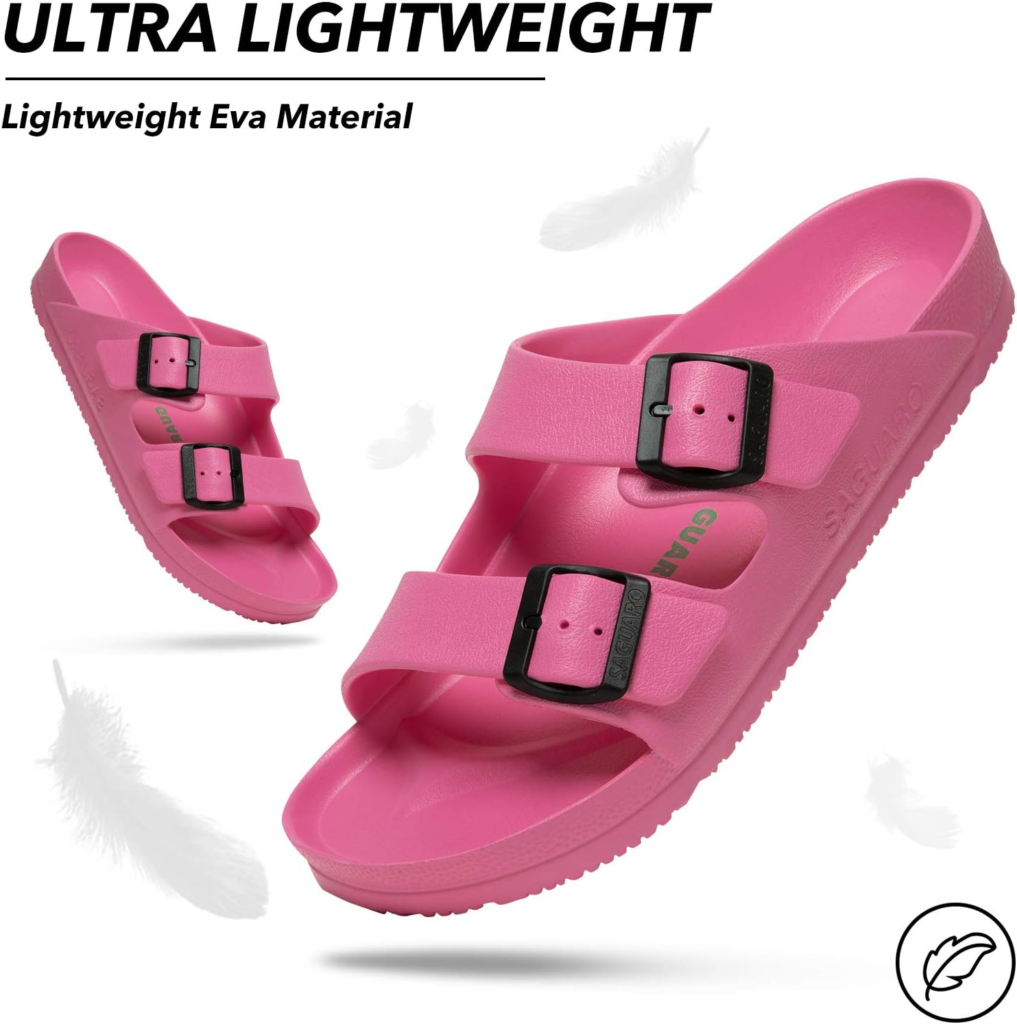 SAGUARO Men's Women's Comfort Slides Double Buckle Sandals Lightweight Adjustable EVA Sandals with Rubble Sole