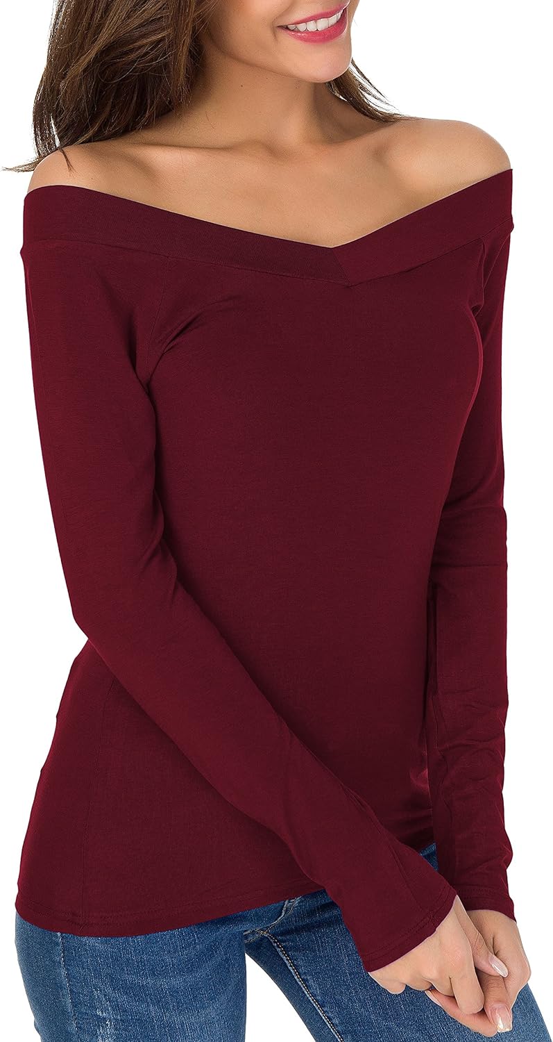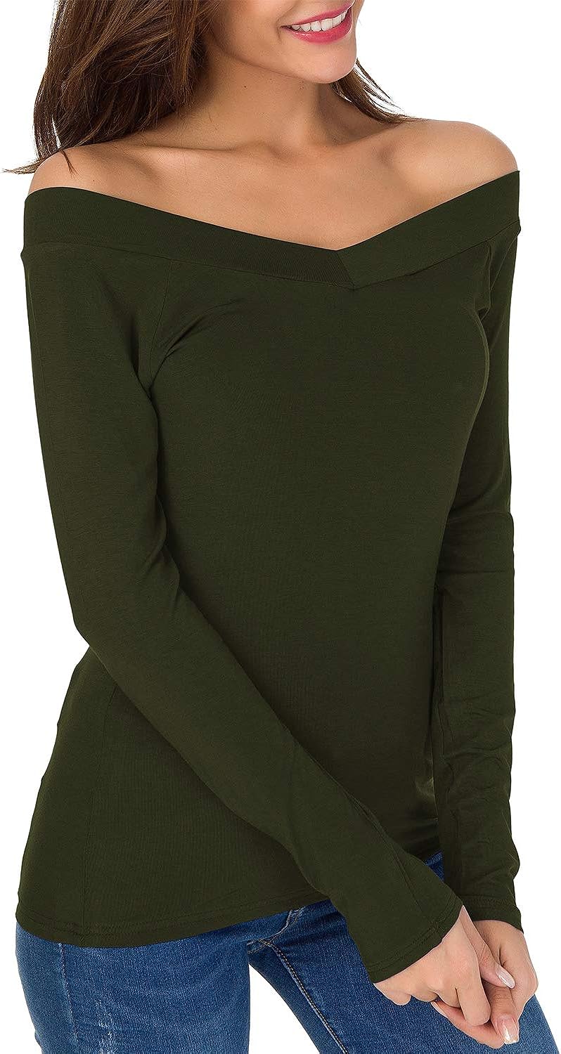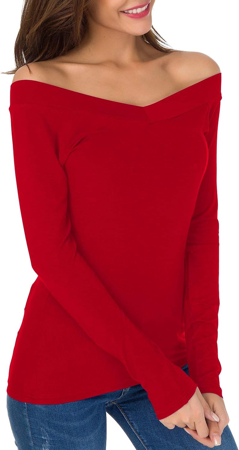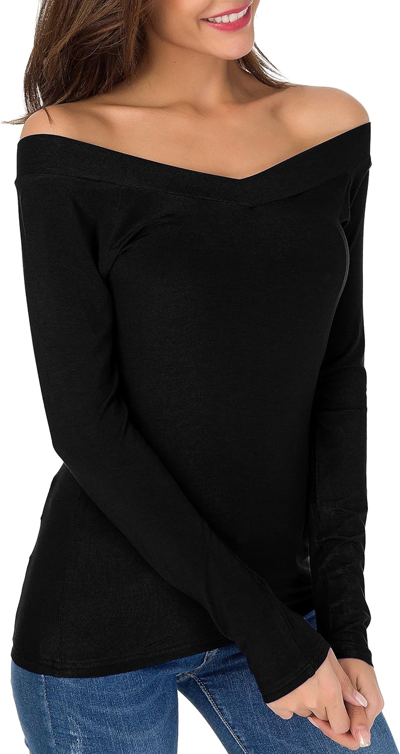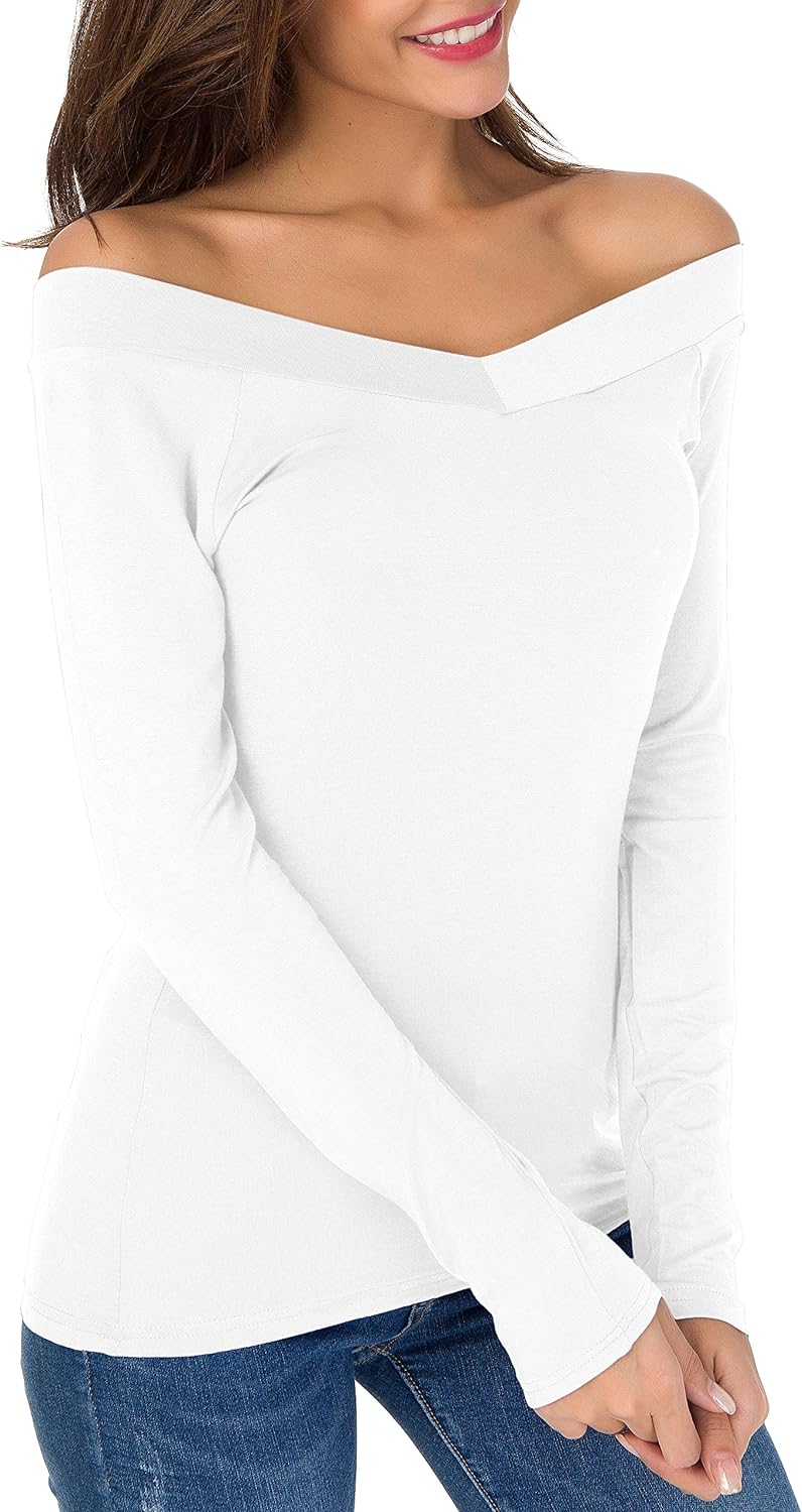Sarin Mathews Womens Shirts Off The Shoulder Tops Sexy V Neck Slim Fit Shirts Tops Blouses