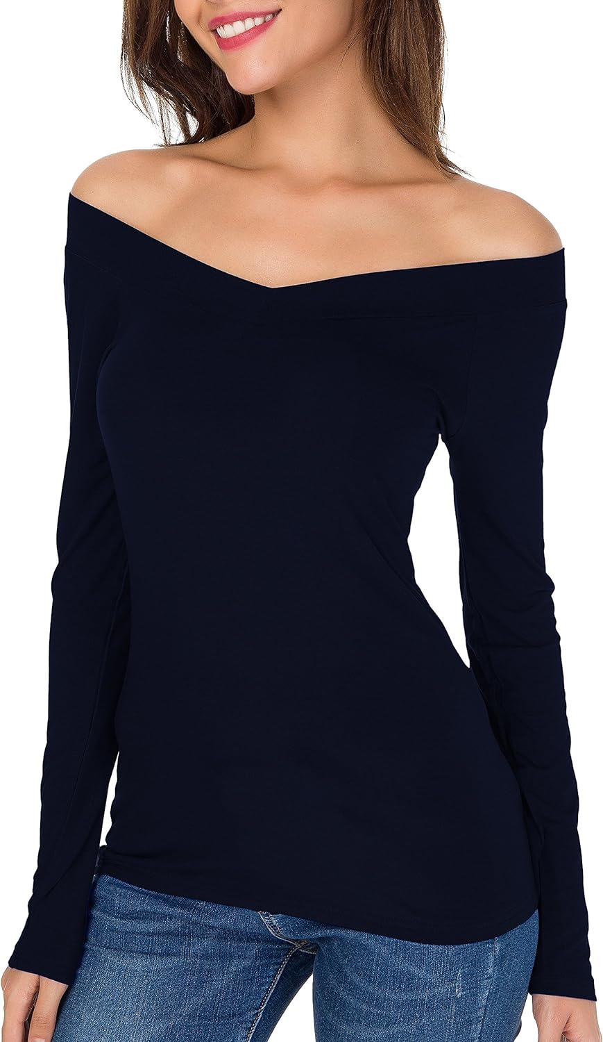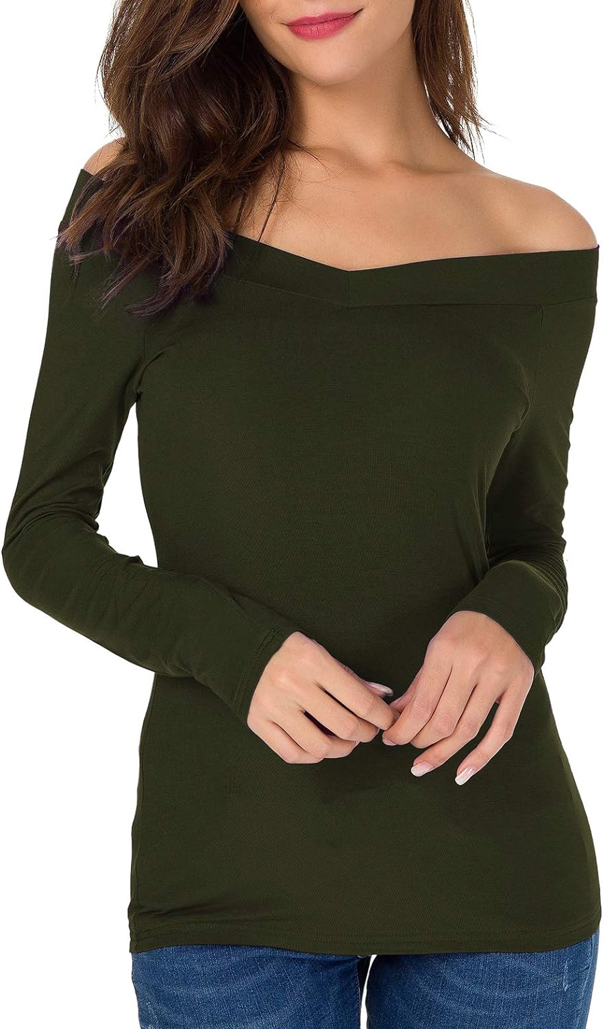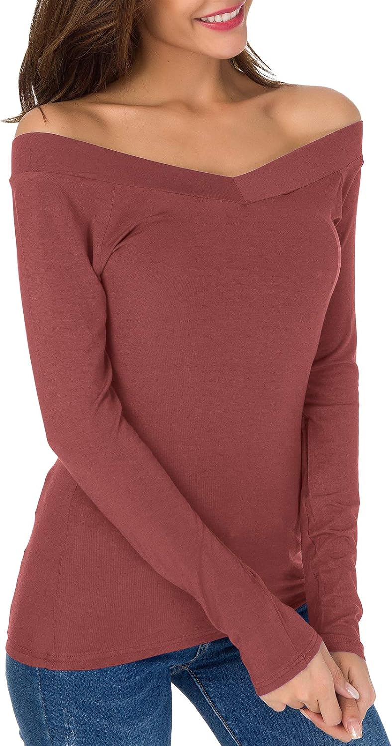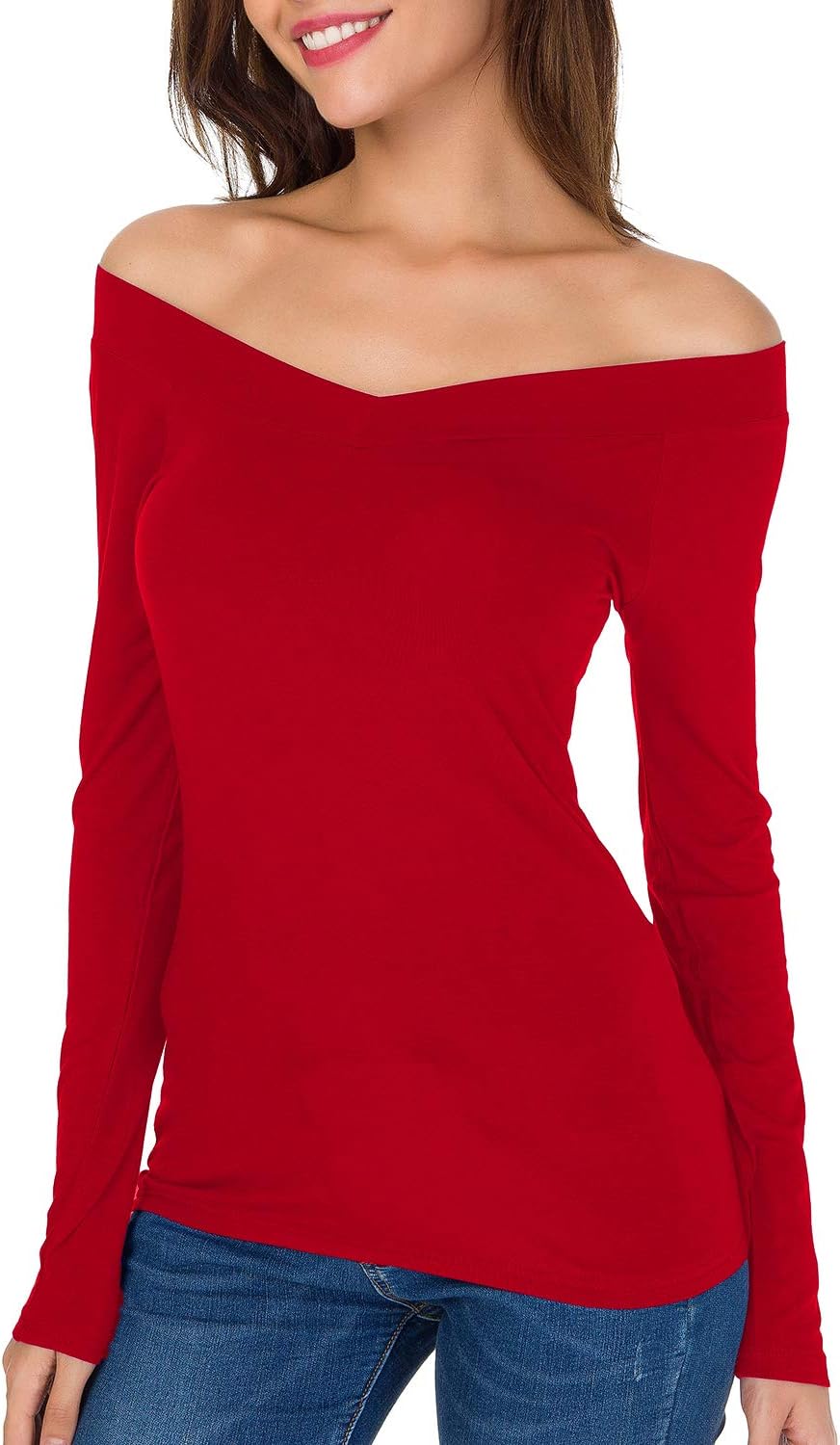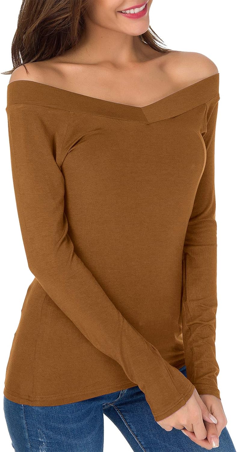 Sarin Mathews Womens Shirts Off The Shoulder Tops Sexy V Neck Slim Fit Shirts Tops Blouses