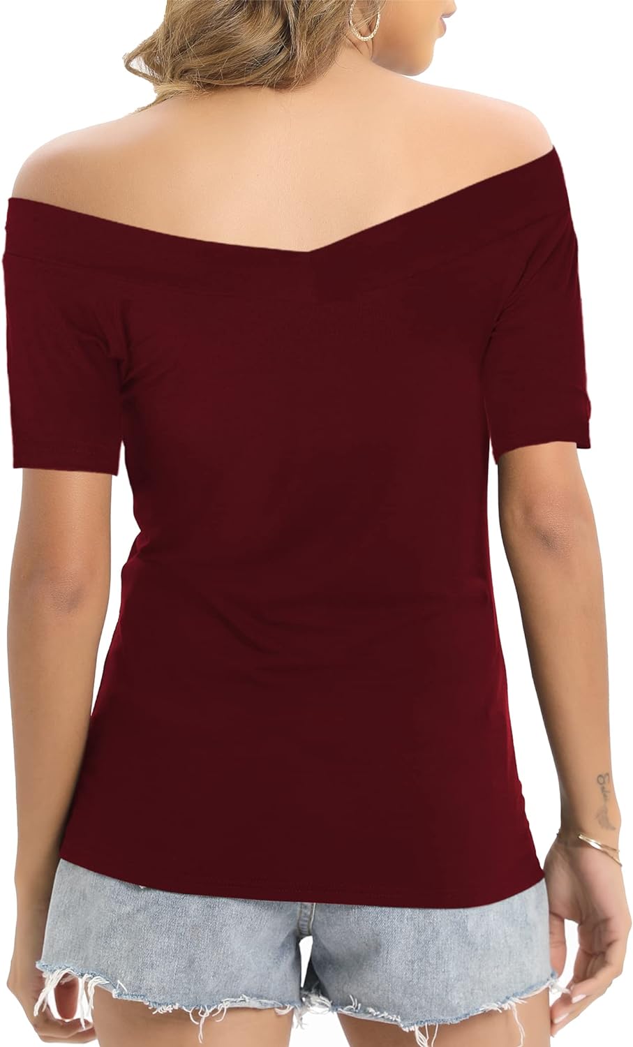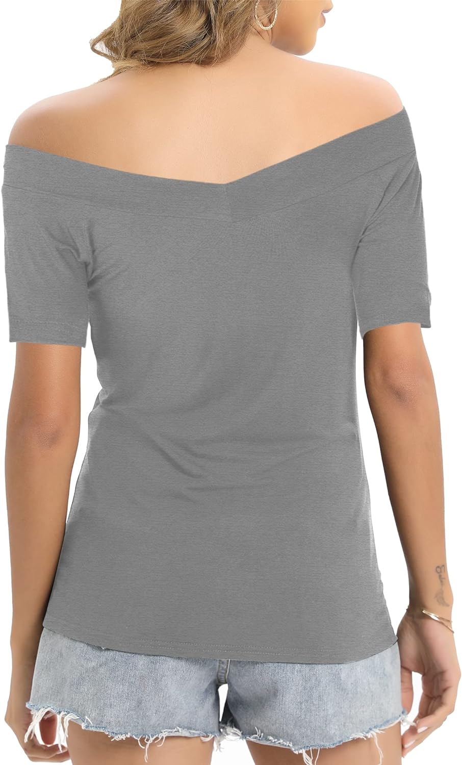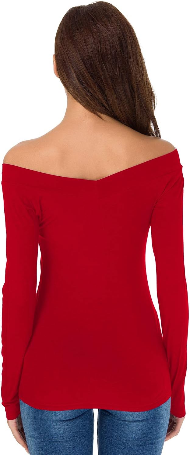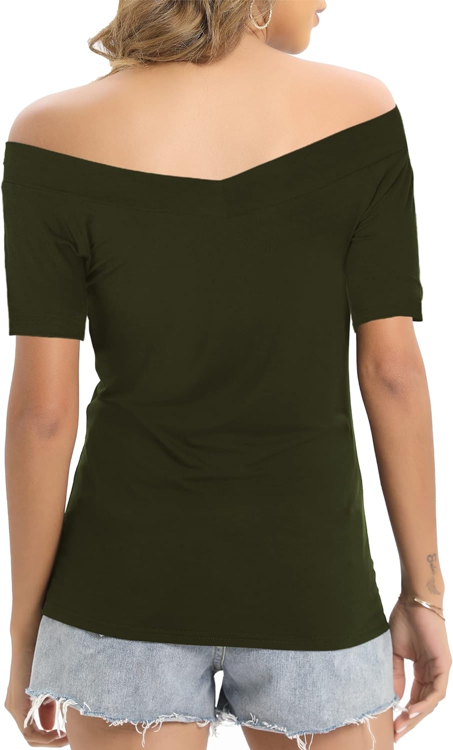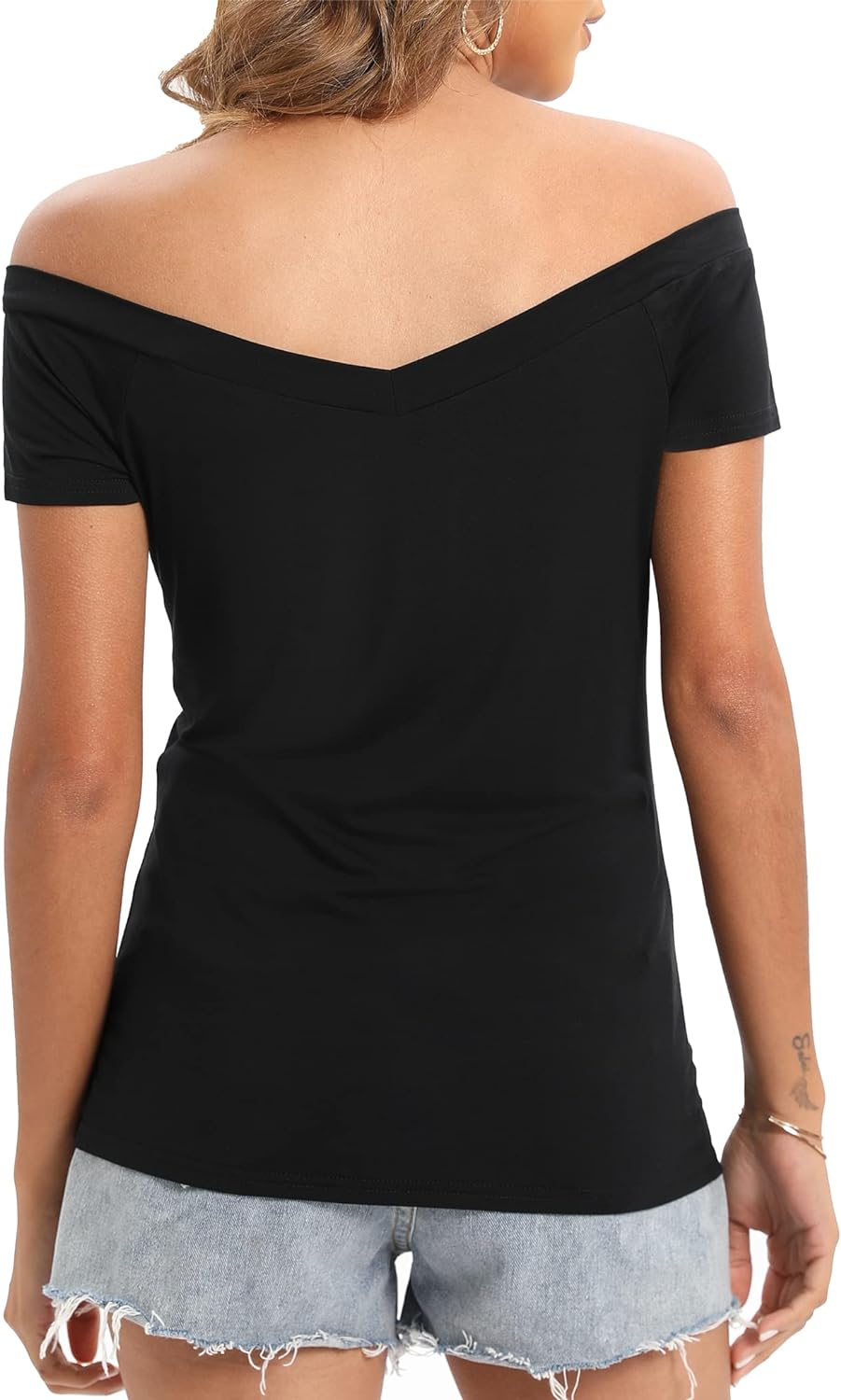 Sarin Mathews Womens Shirts Off The Shoulder Tops Sexy V Neck Slim Fit Shirts Tops Blouses