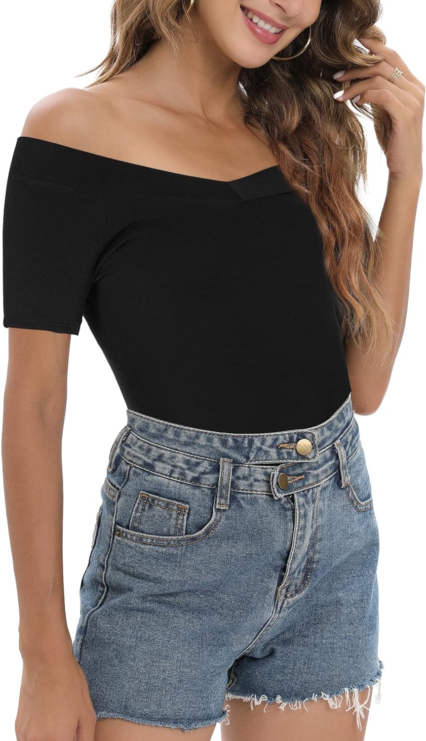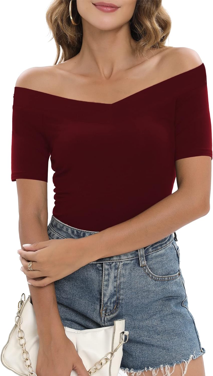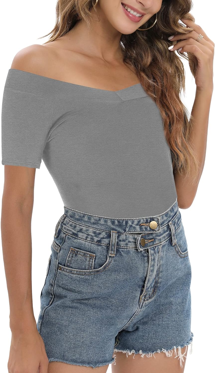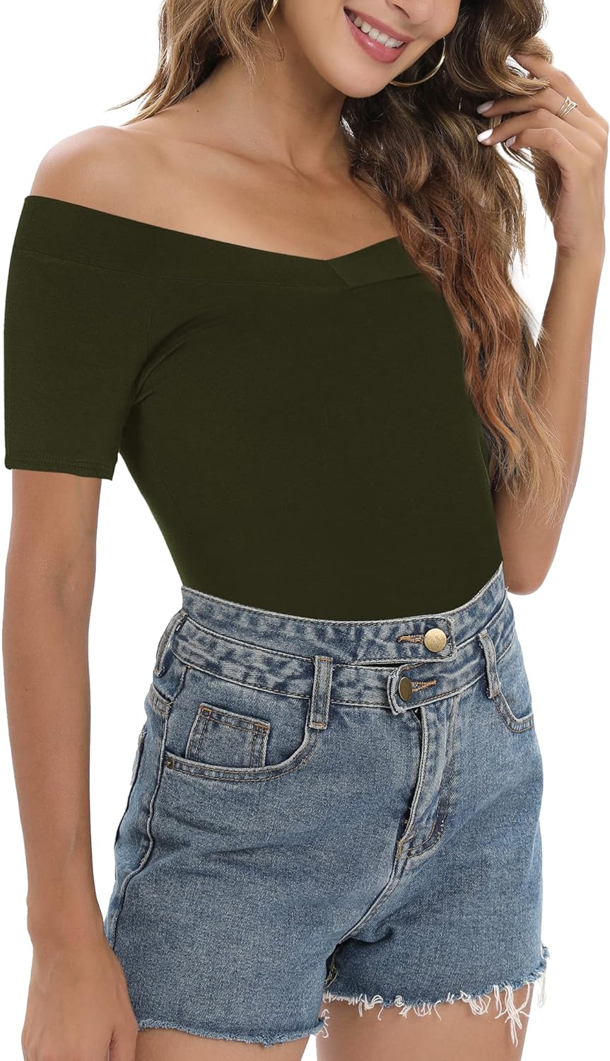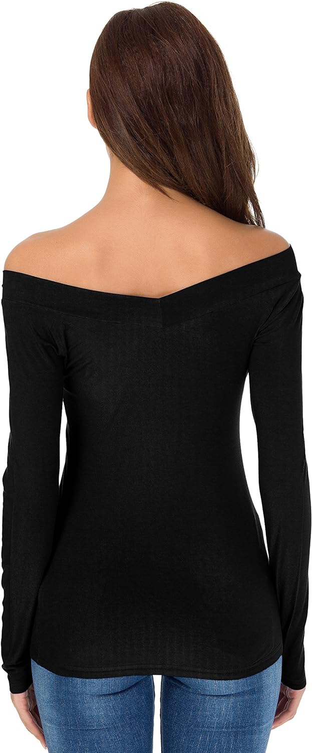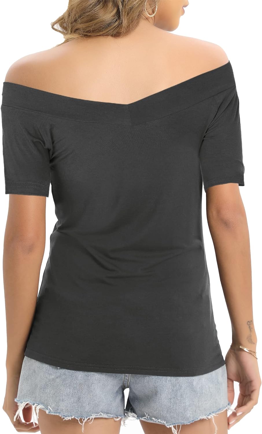 Sarin Mathews Womens Shirts Off The Shoulder Tops Sexy V Neck Slim Fit Shirts Tops Blouses