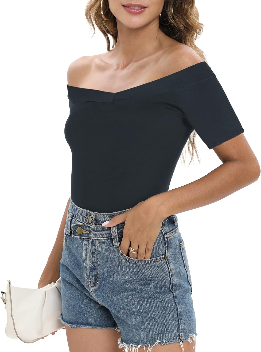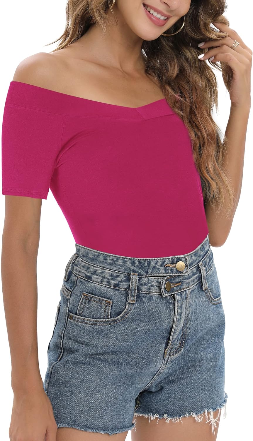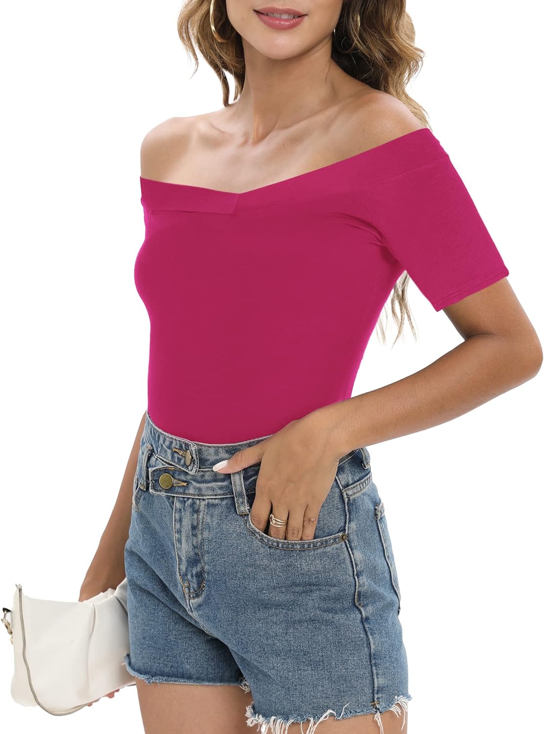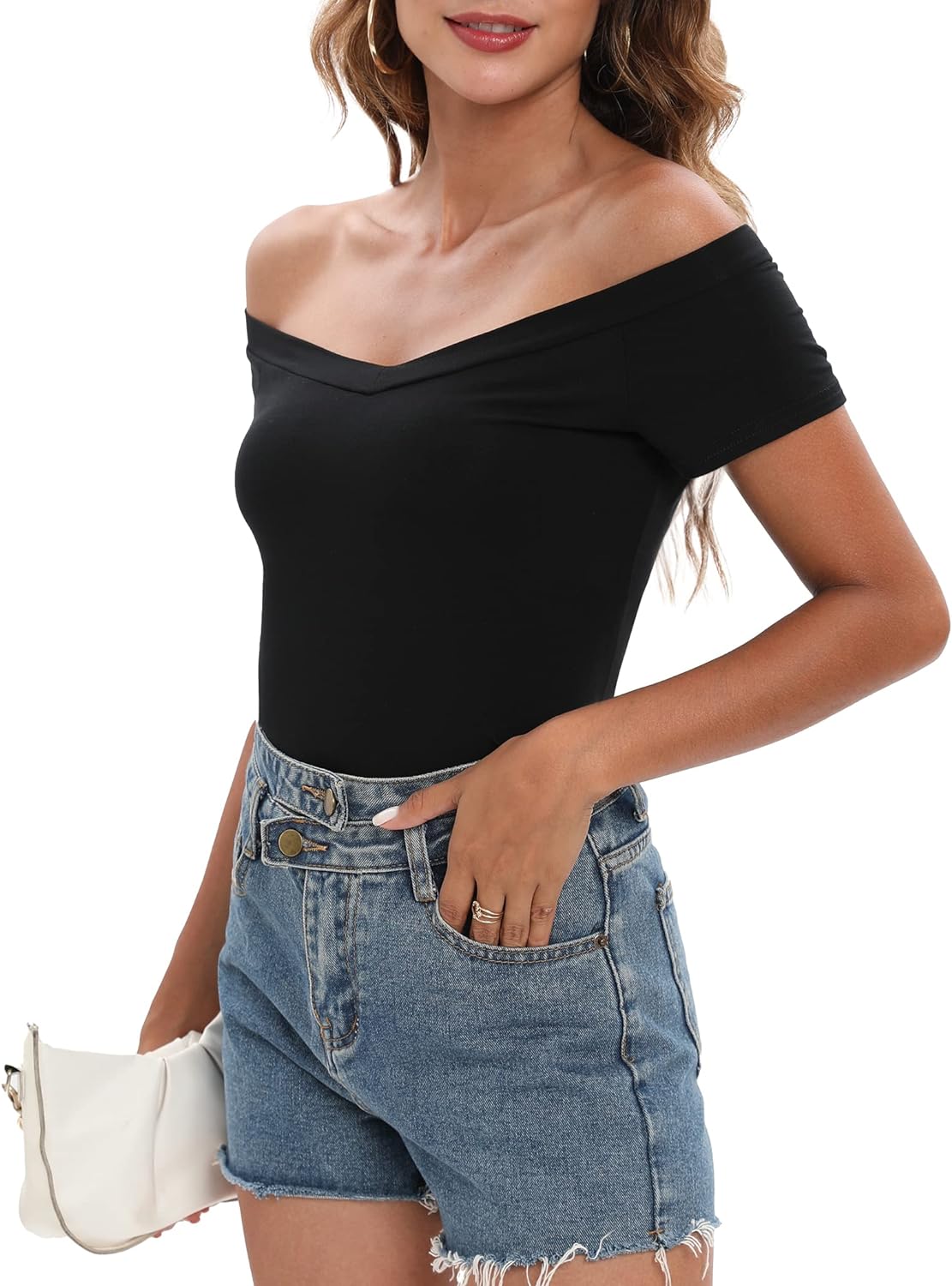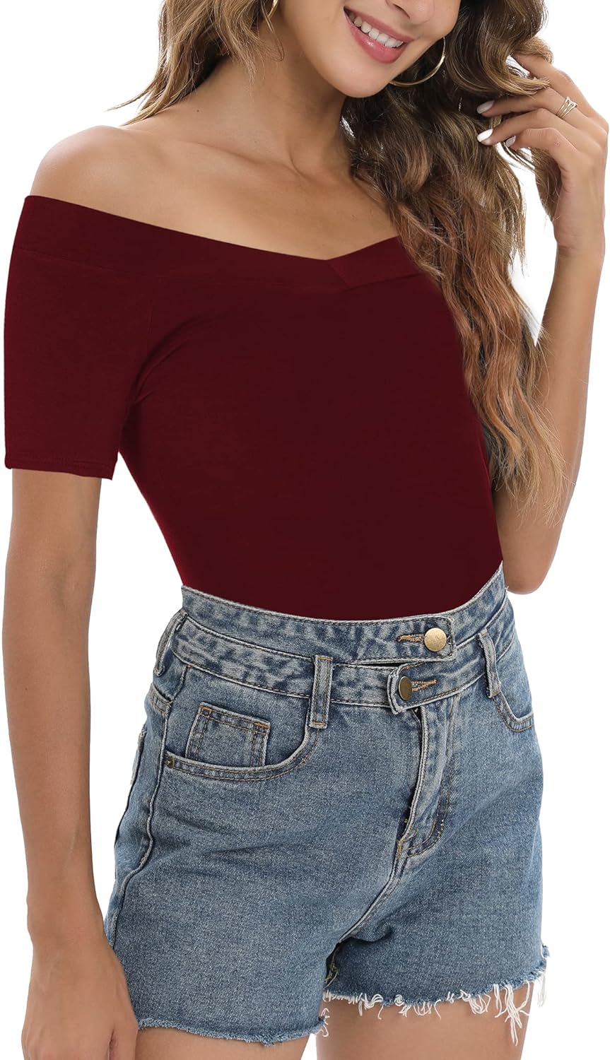 Sarin Mathews Womens Shirts Off The Shoulder Tops Sexy V Neck Slim Fit Shirts Tops Blouses