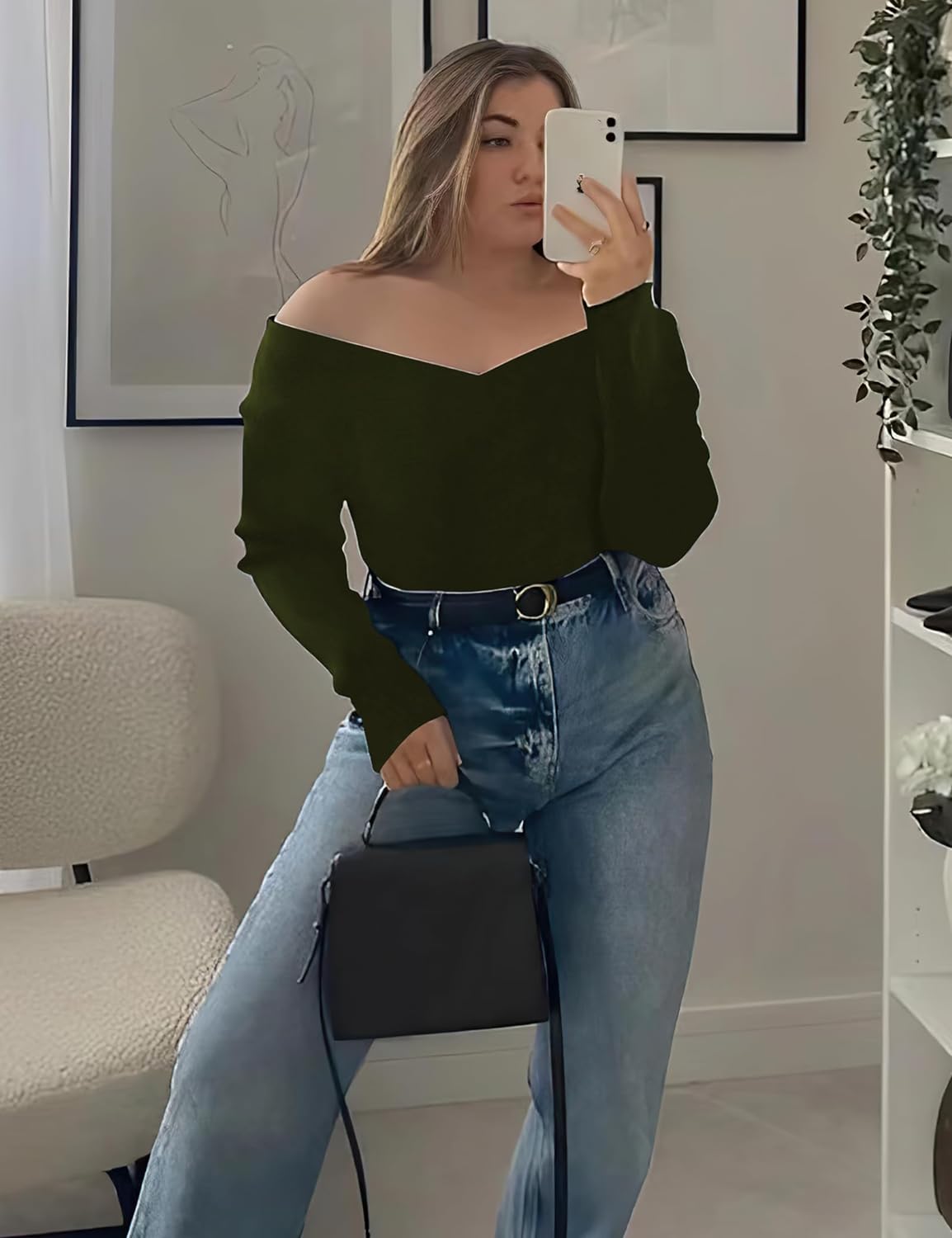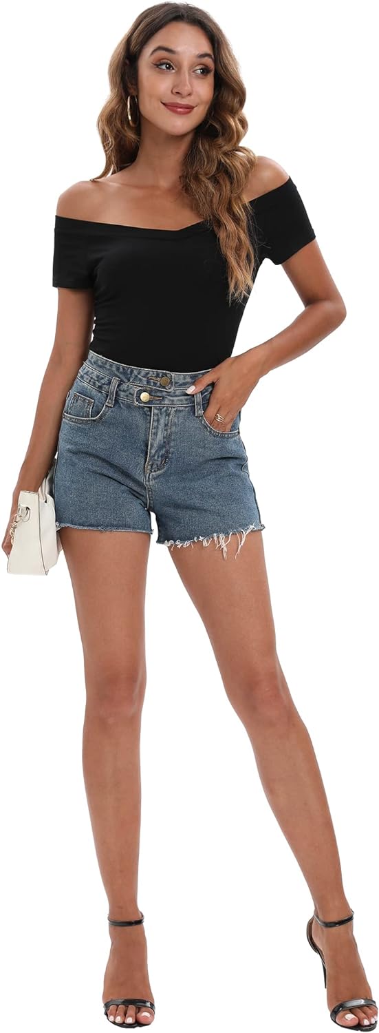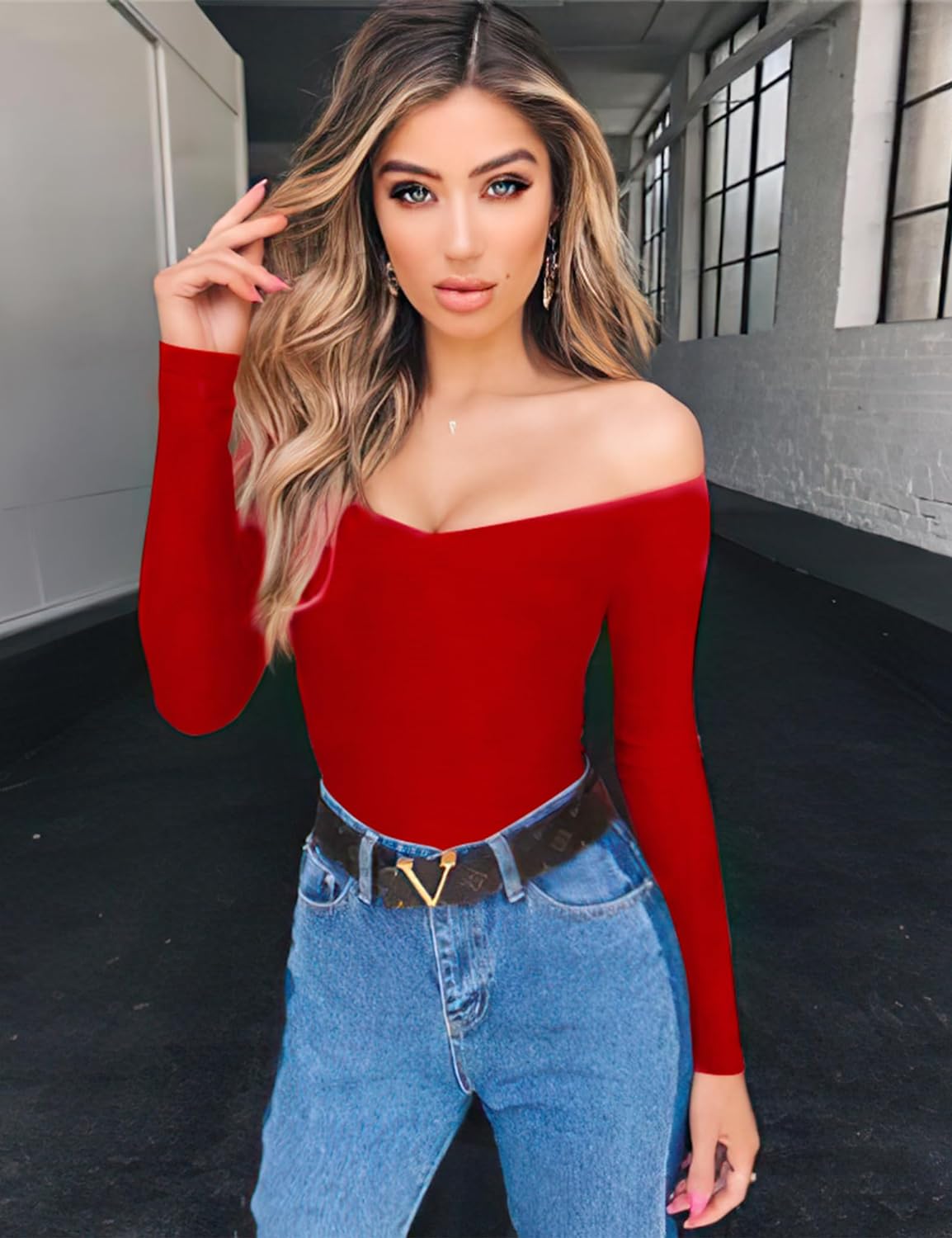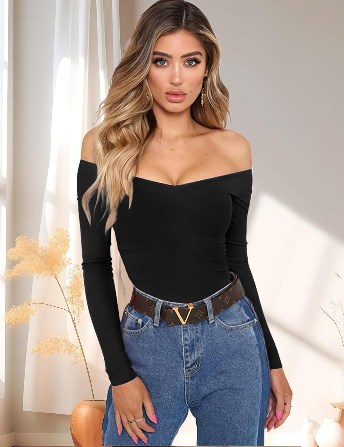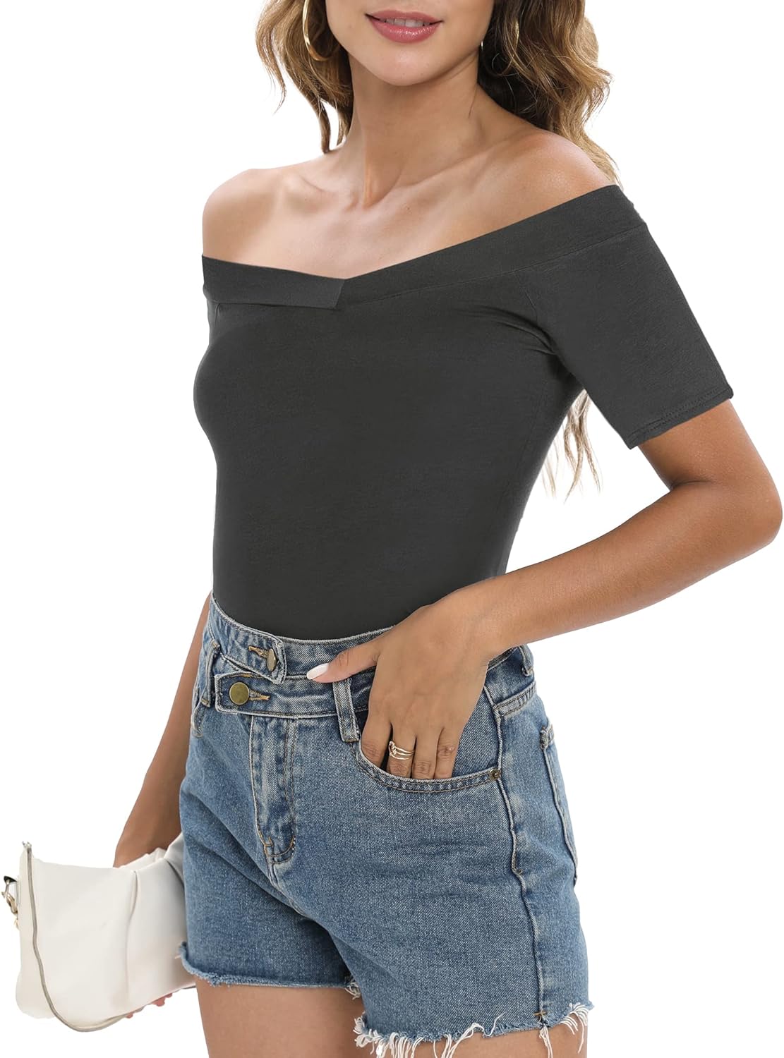 Sarin Mathews Womens Shirts Off The Shoulder Tops Sexy V Neck Slim Fit Shirts Tops Blouses