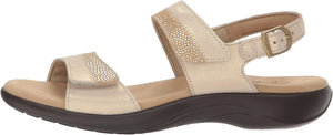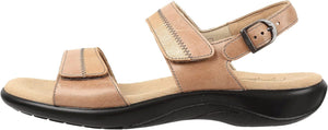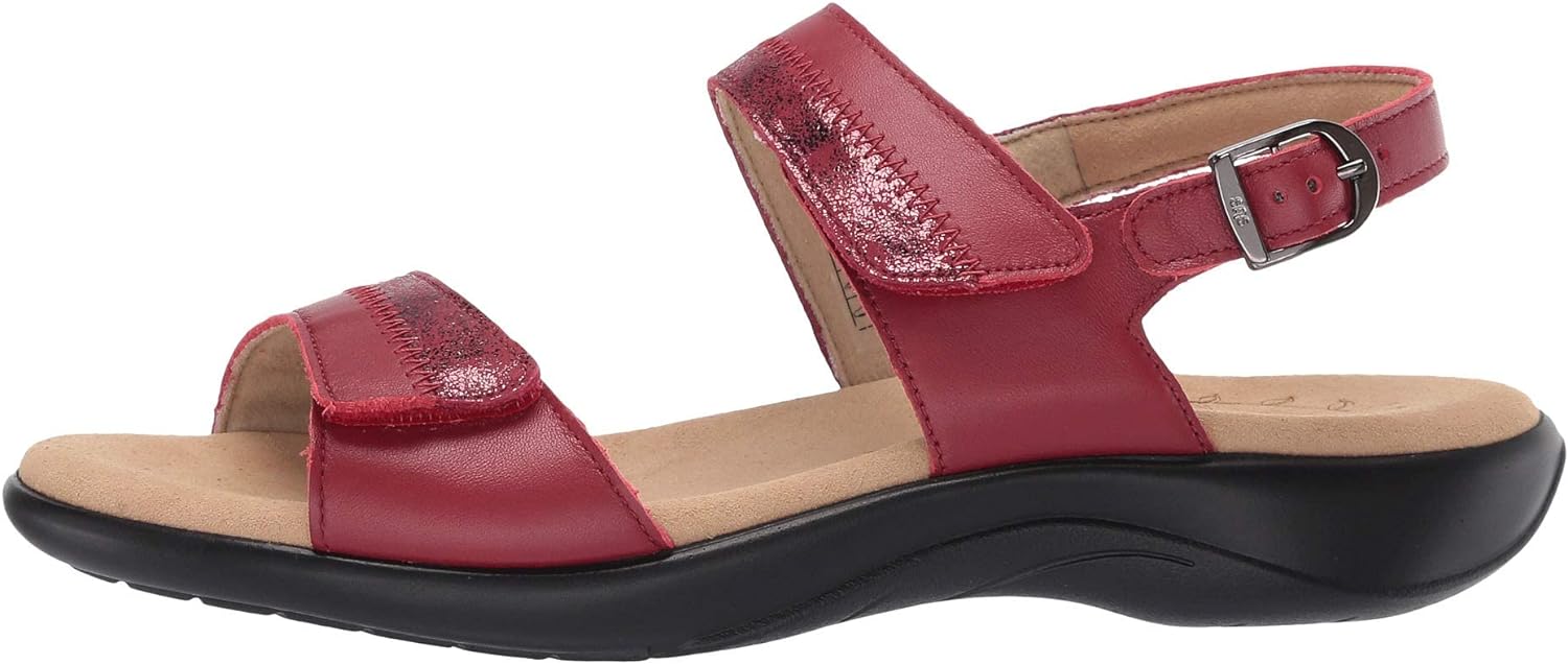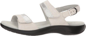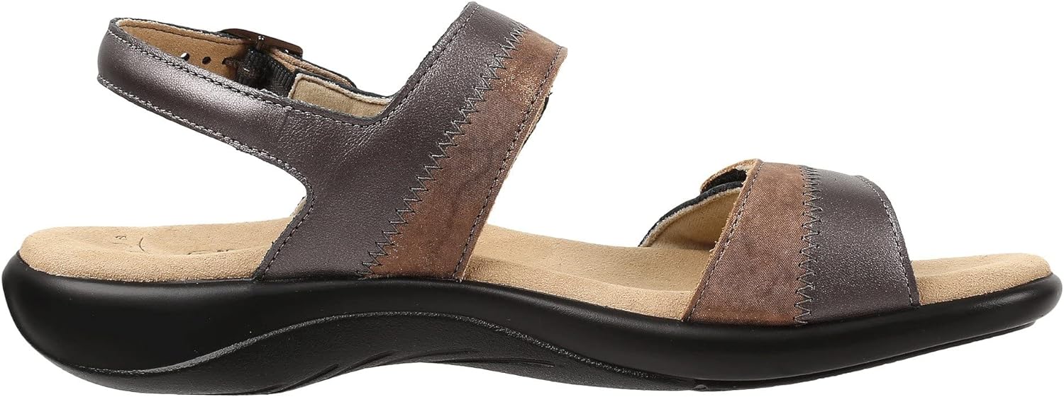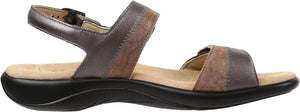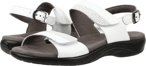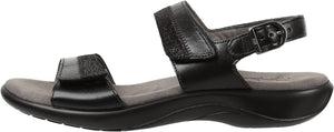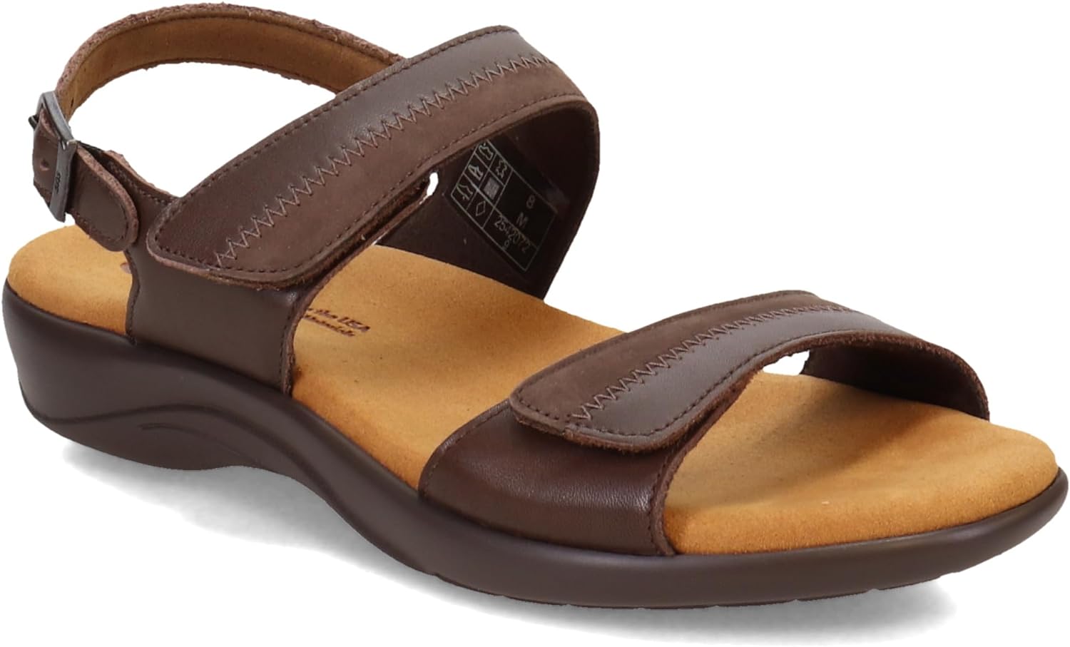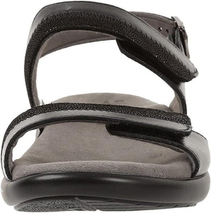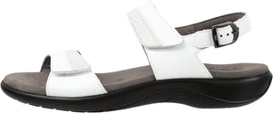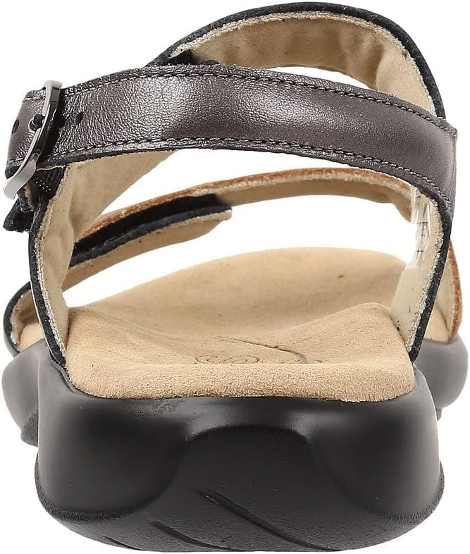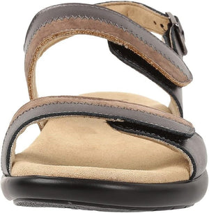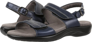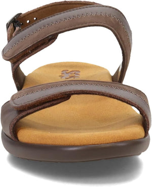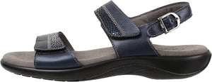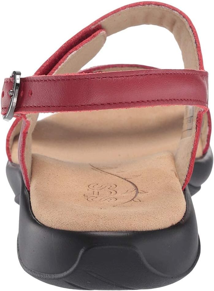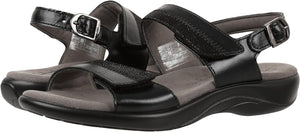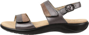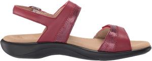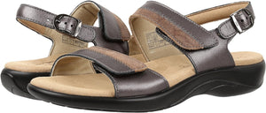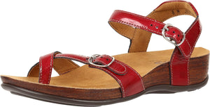 Enjoy your downtime in the comfortable and playful Pampa sandal. Leather or patent uppers. Adjustable buckle closure at toe and ankle. Cushioned heel strap