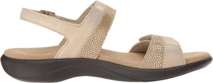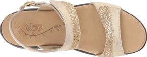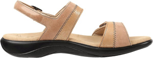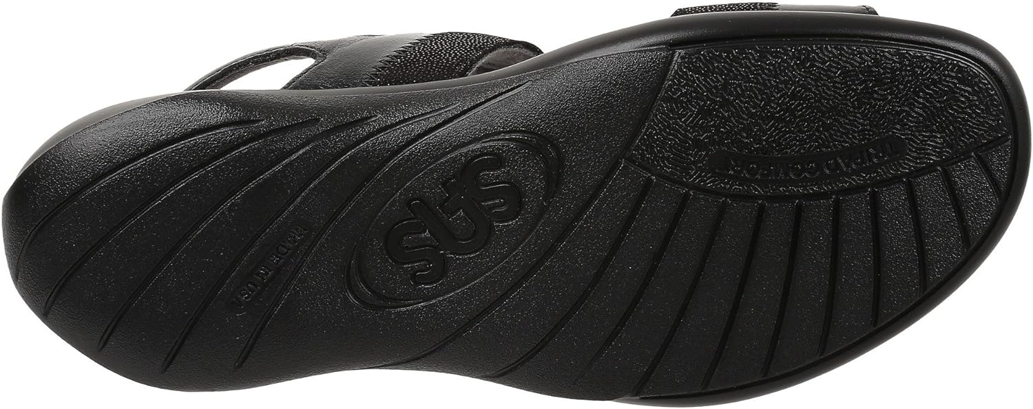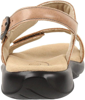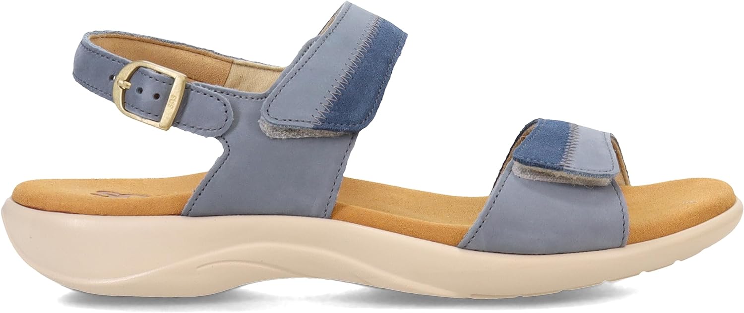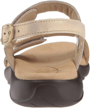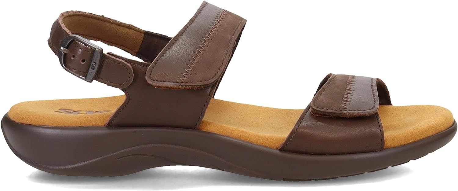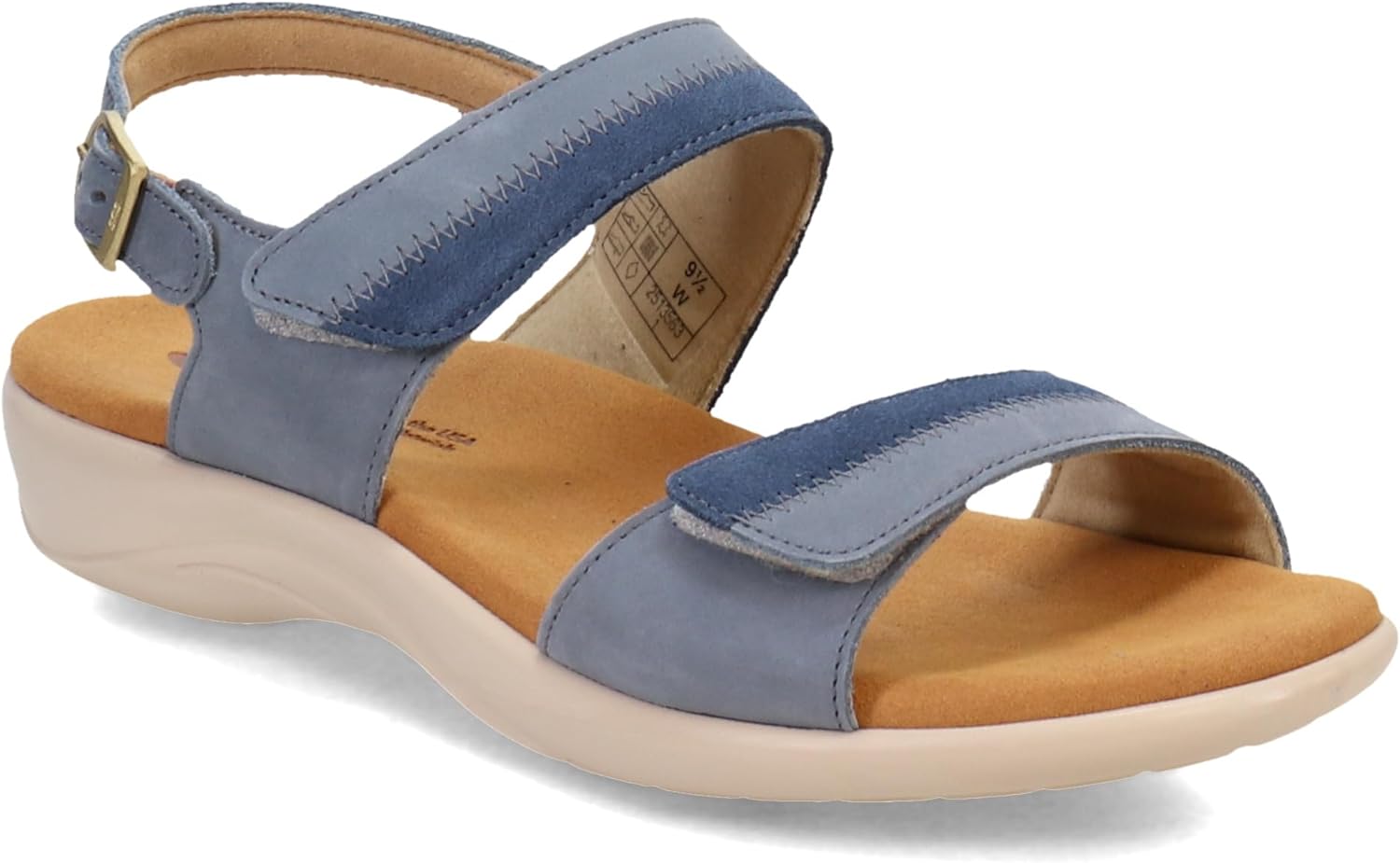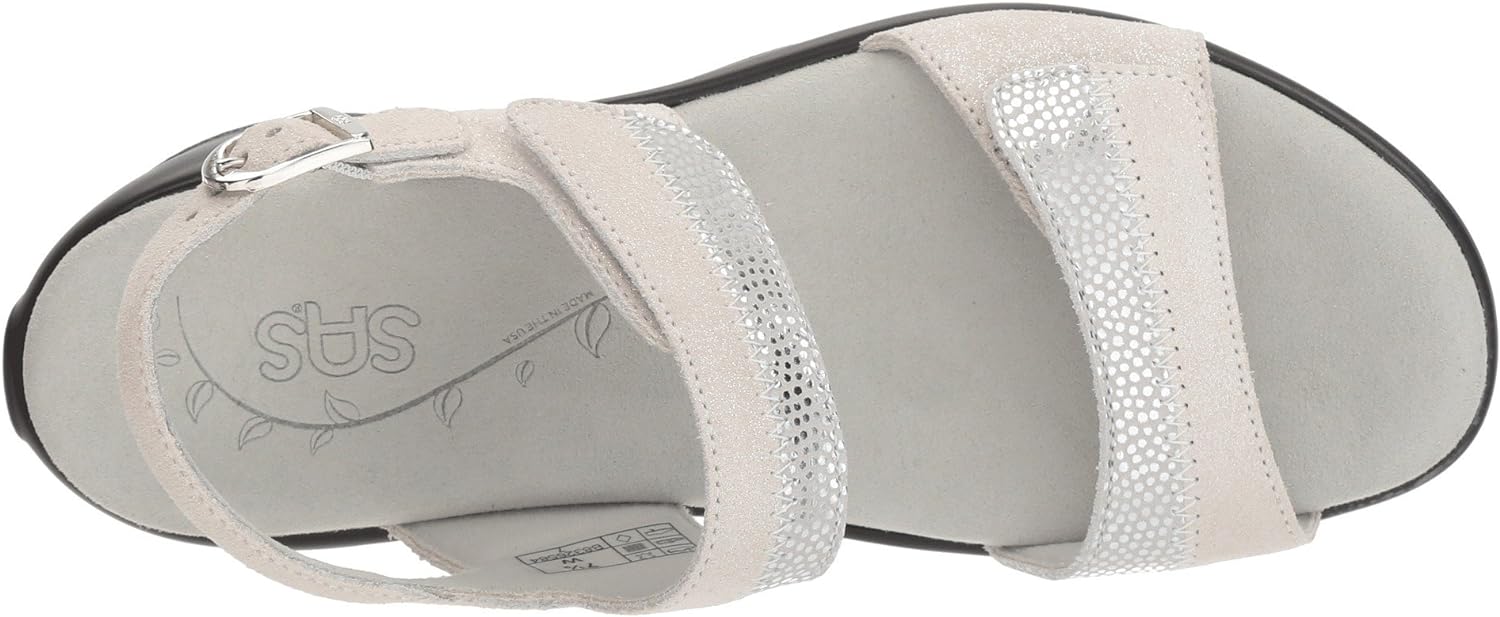 Enjoy your downtime in the comfortable and playful Pampa sandal. Leather or patent uppers. Adjustable buckle closure at toe and ankle. Cushioned heel strap