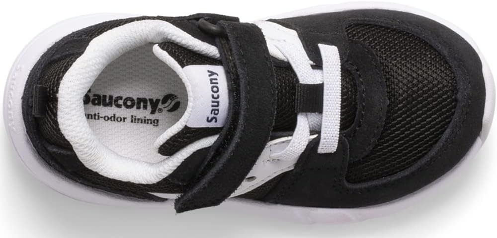 Inspired by the JAZZ™ collection, this shoe features the same retro design and lightweight leather and mesh upper. A helpful alternative closure makes stepping in easy, while anti-stink lining helps reduce odors. They also feature reinforced toes for extra durability and a smiley face on the inside of each shoe to help your little ones tell left from right.