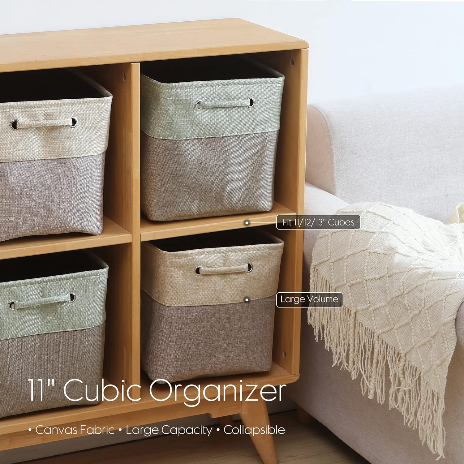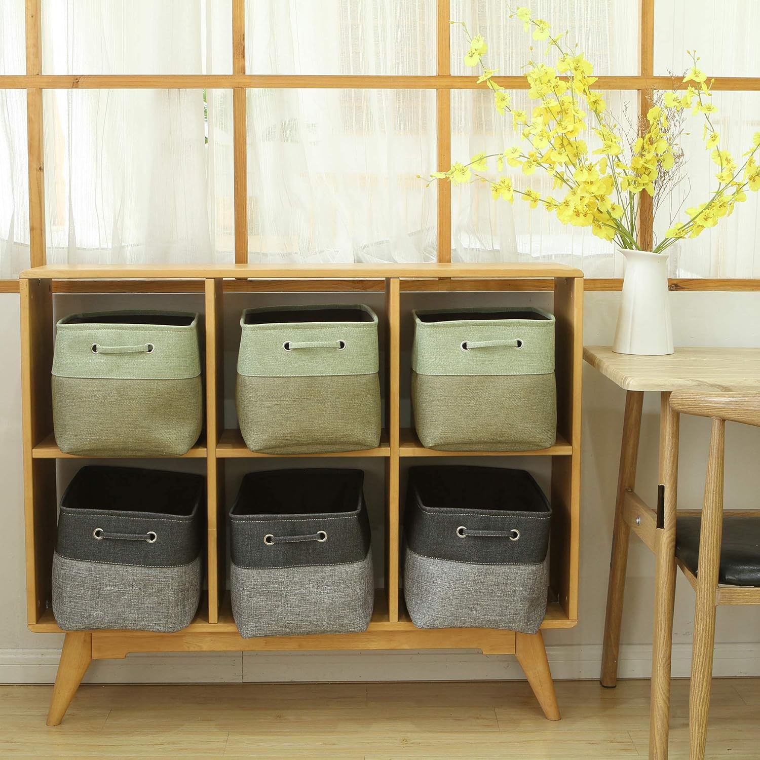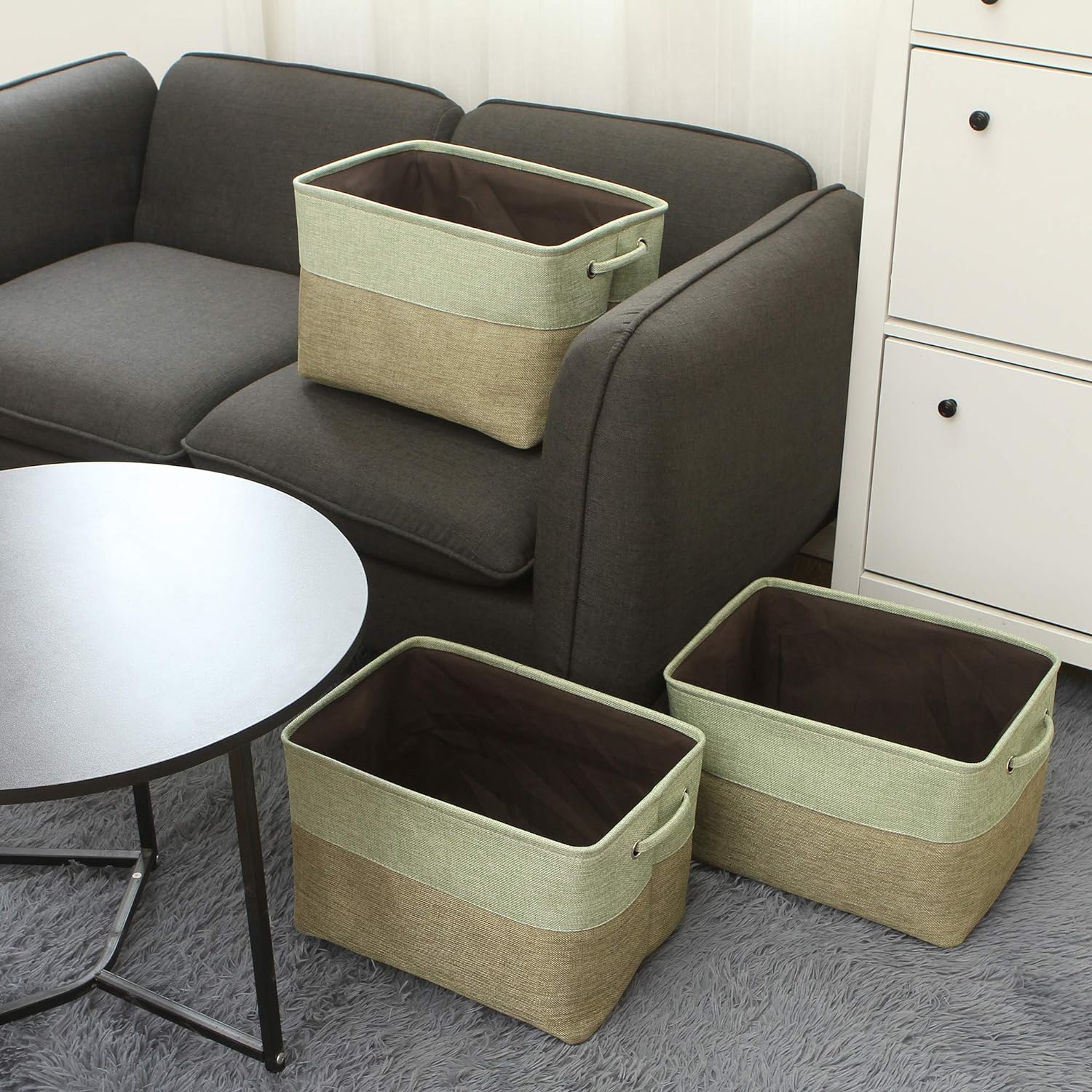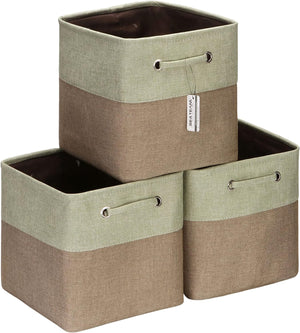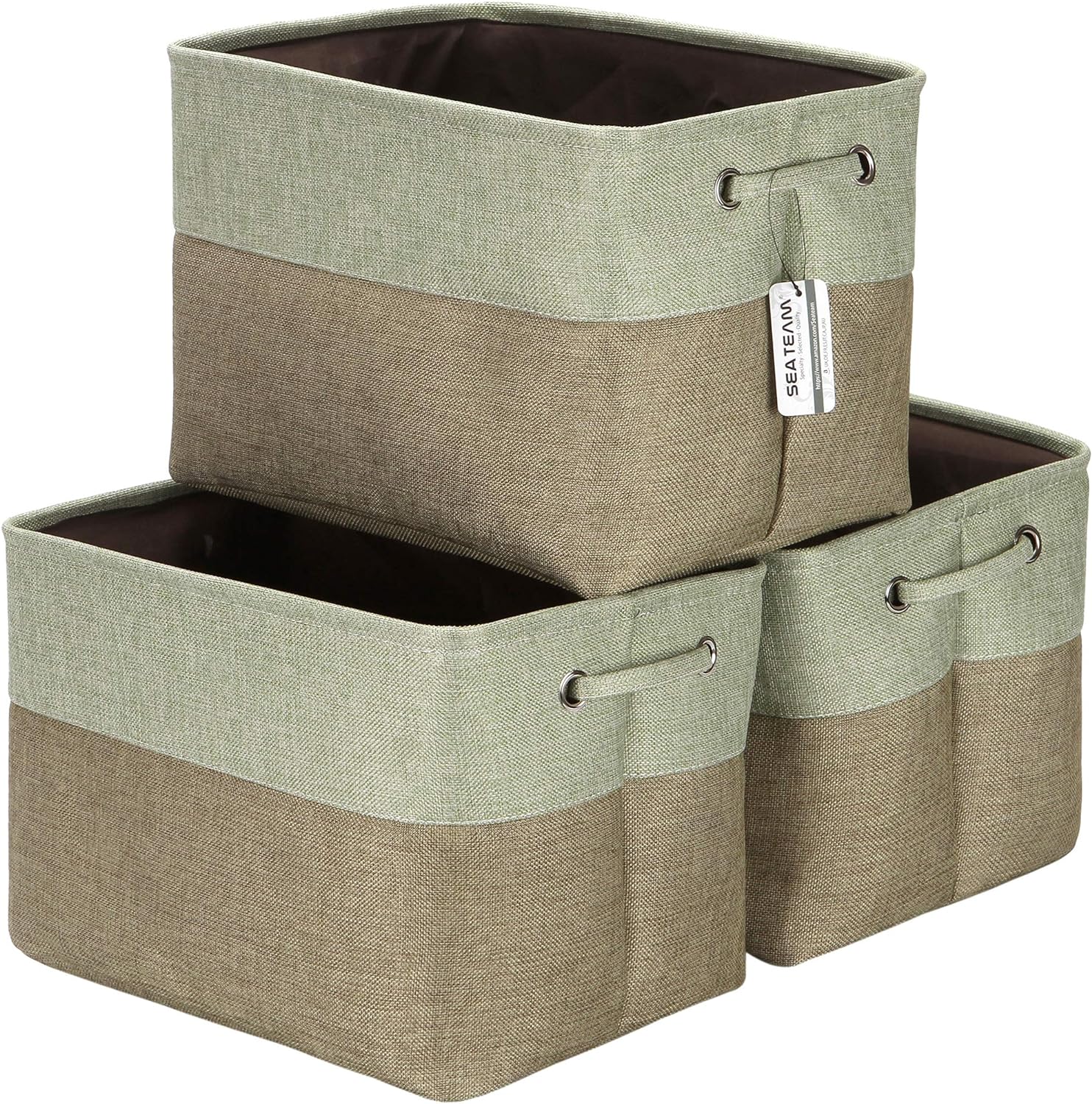 Sea Team 3-Pack Cubic Storage Basket Set, Storage Cube Organizer, Clothes Toys Bin, 11 x 11 x 11 Inches, Big Square Canvas Fabric Collapsible Shelf Box with Handles for Kids Room (Olive/Lime)
