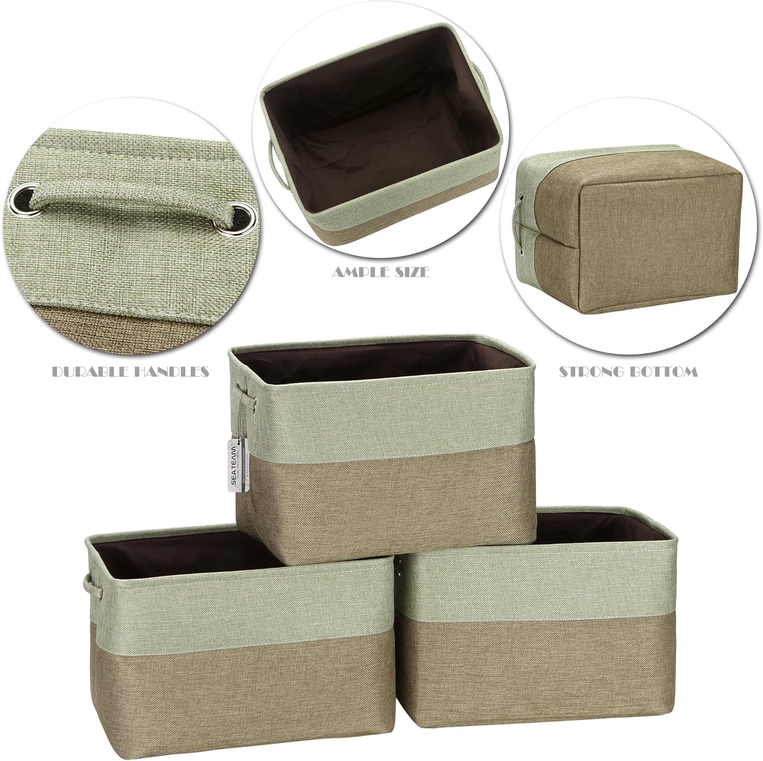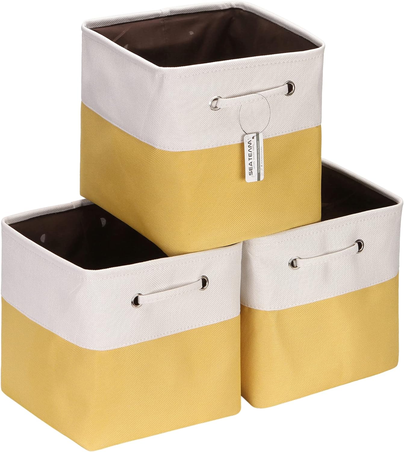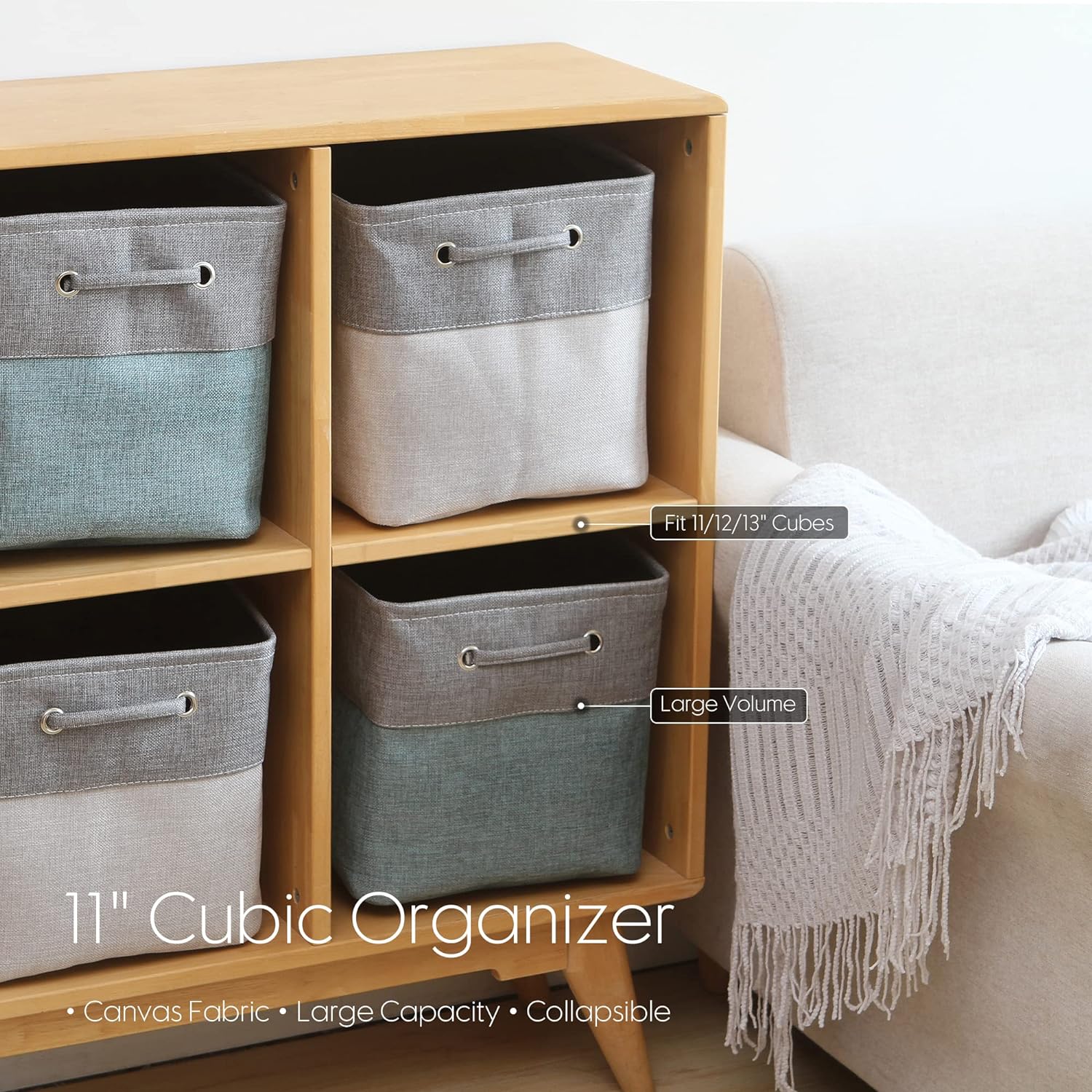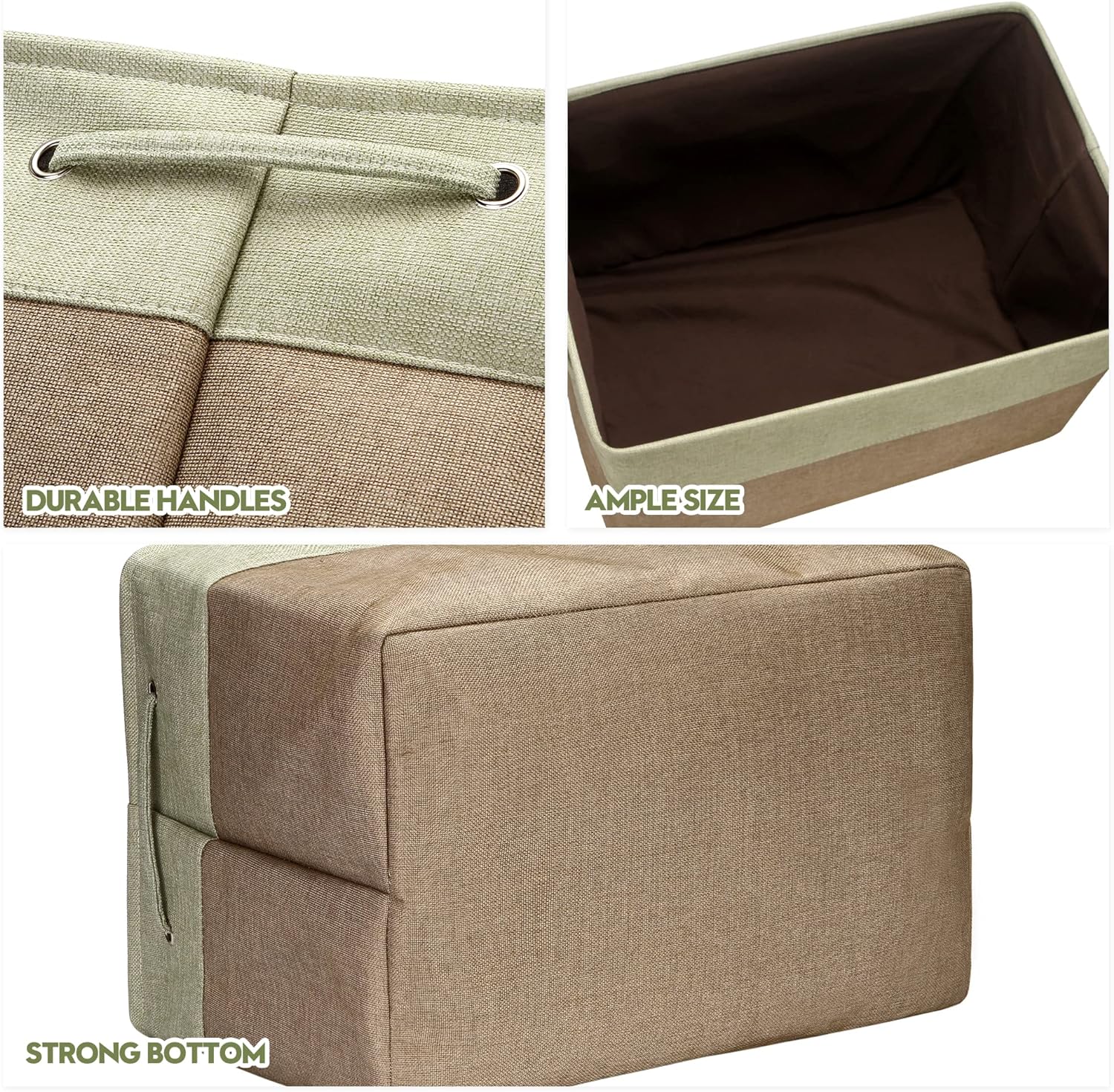 Sea Team 3-Pack Cubic Storage Basket Set, Storage Cube Organizer, Clothes Toys Bin, 11 x 11 x 11 Inches, Big Square Canvas Fabric Collapsible Shelf Box with Handles for Kids Room (Olive/Lime)