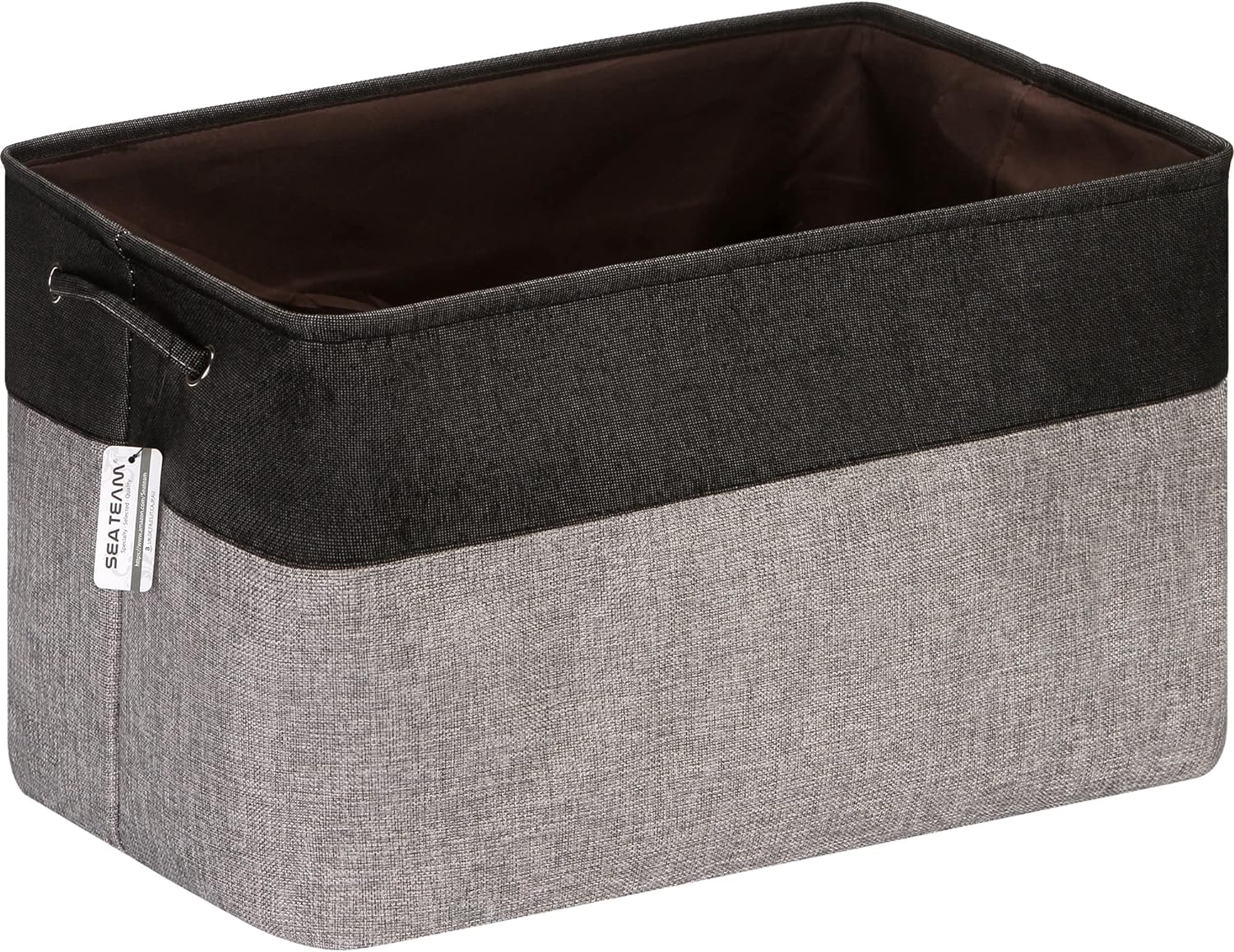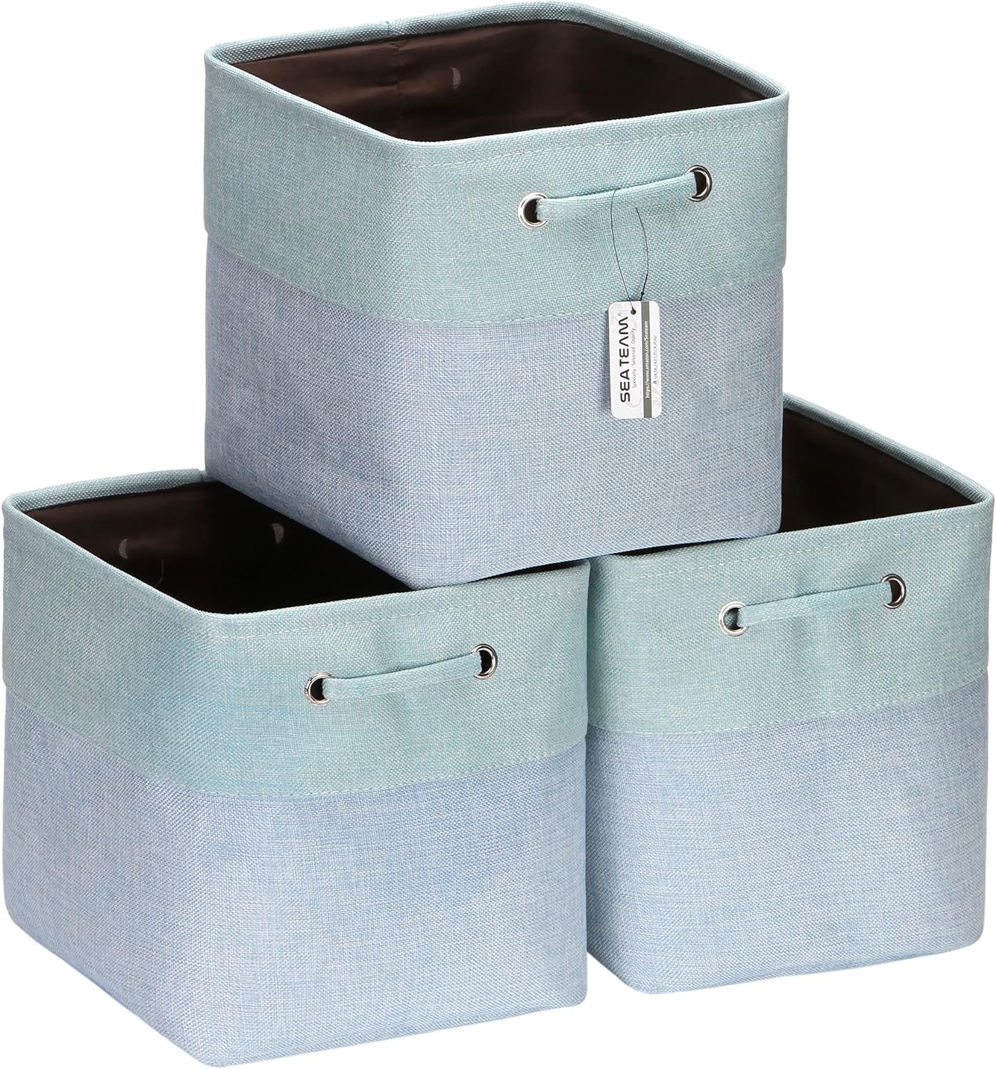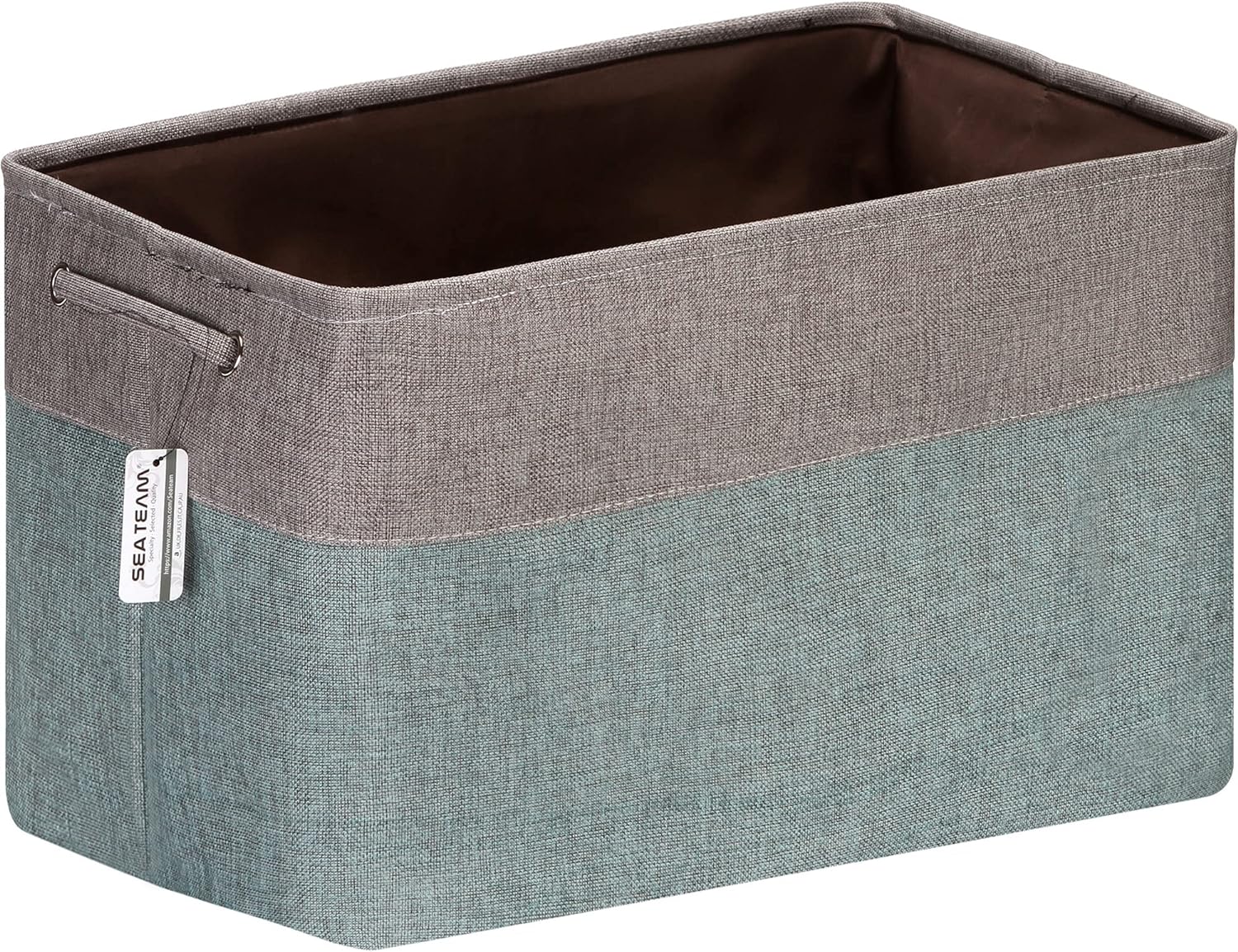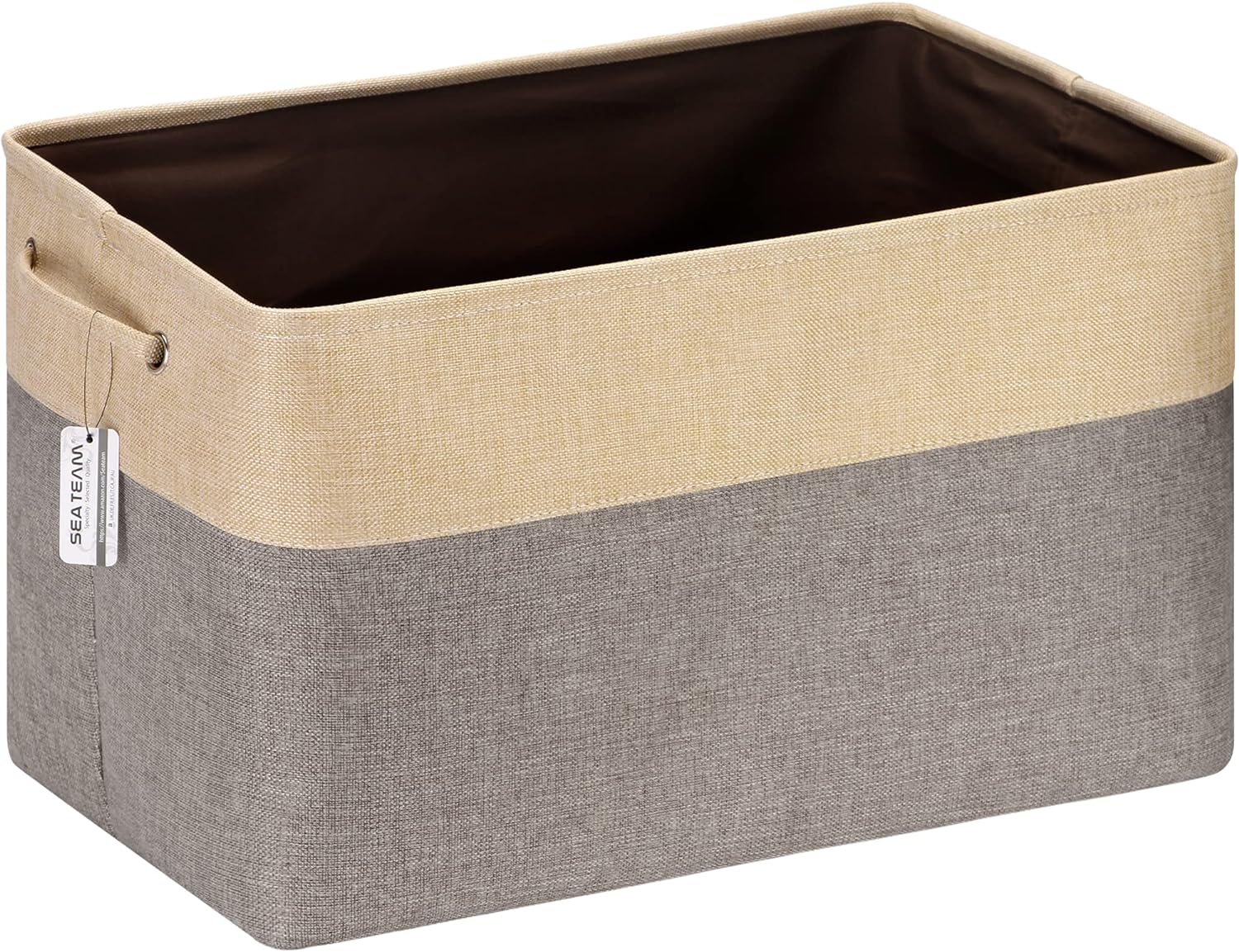 At Sea Team, storage bins aren't just generic white plastic bins with a lid anymore. Add a personal touch to your décor with unique storage options - use a set of baskets to store odds and ends on shelves, or try colored, foldable fabric laundry hampers in the living room. All of our baskets are made of fabric like cotton, canvas, linen, jute and burlap. They are stylish, sturdy, collapsible and reusable. From a small basket to a large laundry hamper, storage bins can be a beautiful and functional accent to any room.