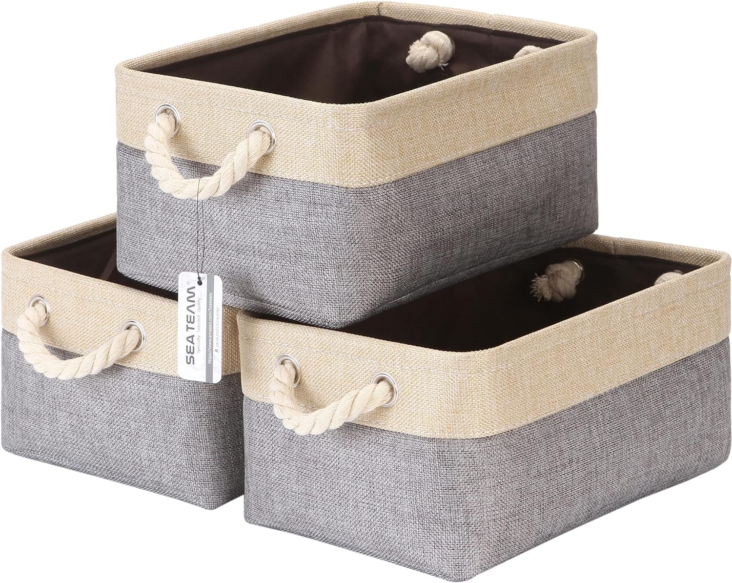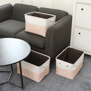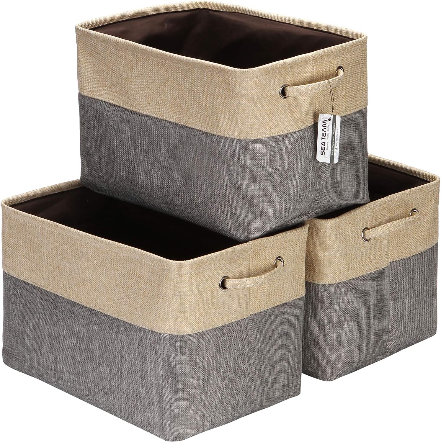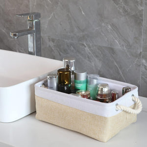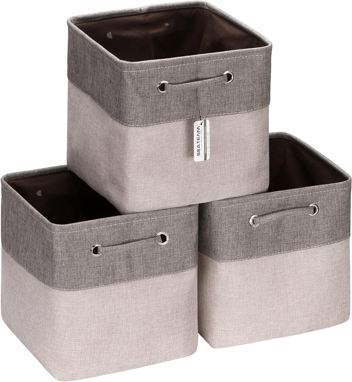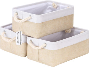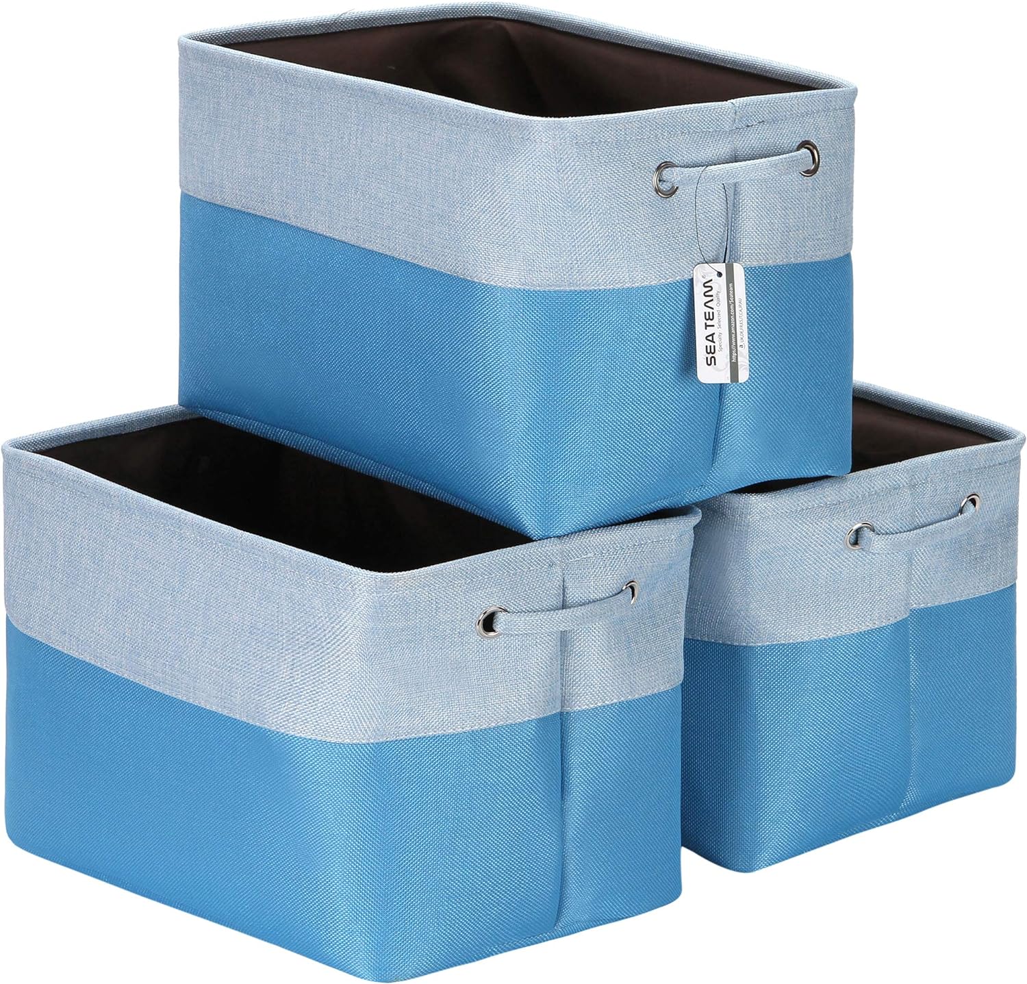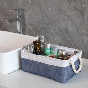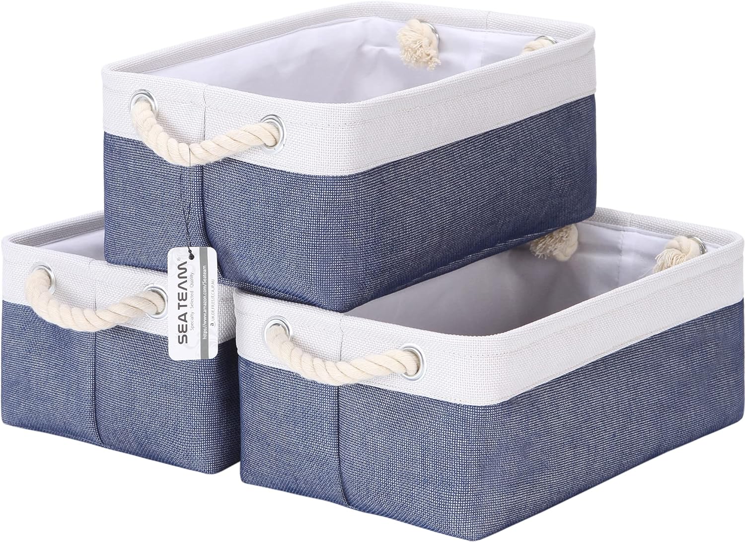 At Sea Team, storage bins aren't just generic white plastic bins with a lid anymore. Add a personal touch to your décor with unique storage options - use a set of baskets to store odds and ends on shelves, or try colored, foldable fabric laundry hampers in the living room. All of our baskets are made of fabric like cotton, canvas, linen, jute and burlap. They are stylish, sturdy, collapsible and reusable. From a small basket to a large laundry hamper, storage bins can be a beautiful and functional accent to any room.