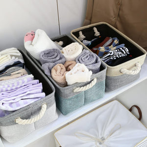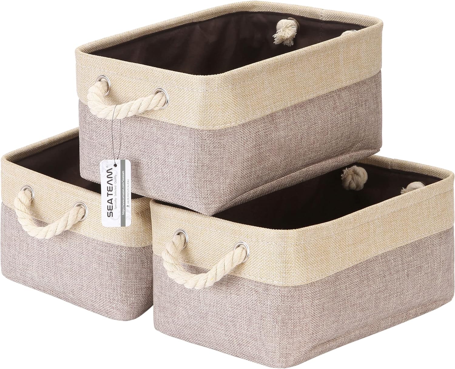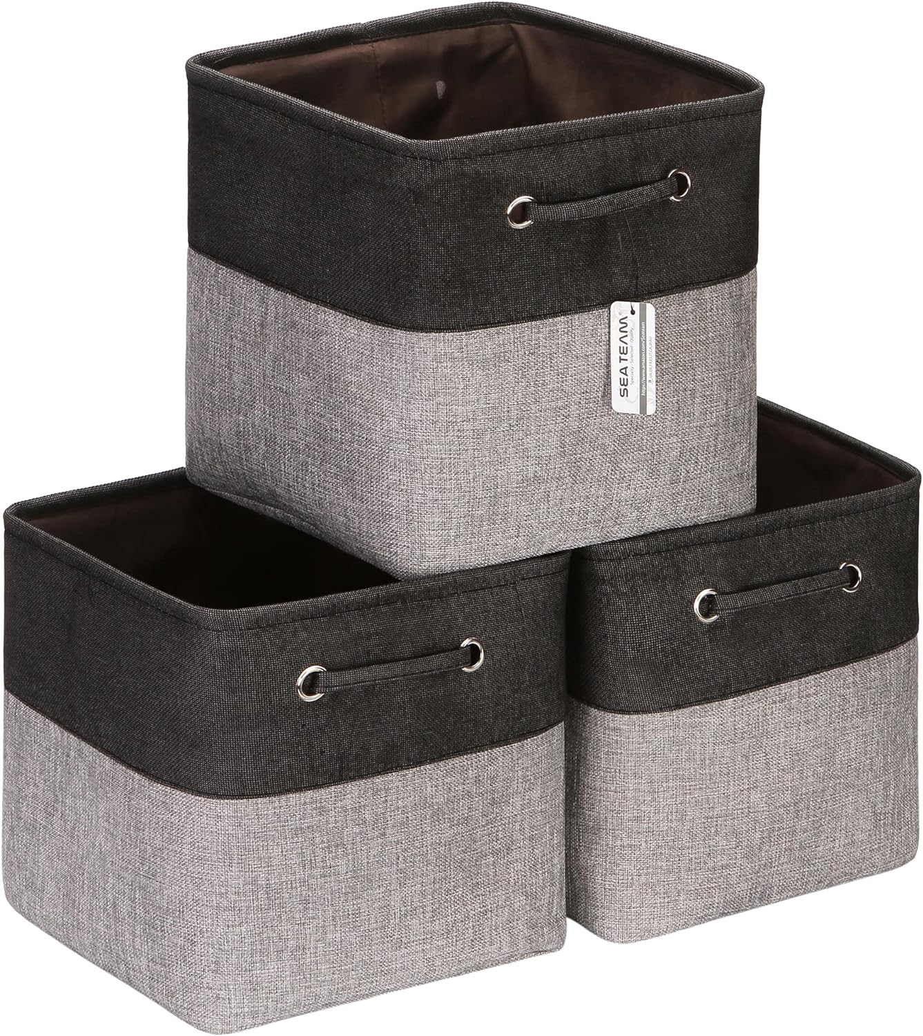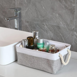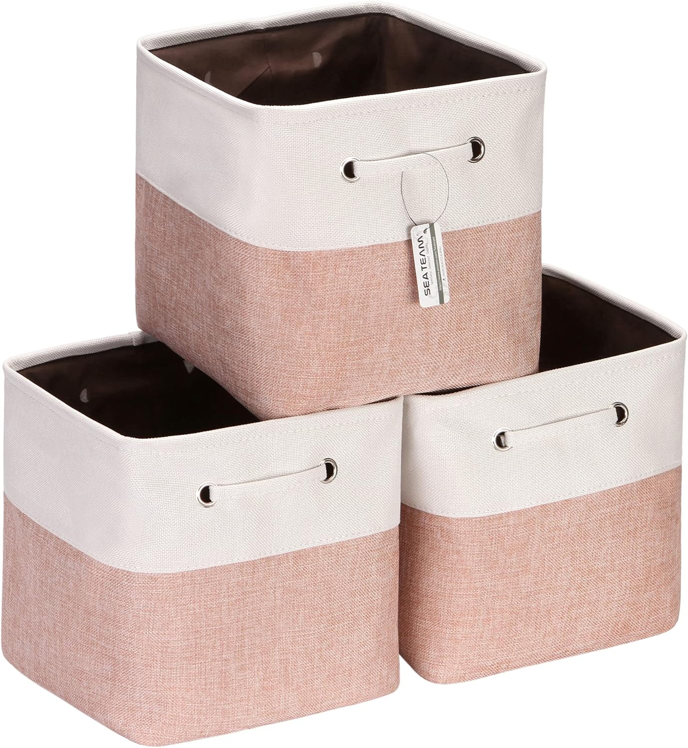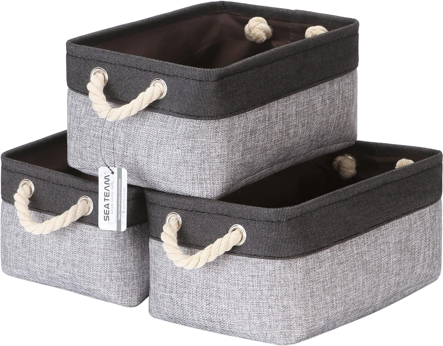 At Sea Team, storage bins aren't just generic white plastic bins with a lid anymore. Add a personal touch to your décor with unique storage options - use a set of baskets to store odds and ends on shelves, or try colored, foldable fabric laundry hampers in the living room. All of our baskets are made of fabric like cotton, canvas, linen, jute and burlap. They are stylish, sturdy, collapsible and reusable. From a small basket to a large laundry hamper, storage bins can be a beautiful and functional accent to any room.