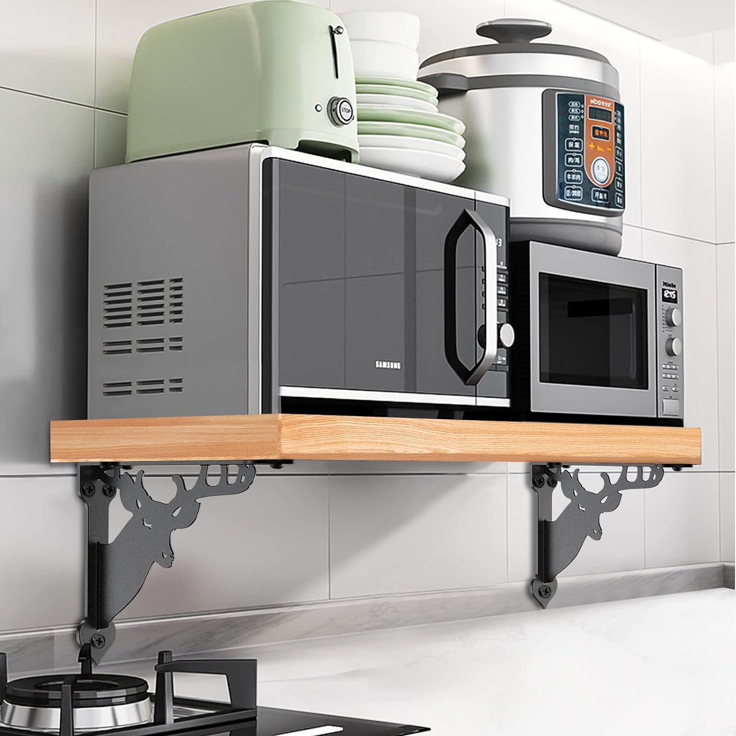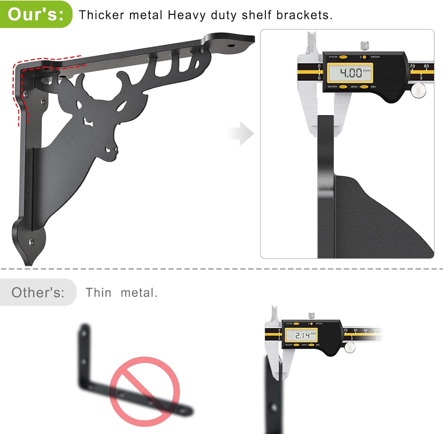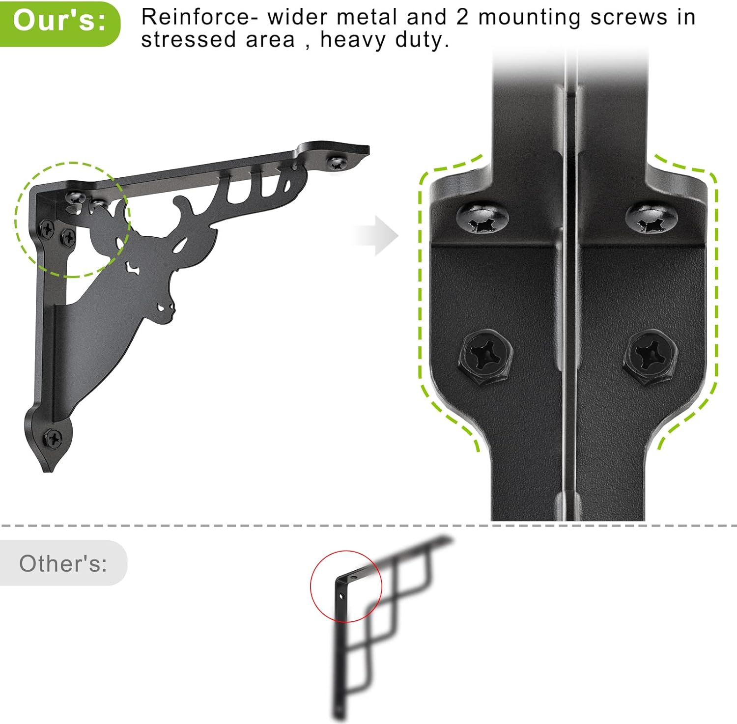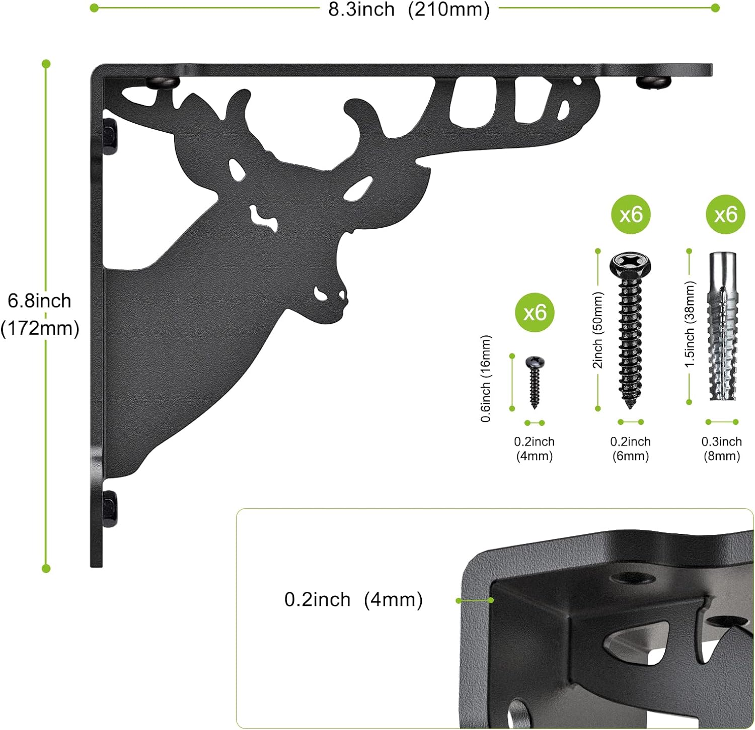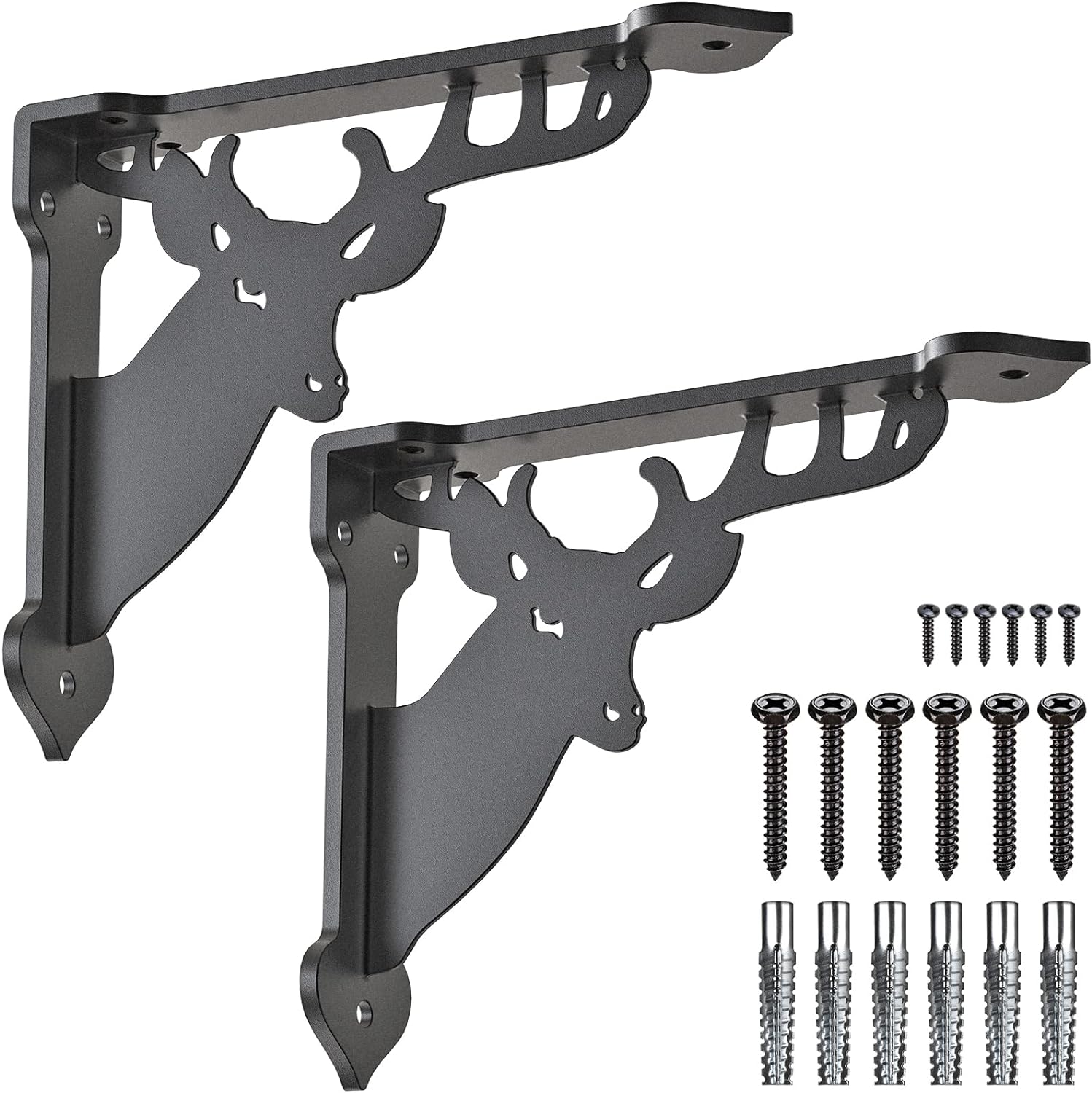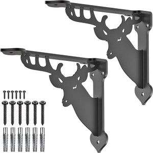SELEWARE Heavy Duty Shelf Brackets Wall Shelf Brackets Corner Brackets, 8" x 7", 4 mm Thick Metal Shelves Brackets Corner Brace, Hardware Included, 2 Pack Deer Pattern