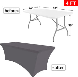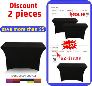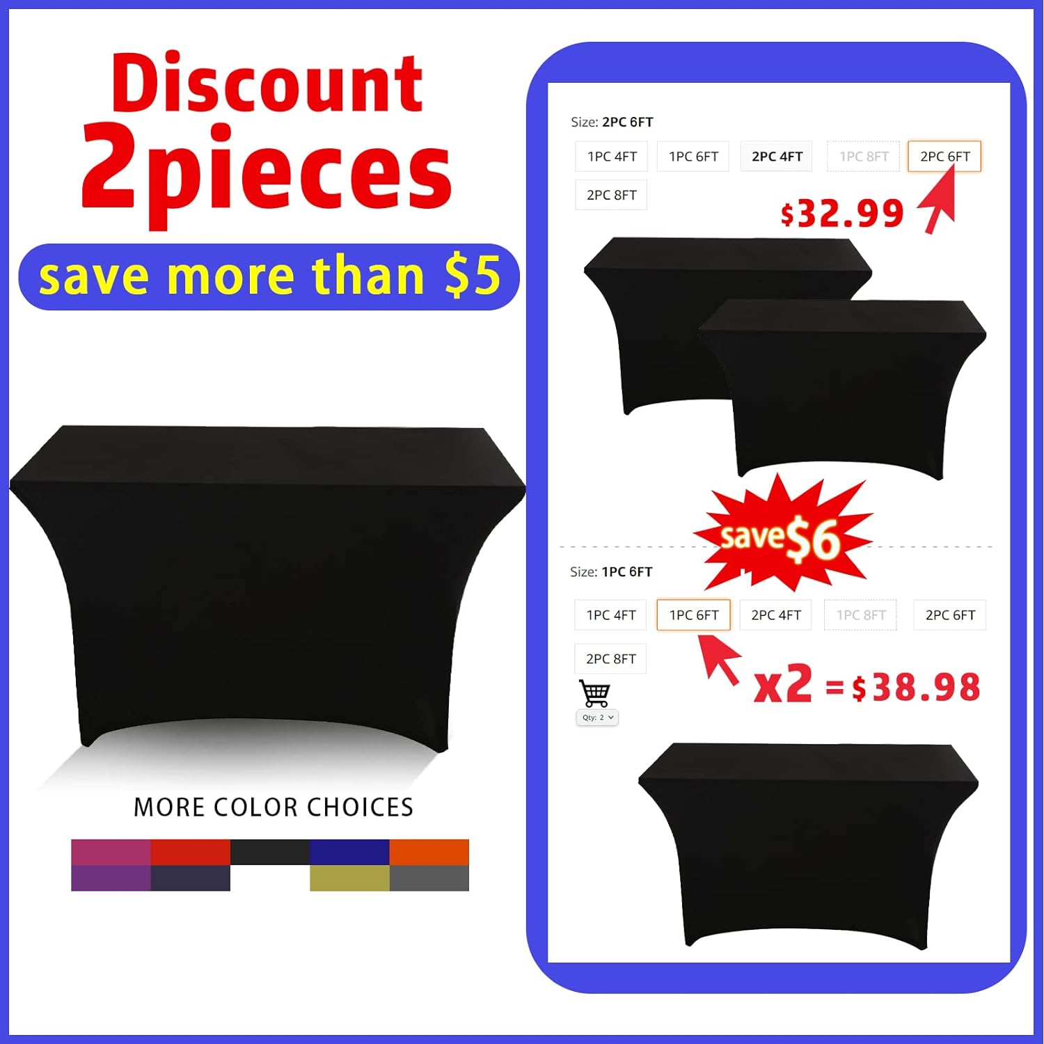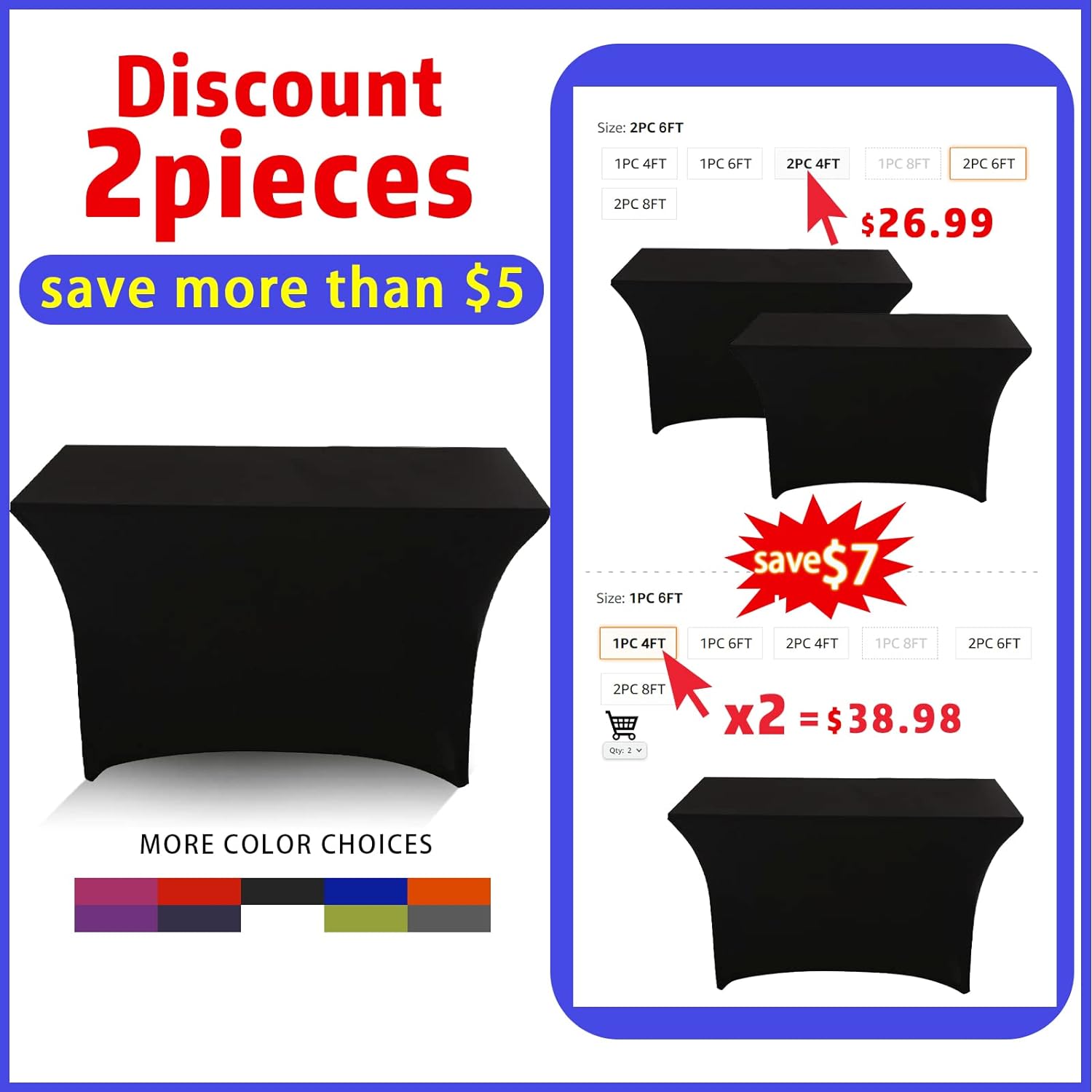 - 【Tips for Size】The size '1PC 4FT' means the package contains 1 pack of 4ft table cover. Size '2PC 6FT' means the package contains 2 packs of 6ft table cover. If you want to buy multiple table covers, you can choose the size contains '2PC' to save money for you. For example, buying '2PC 6FT' 'Red' table cover will save $5 more than buying two '1PC 6FT' 'Red' table covers.
