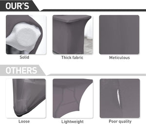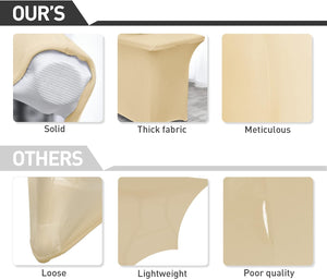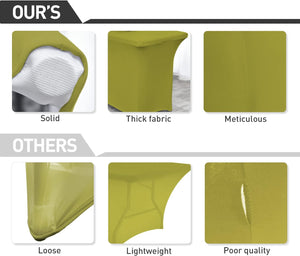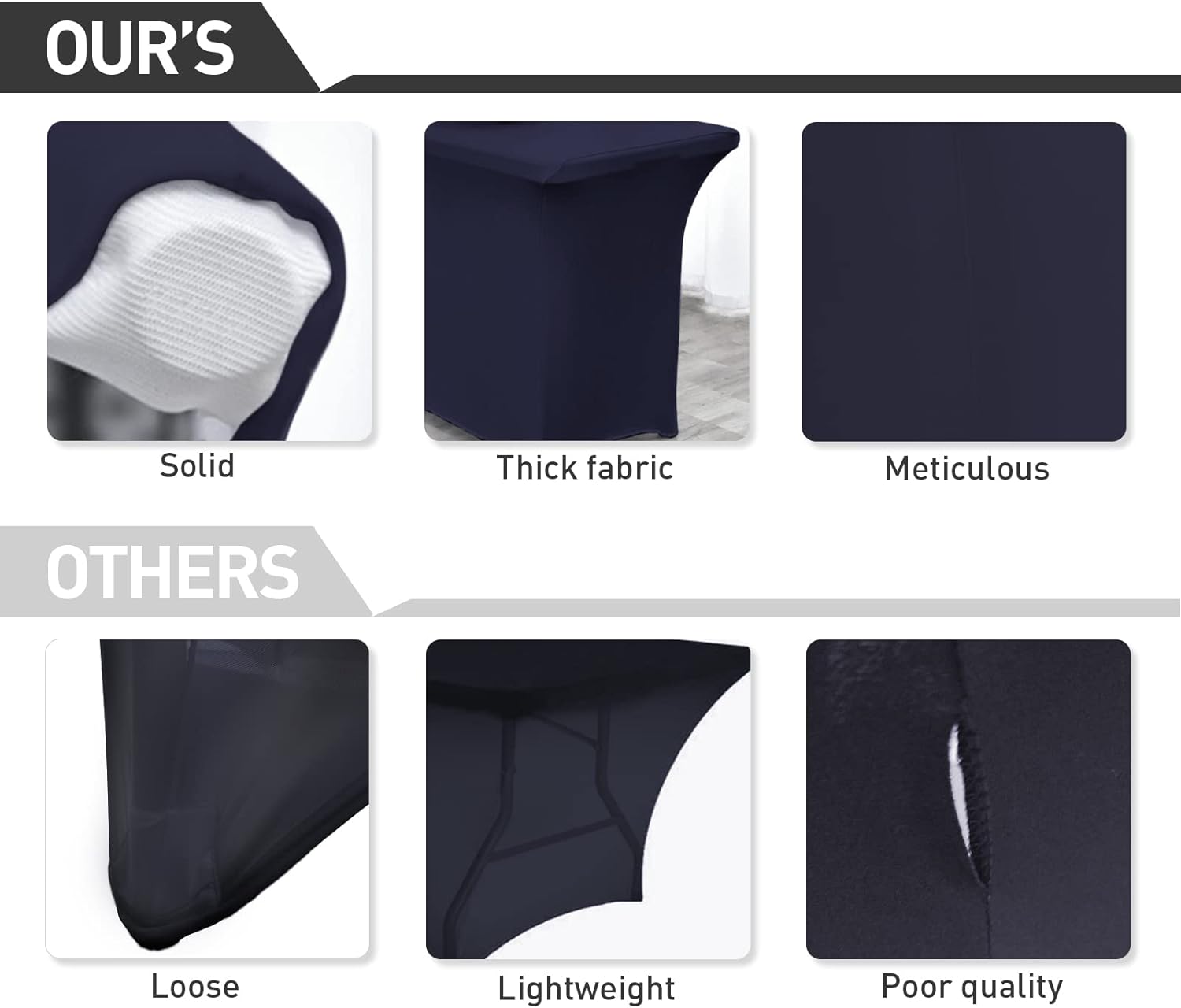 - 【Features】Our spandex stretchable table covers are wrinkle-free, stain resistant, durable, lightweight and elastic. The size of legs pockets is about 6×7cm. Double layer oxford fabric reinforce the leg pockets. Our customers said 'The cups for the table legs to rest in made this product! Held in place so well.' Reinforced sewn-in leg pockets keep the cover in place, to make a tight and professional look. Additionally, the pockets can fit many different types of table legs.