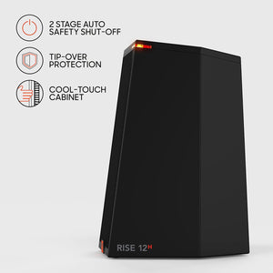 The Rise 12H tower heater creates a lot of comfort for its size. With its robust heat and surprisingly strong airflow the Rise 12H warms your space, while its modern design compliments it. The 2 heat settings and fan-only mode give you several options, yet make it simple to use. Tip-over protection and the 2-stage auto-shutoff system will keep your mind at ease, along with a 1-year warranty.Raise expectations with the Sharper Image Rise 12H tower heater.