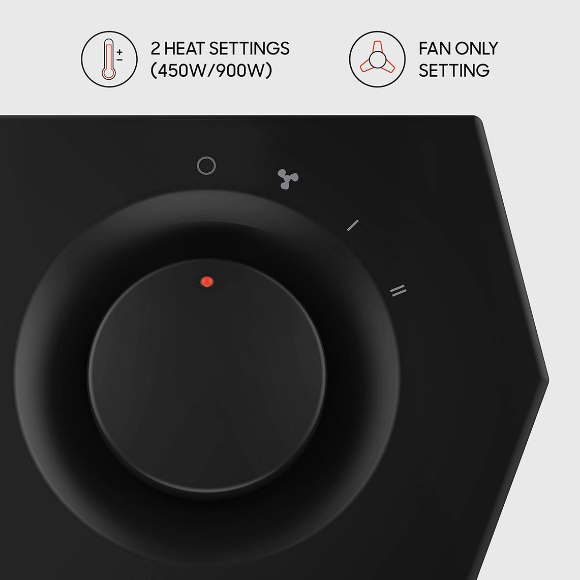- SIMPLE CONTROLS: Select your comfort level with 2 heat settings (Low/450W, High/900W) and a fan only setting for year-round use.