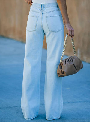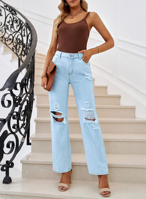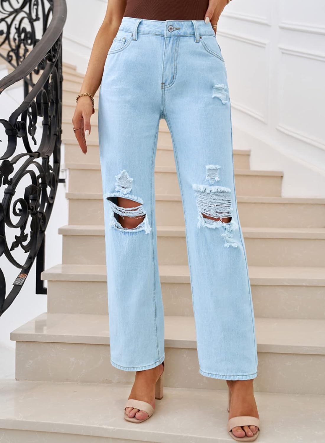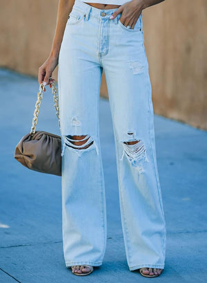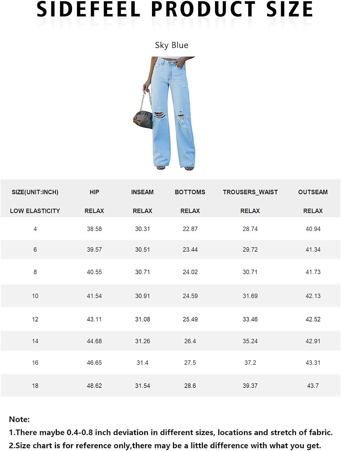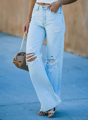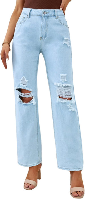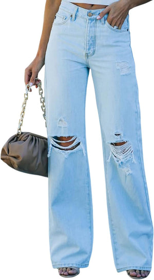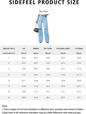 Sidefeel Women Mid Rise Distressed Flare Jeans Wide Leg Ripped Hole Denim Pants