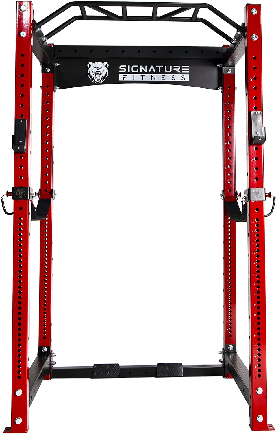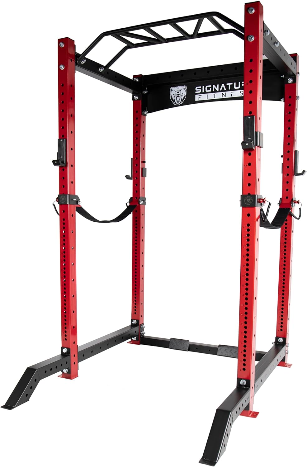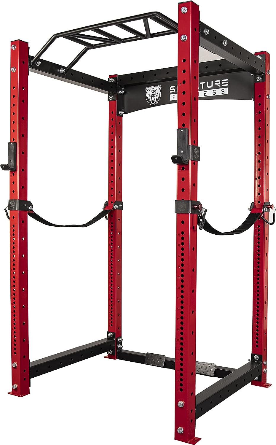 Signature Fitness 1,000 Pound Capacity 3” x 3” Power Cage Power Rack Squat Stand, Includes J-Hooks and Safety Spotter Arms, Optional Conversion Kits and Accessories