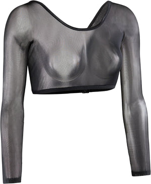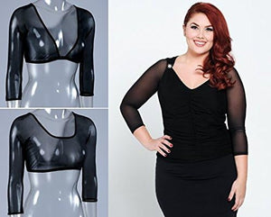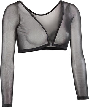 Clean lines define this classic sleeve style in a four-way stretch mesh that gently hugs your arms, making them appear more toned. Elegant in its simplicity, this pair of slip-on sleeves looks equally good worn under a casual tank top, conservative office attire, or under a sleeveless or strapless dress. The no shoulder seam construction gives the illusion of being part of your top or dress, and has the option of being worn with the low-cut side in front, or reversed with the higher side in front to provide cleavage cover if so desired. This classic style in black adds a touch of sophistication while transforming your outfit and your arms! What can Sleevey Wonders do for you? - looks great under everything - from the most casual tops to the fanciest dresses - four-way stretch gently hugs & slims your arms - no shoulder seams give the illusion that Sleevey Wonders are part of your top or dress - to show less cleavage, reverse your Sleevey Wonders & have instant coverage - Great for when you can't be sleeveless at work, place of worship, etc. - extends your wardrobe into more seasons - expands your travel wardrobe without bulky packing - turns old outfits into something new - have the confidence to dance without your arm waddle wagging! Mesh Material: 90% Nylon, 10% Spandex. Care Instructions: Hand wash cold, lay flat to dry MADE IN USA
