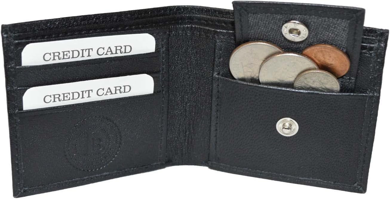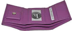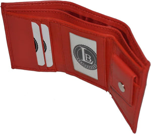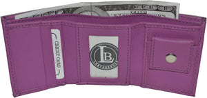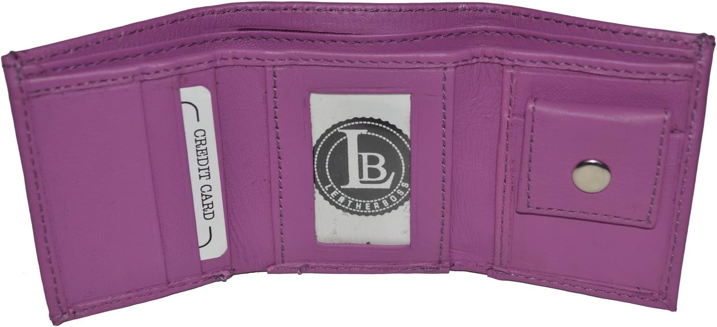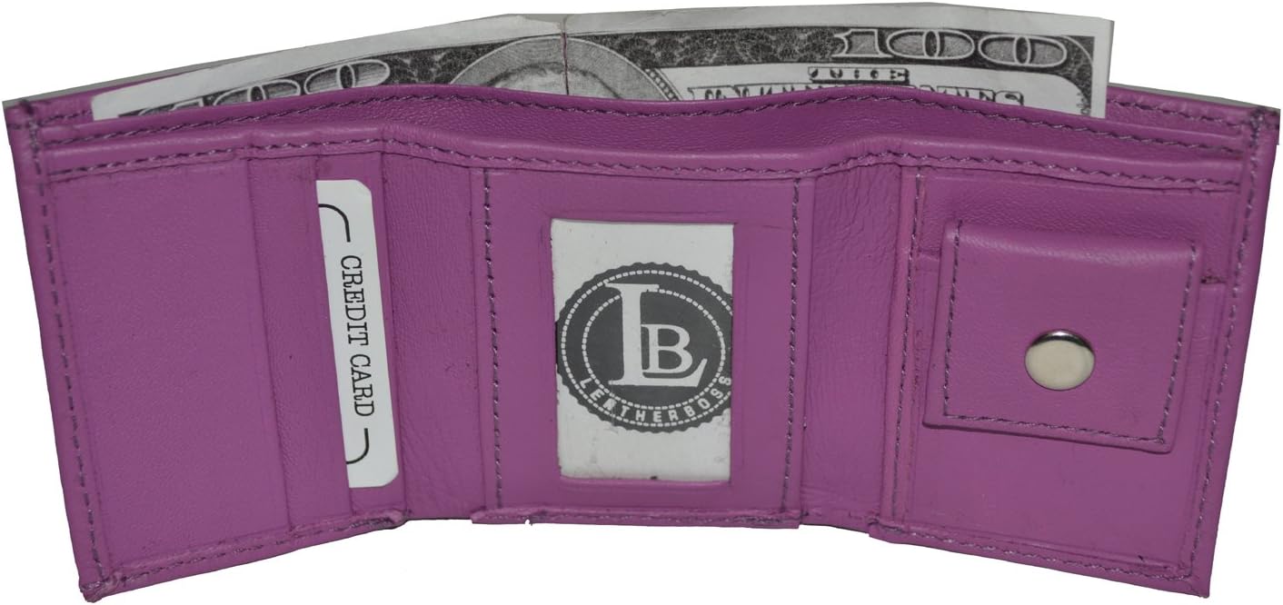 Kids leather trifold wallets have become very popular because of their utility and convenience as a first wallet for children. This leather slim wallets have 1 ID window and 1 coin pocket with snap closure. This also feature a double divided bill compartment. With this wallet your child can organize all of their money bills, identification cards, and other essentials. This wallet is also an excellent gift choice for christmas, birthday or on special occasions. Please note..this is a very small wallet. This does not fit actual credit cards or Ids. Money bills do fit but stick out just a little bit.