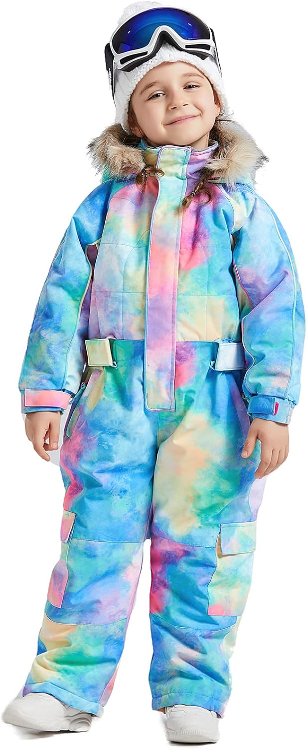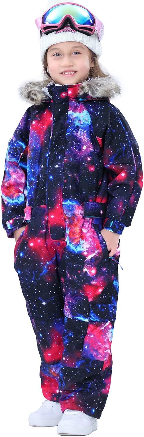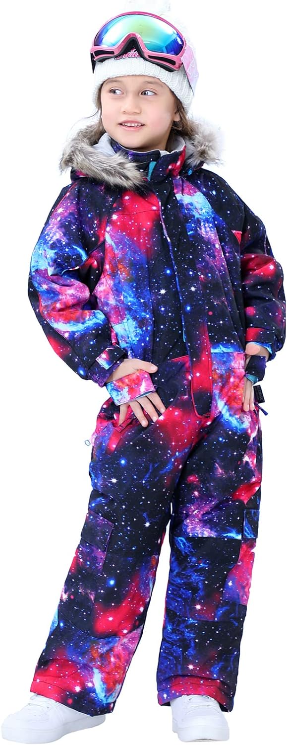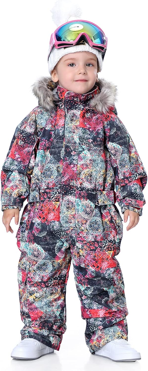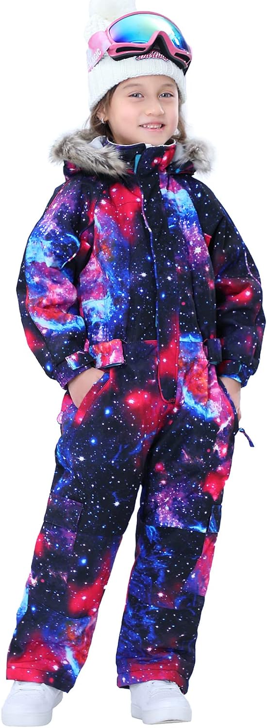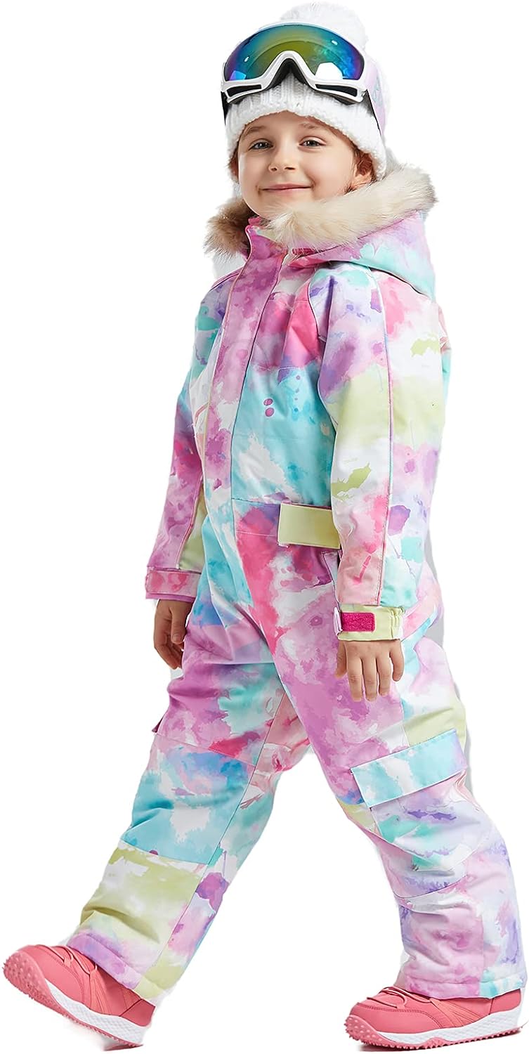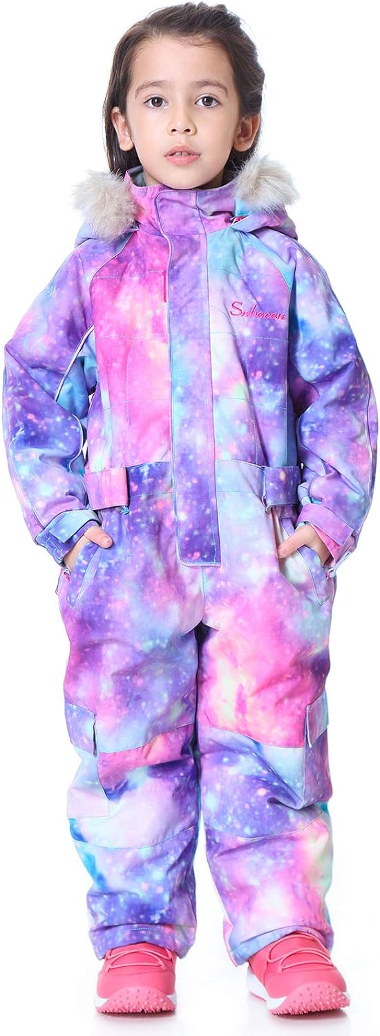 SNBOCON Kids Girls Boys Waterproof Colorful One Piece Snowsuits Coveralls Ski Suits Jackets Winter Jumpsuits