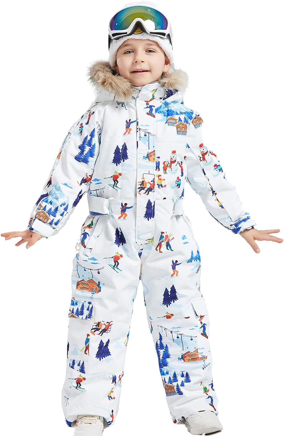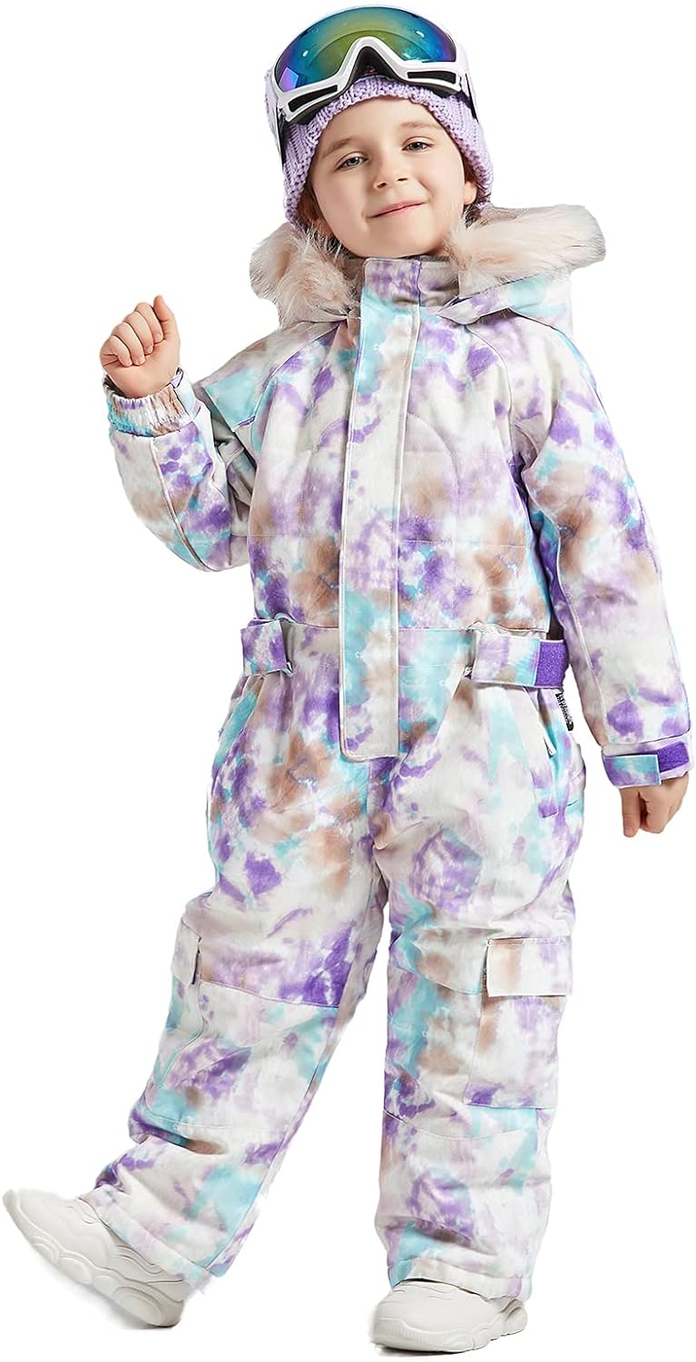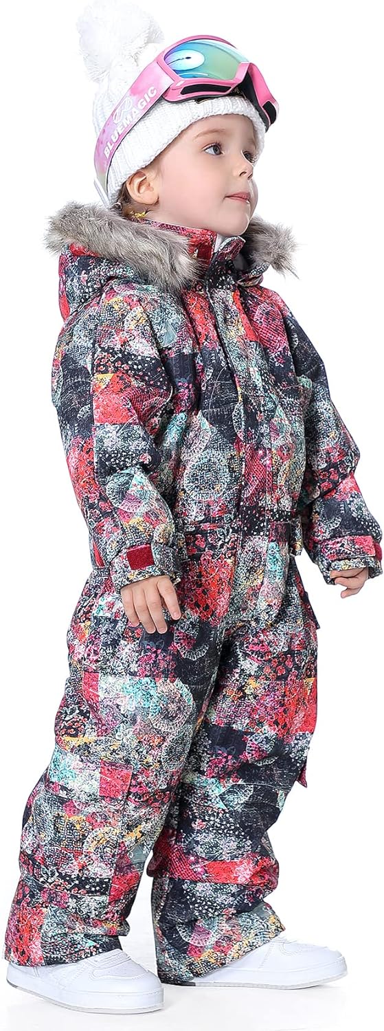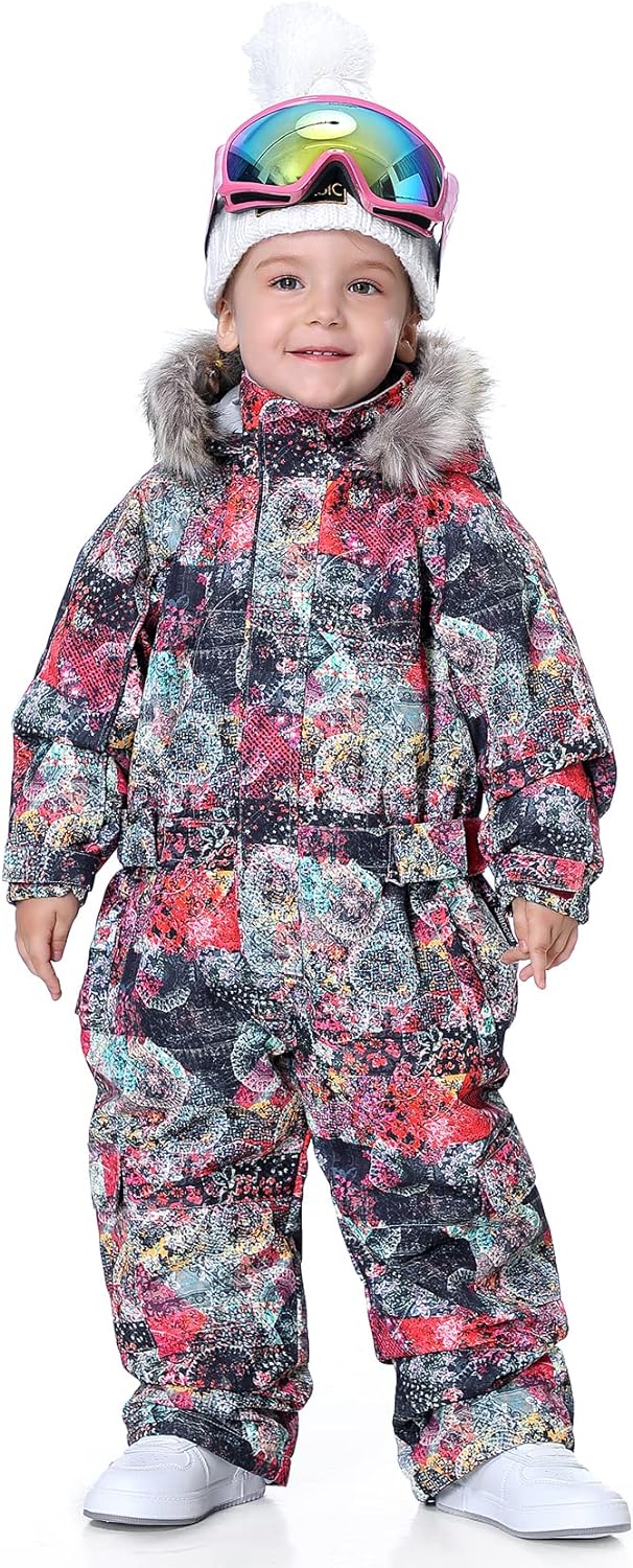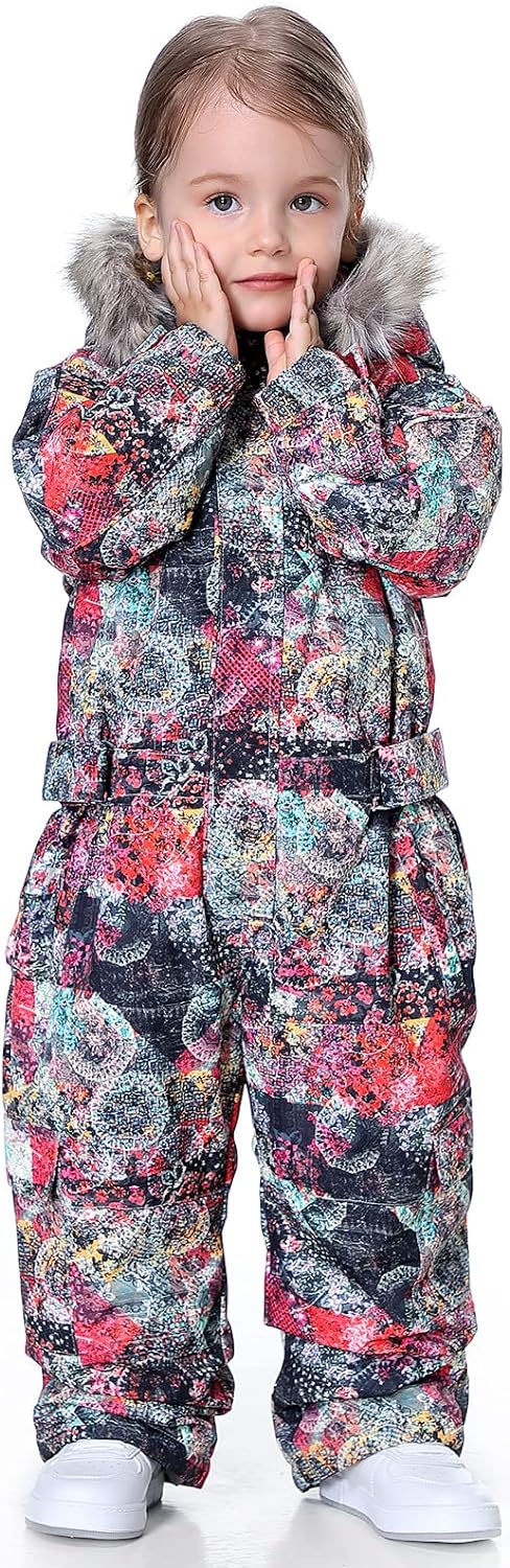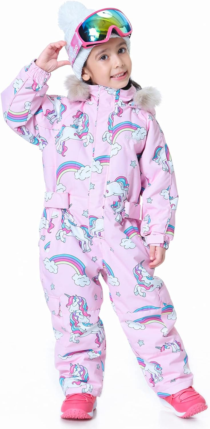 SNBOCON Kids Girls Boys Waterproof Colorful One Piece Snowsuits Coveralls Ski Suits Jackets Winter Jumpsuits