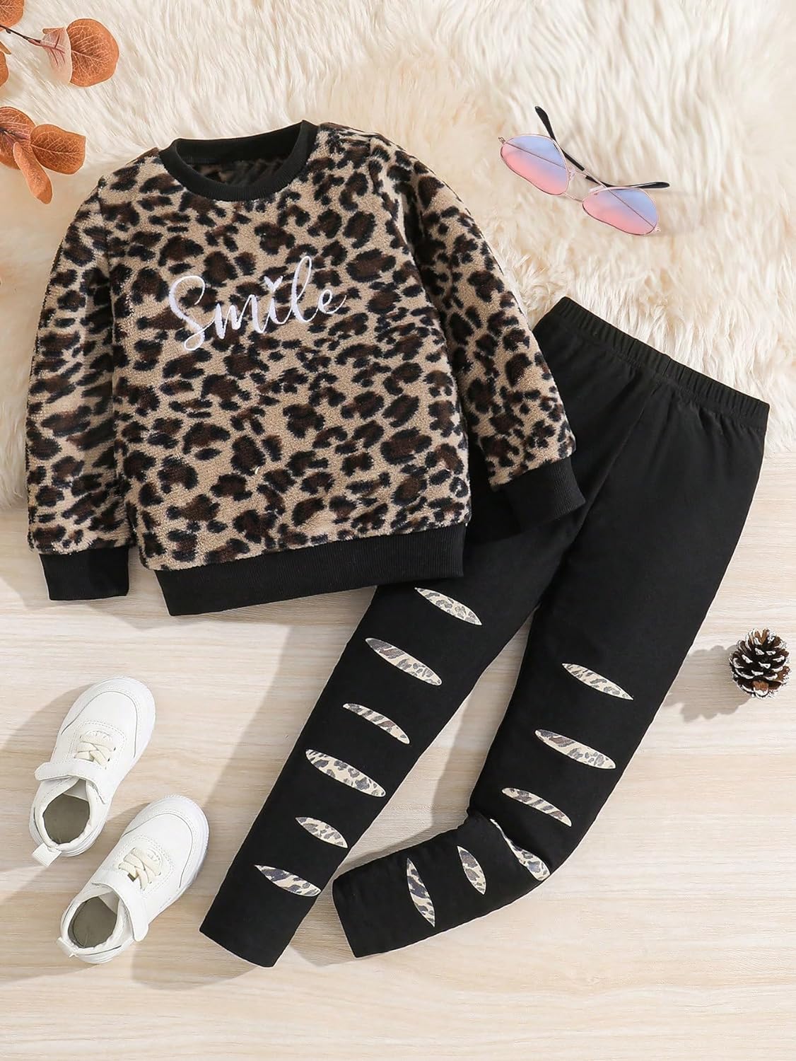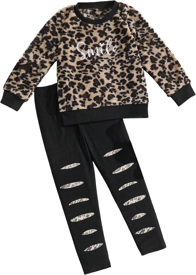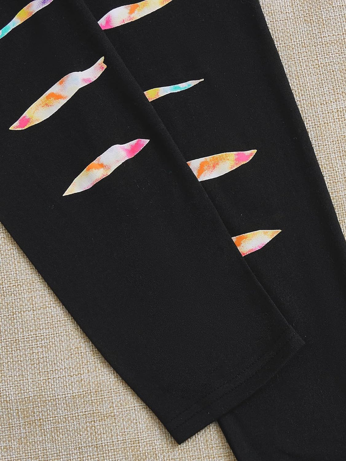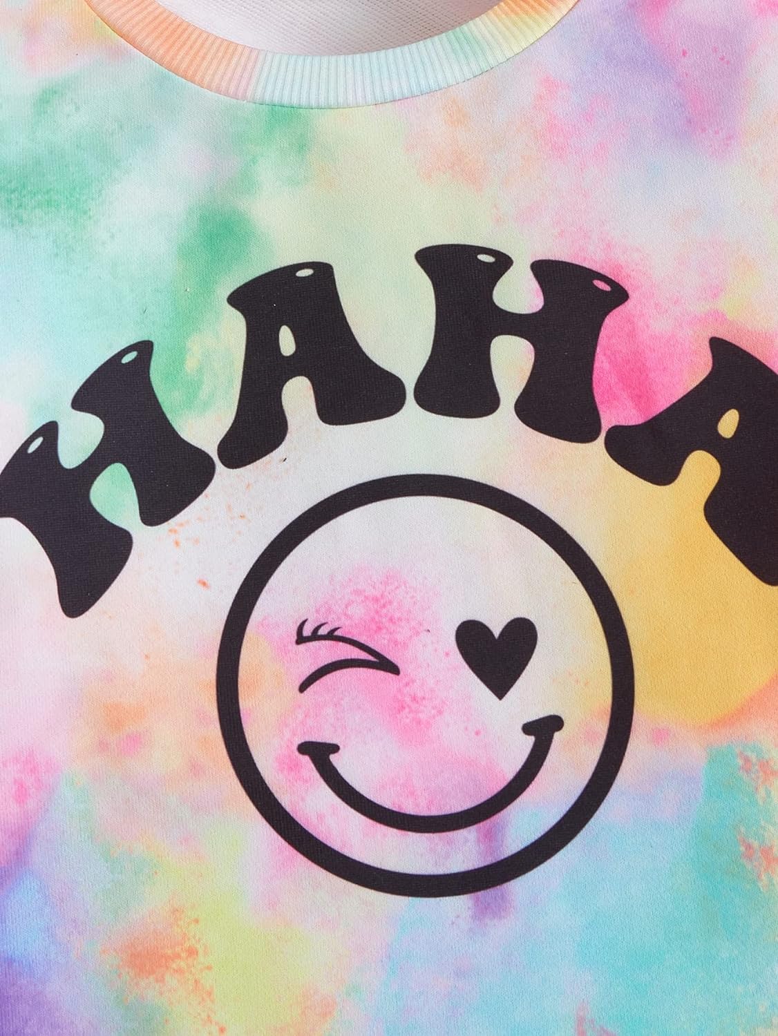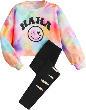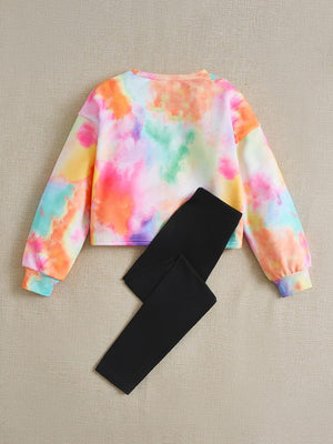 SOLY HUX Girl's Tie Dye Cartoon Letter Graphic Long Sleeve Pullover Sweatshirt with Ripped Leggings 2 Piece
