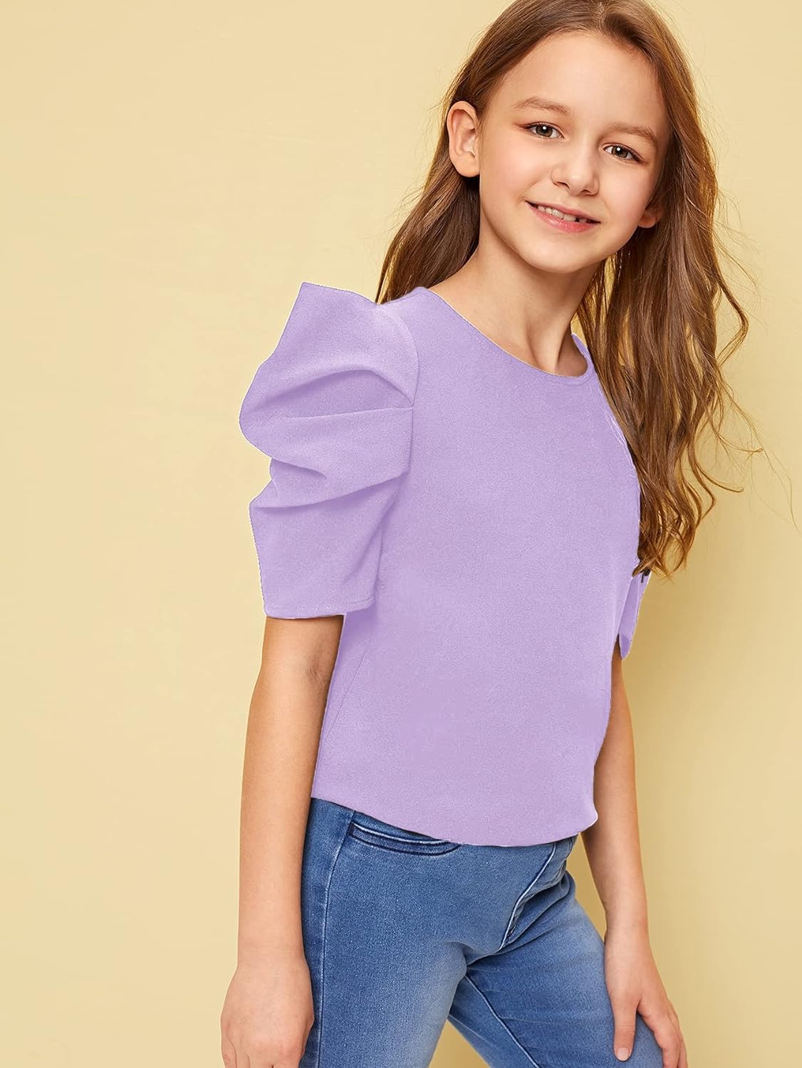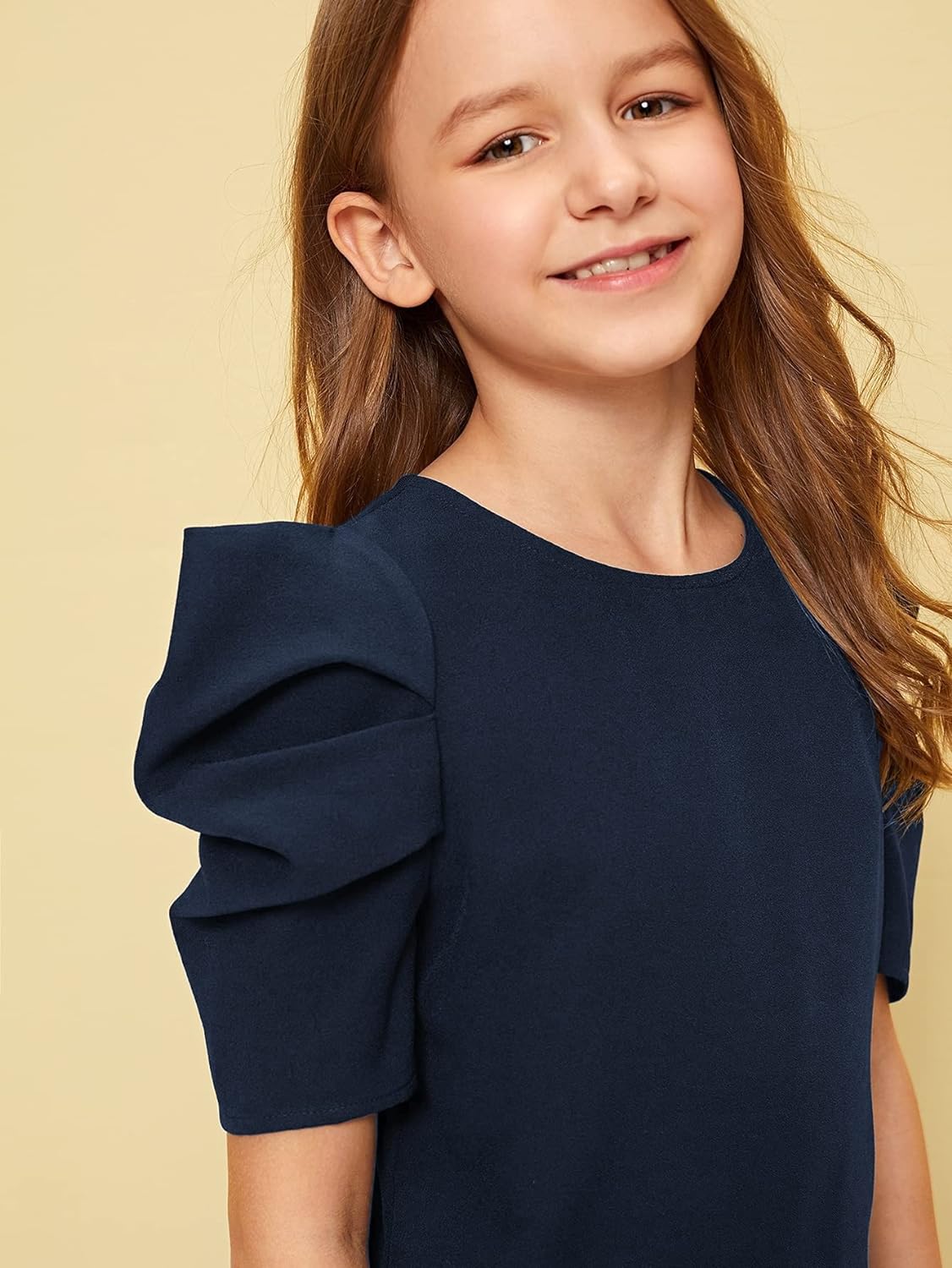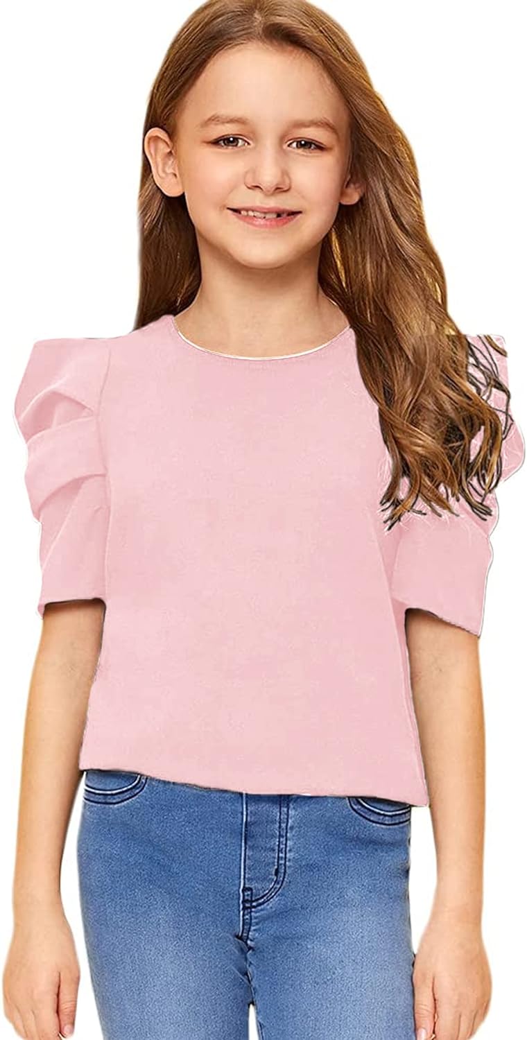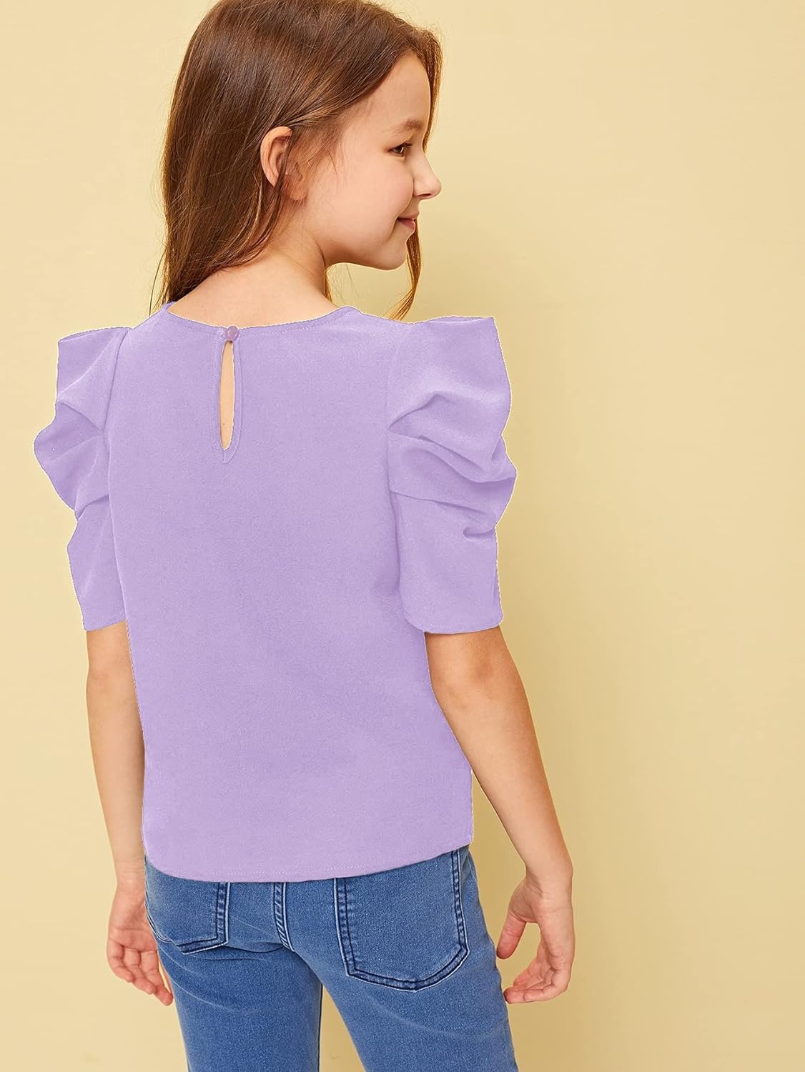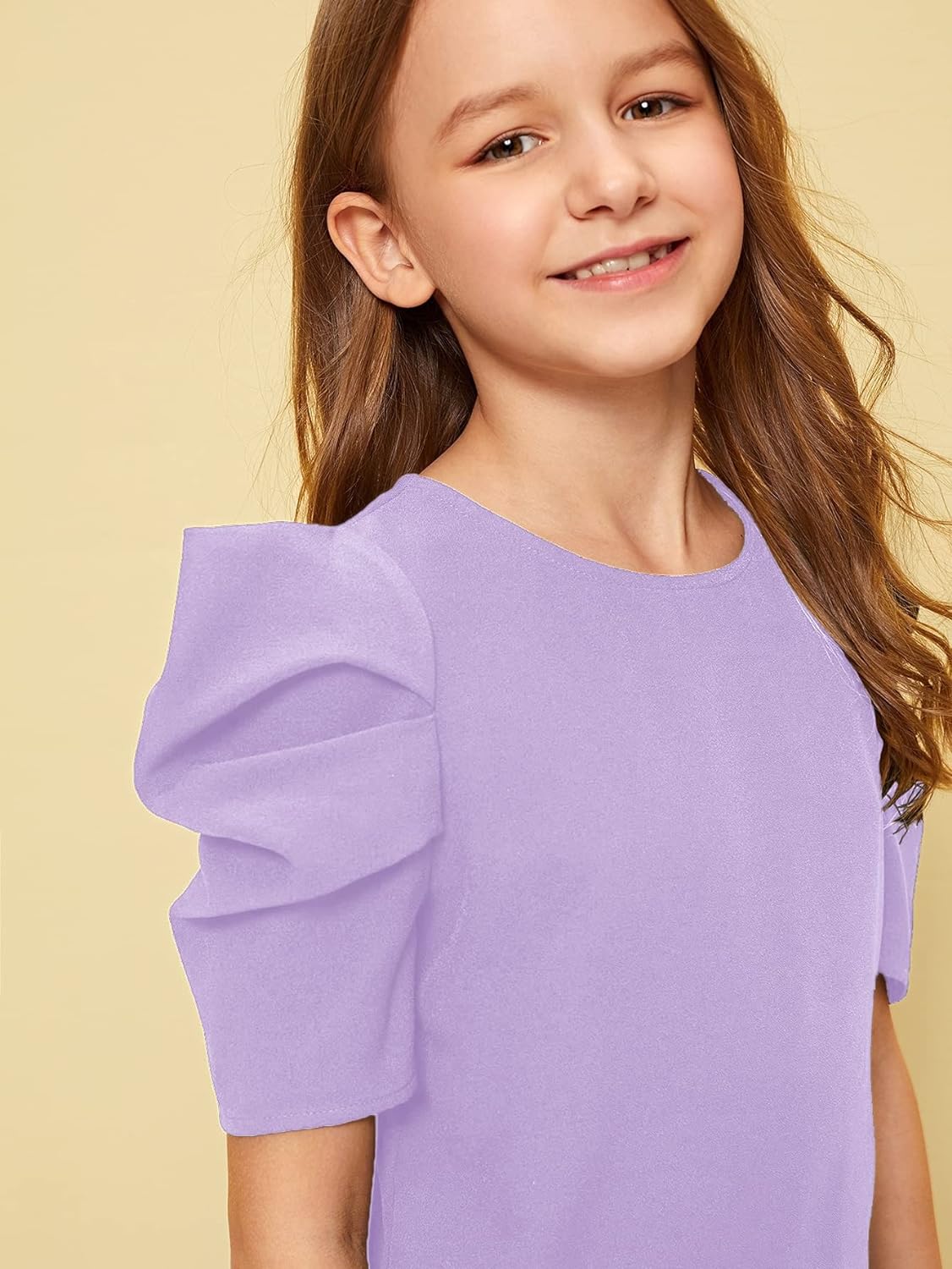 SOLY HUX Kids Girl's Summer Puff Short Sleeve Round Neck Cute Blouse Pullover Top