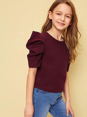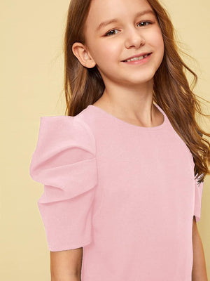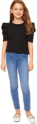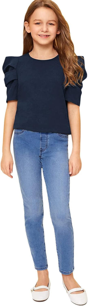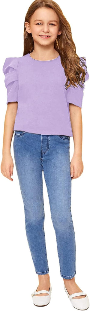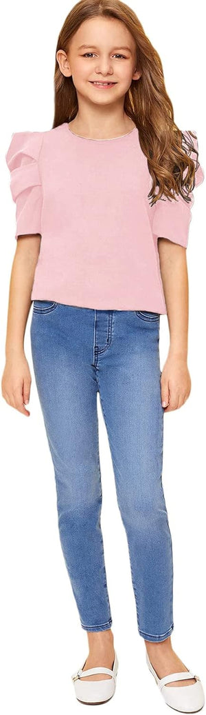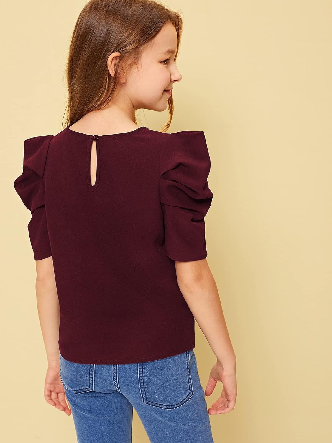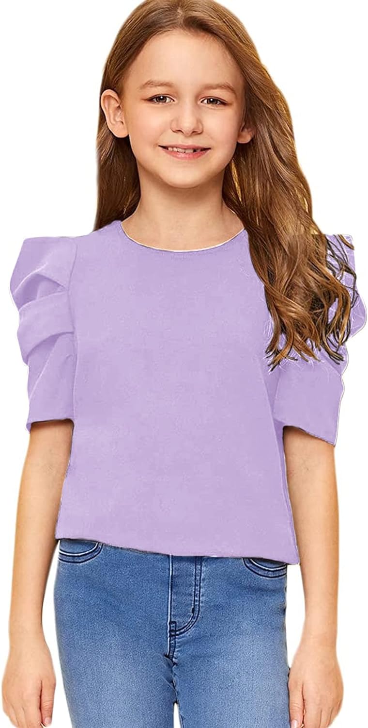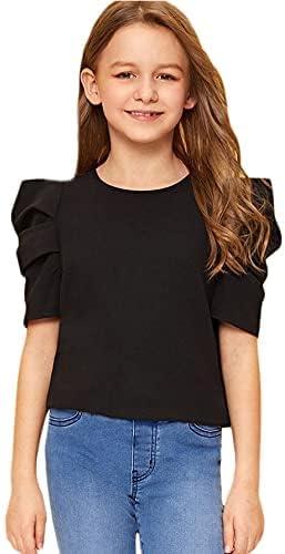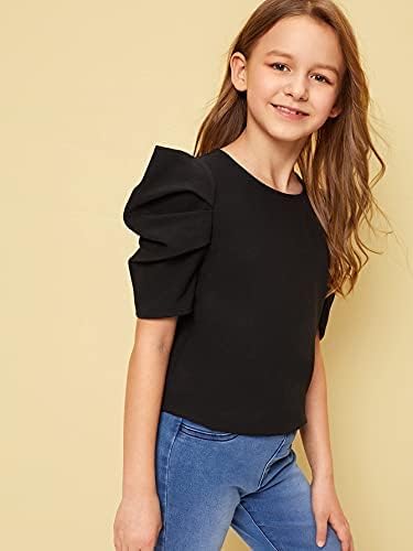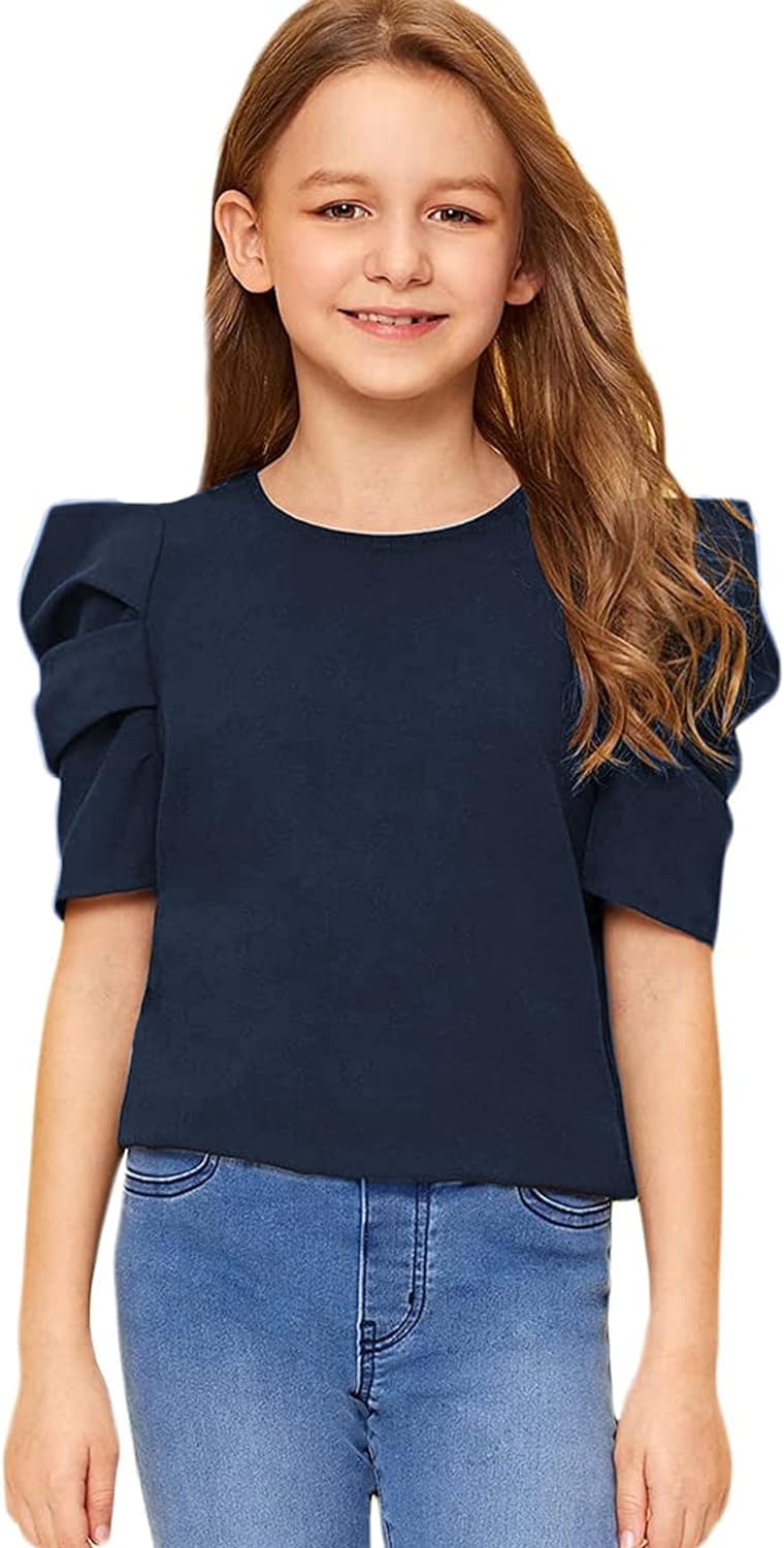 SOLY HUX Kids Girl's Summer Puff Short Sleeve Round Neck Cute Blouse Pullover Top
