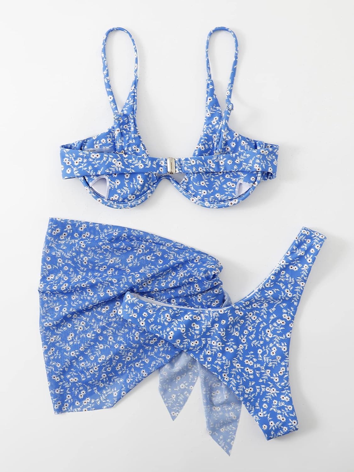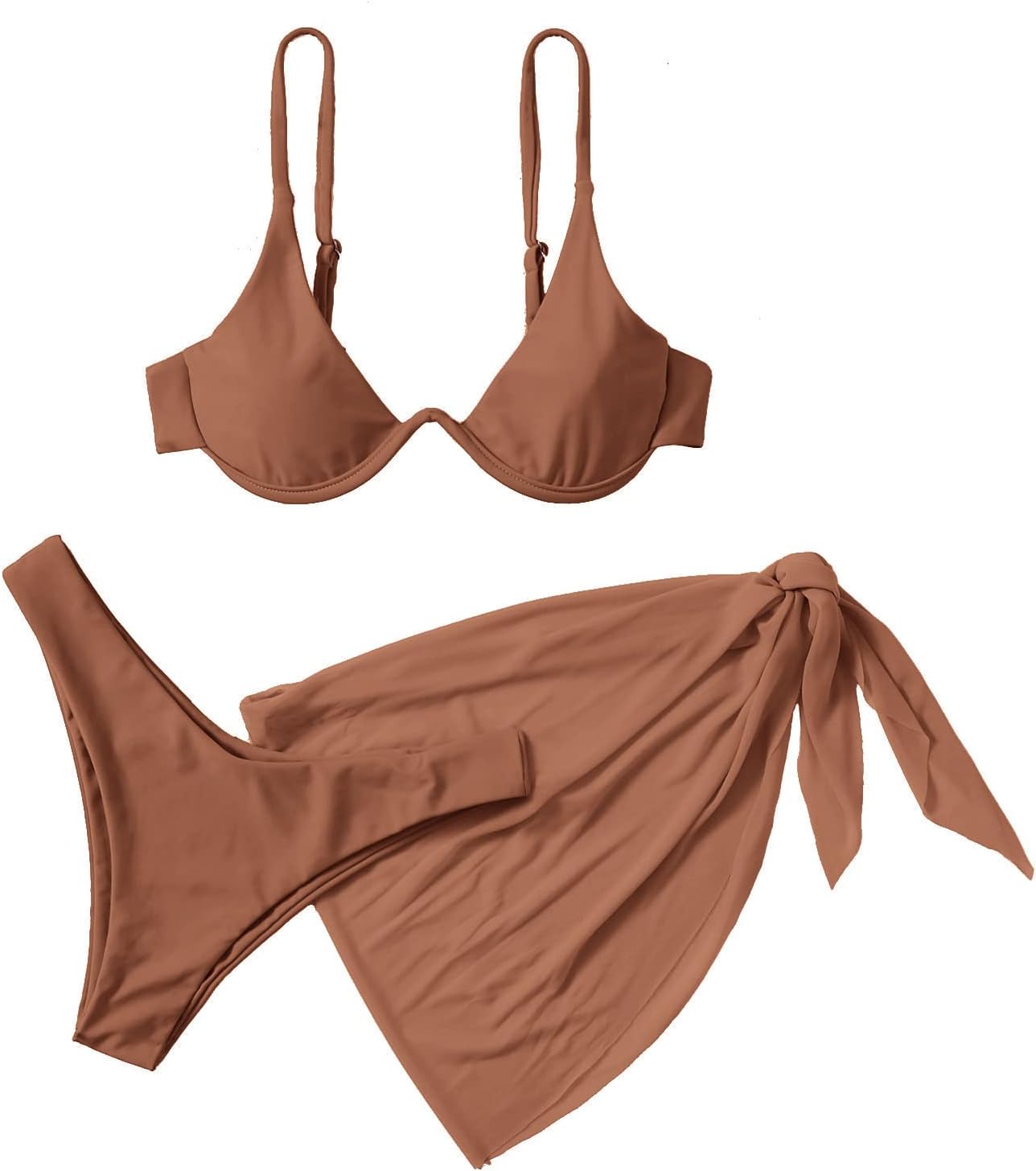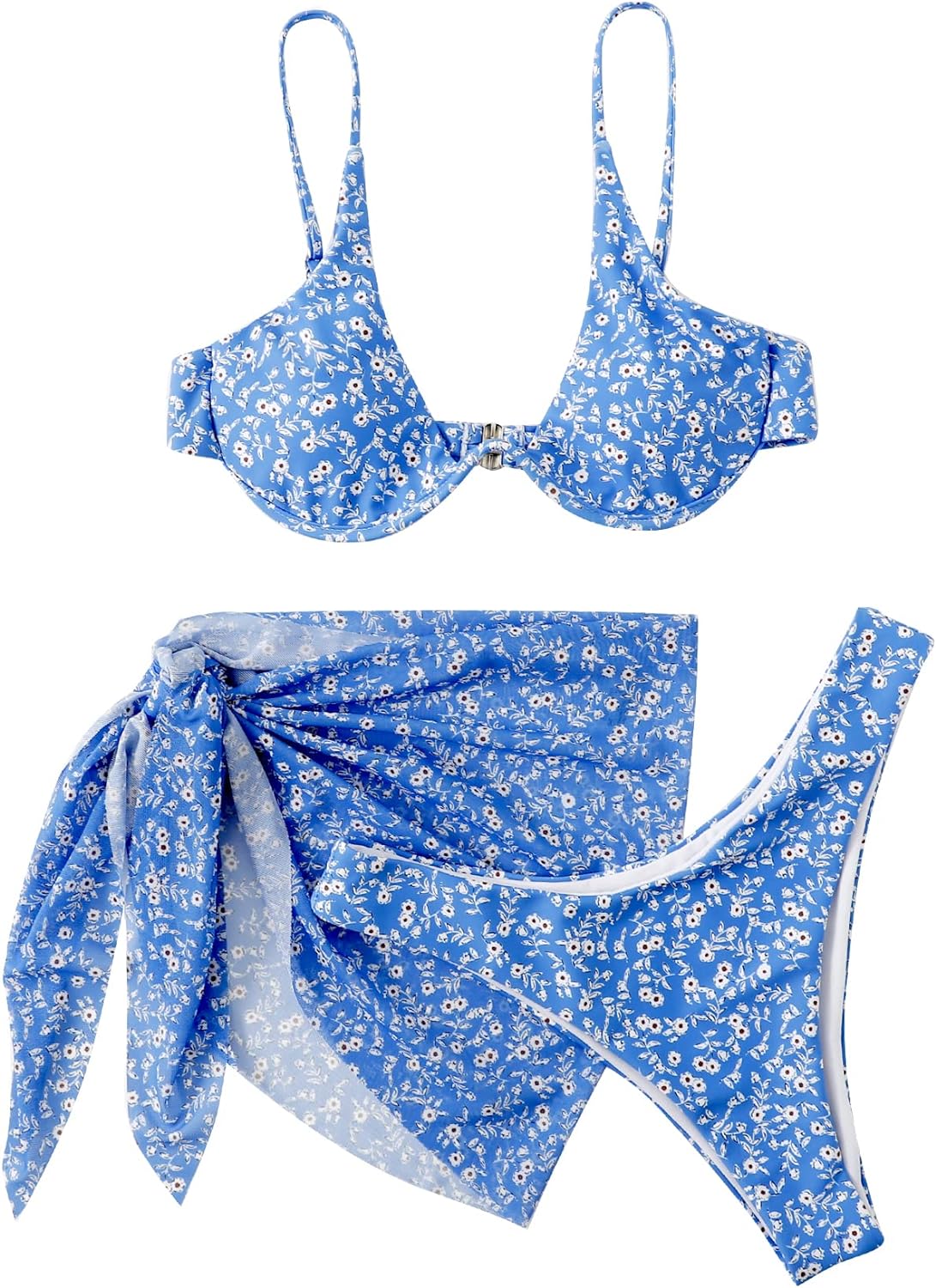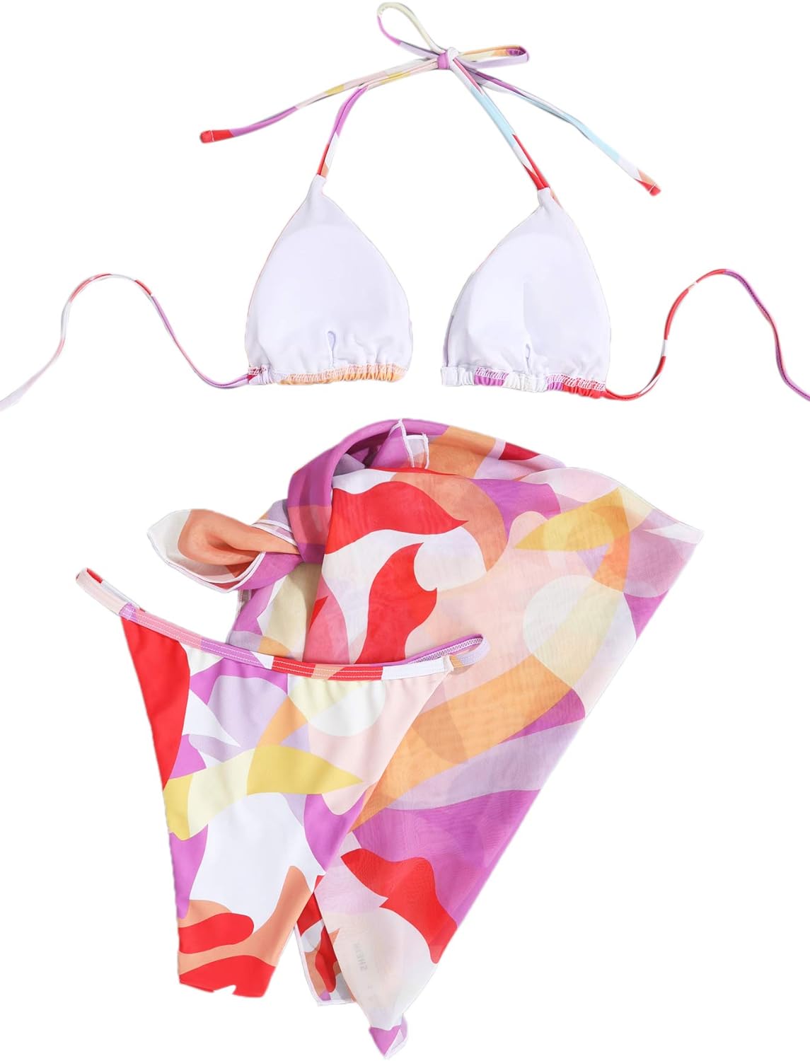 SOLY HUX Women's 3 Piece Tie Dye Bikini Set Swimsuit with Sarongs Cover Ups Beach Skirt Bathing Suit