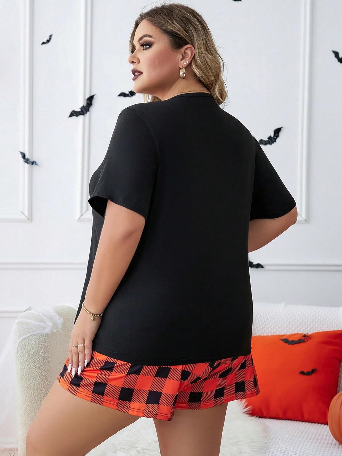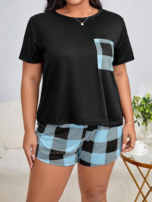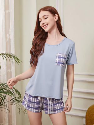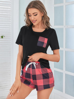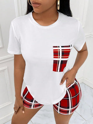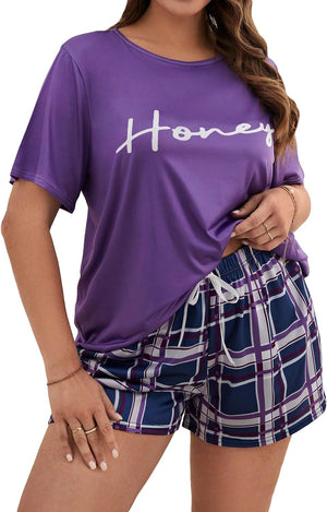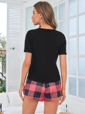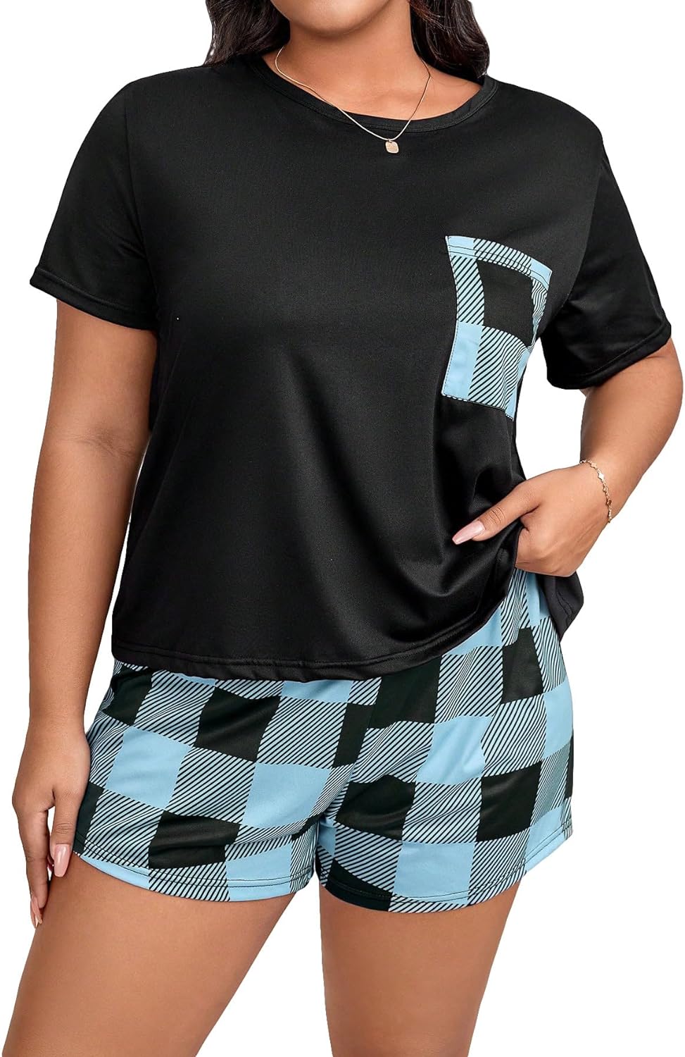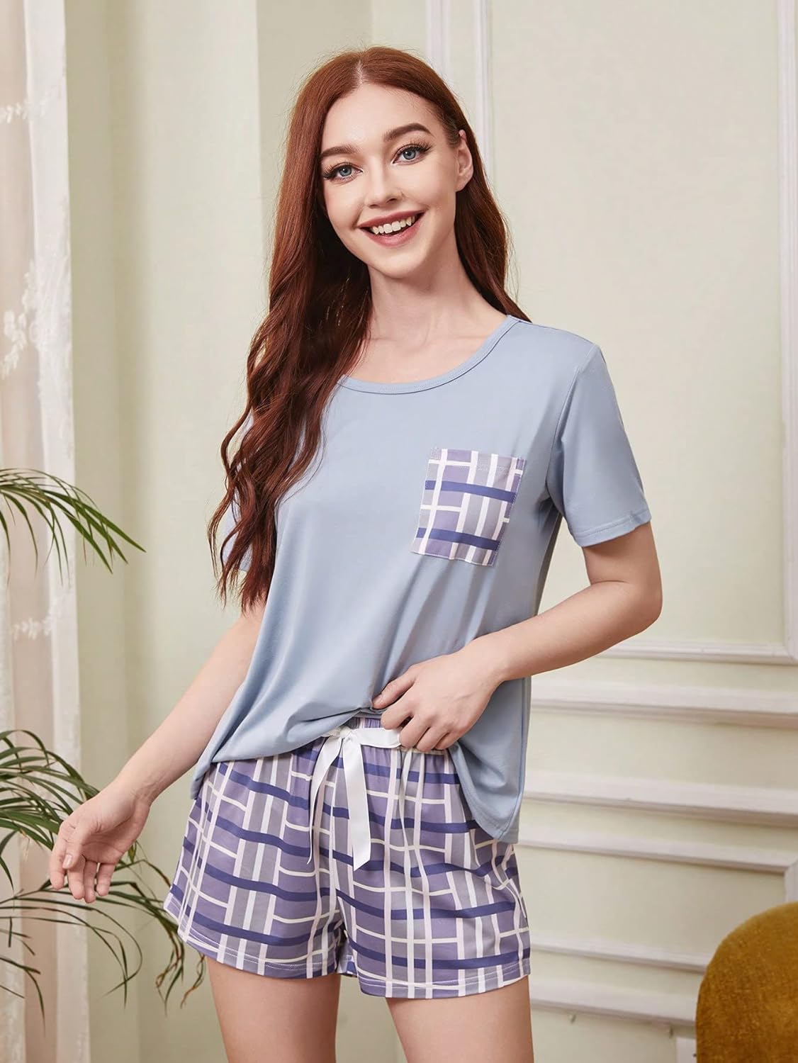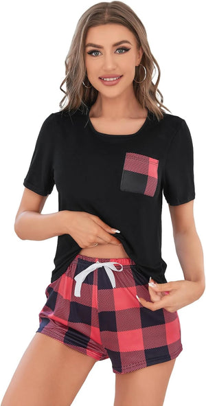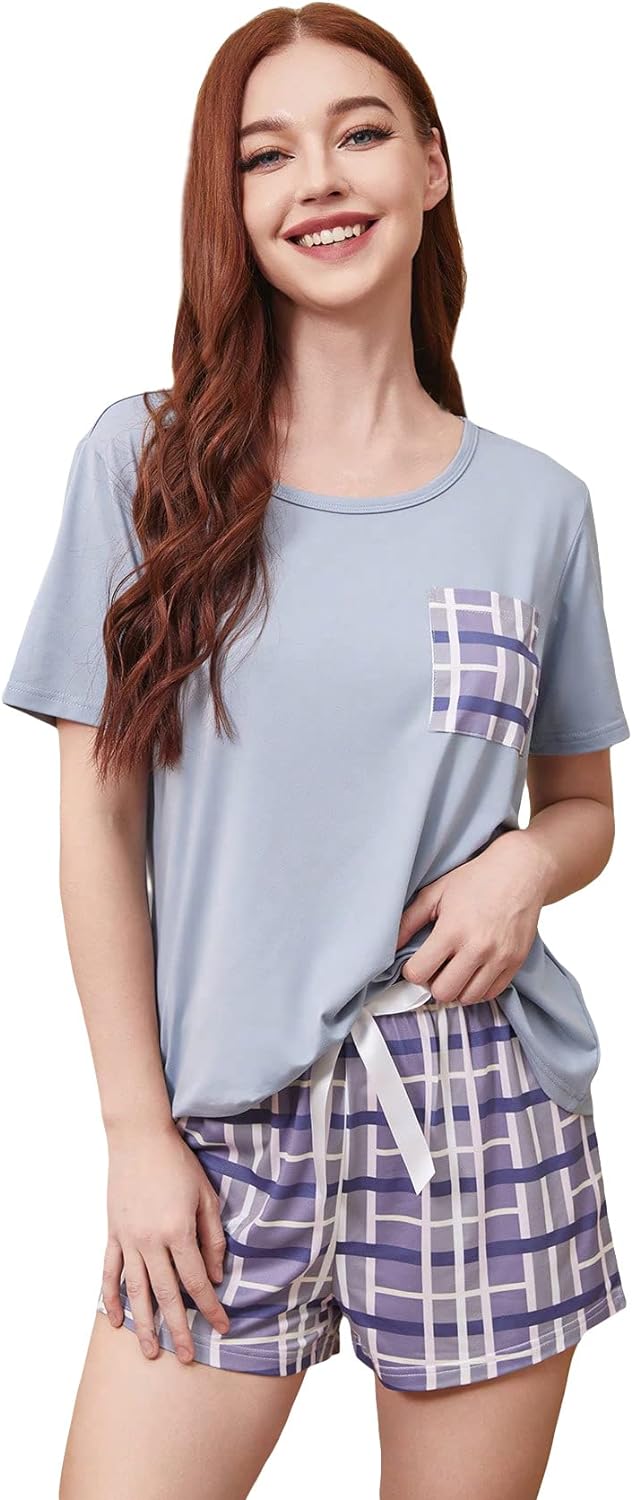 SOLY HUX Women's Short Sleeve Tee Top and Plaid Shorts Lounge Pajama Set Sleepwear