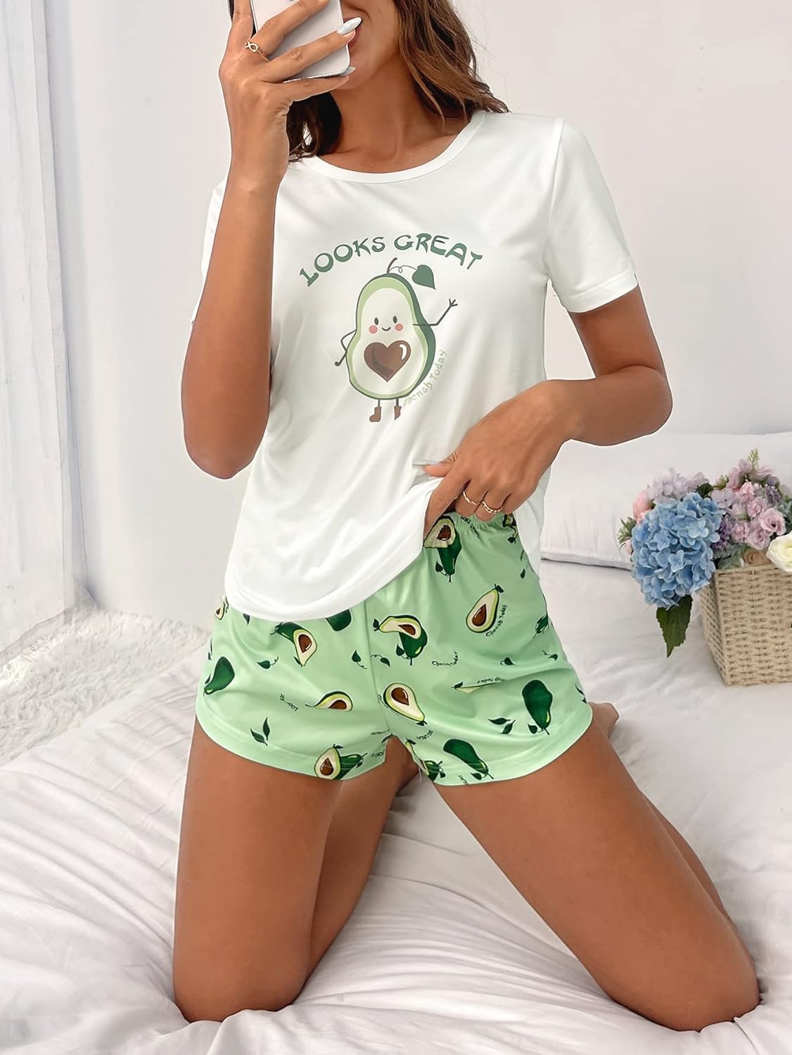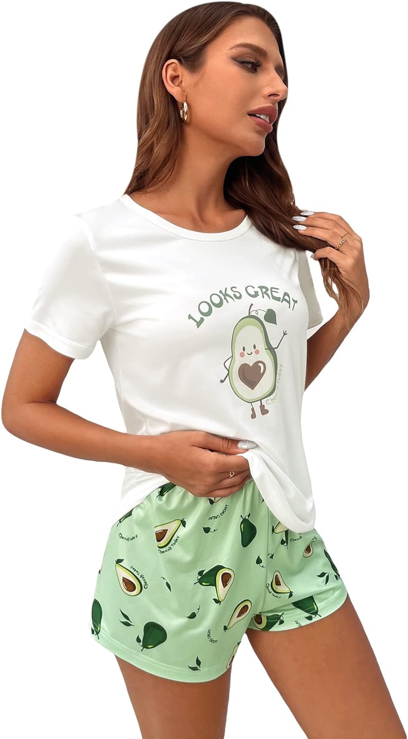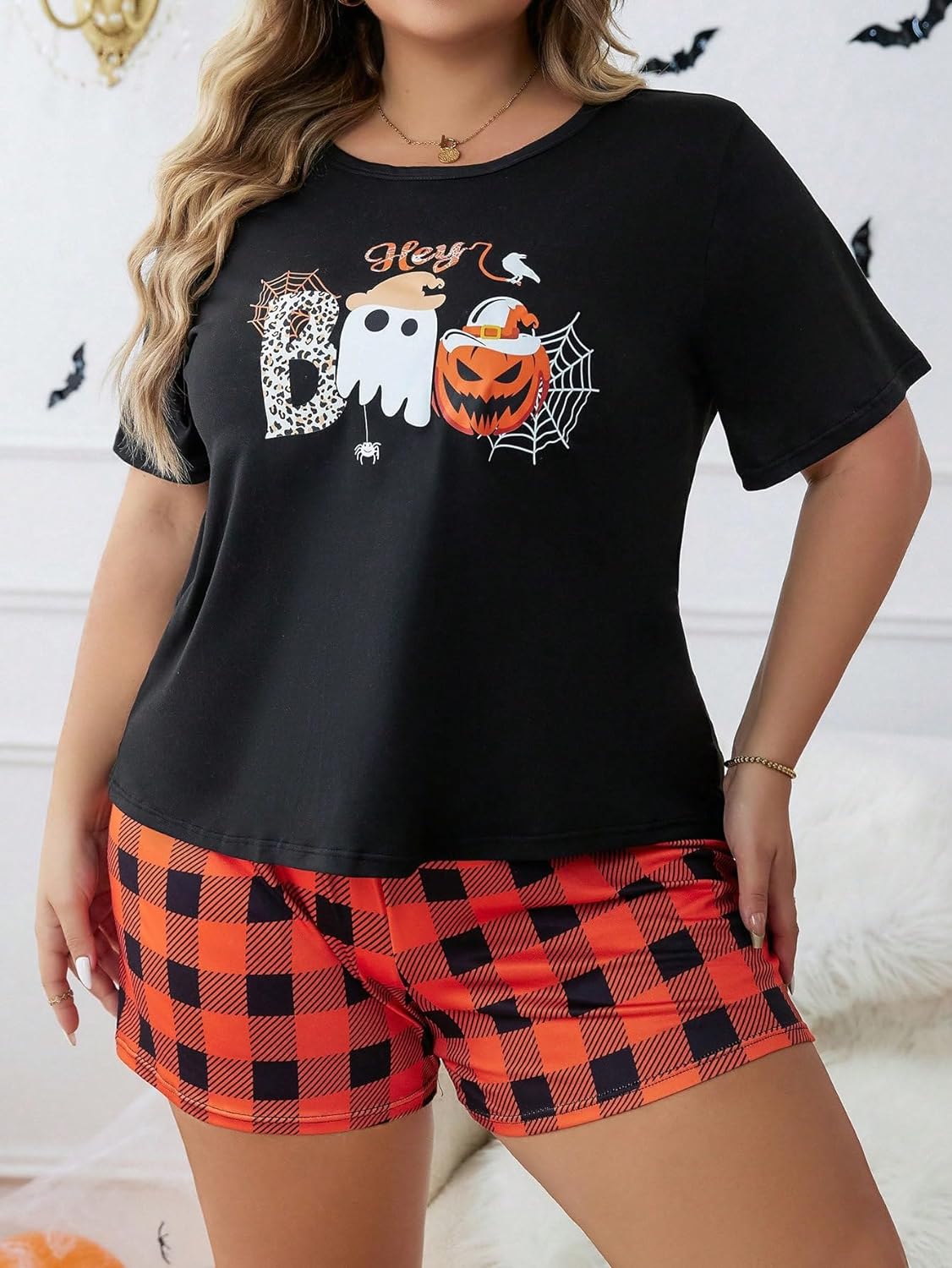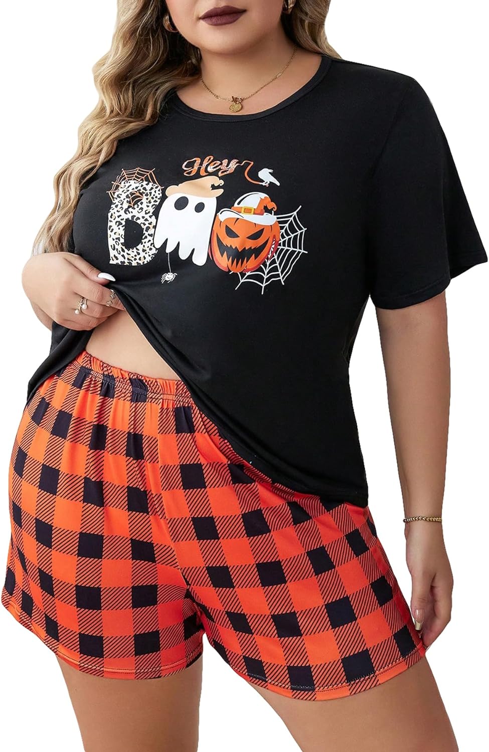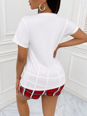 SOLY HUX Women's Short Sleeve Tee Top and Plaid Shorts Lounge Pajama Set Sleepwear