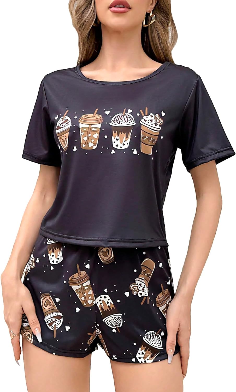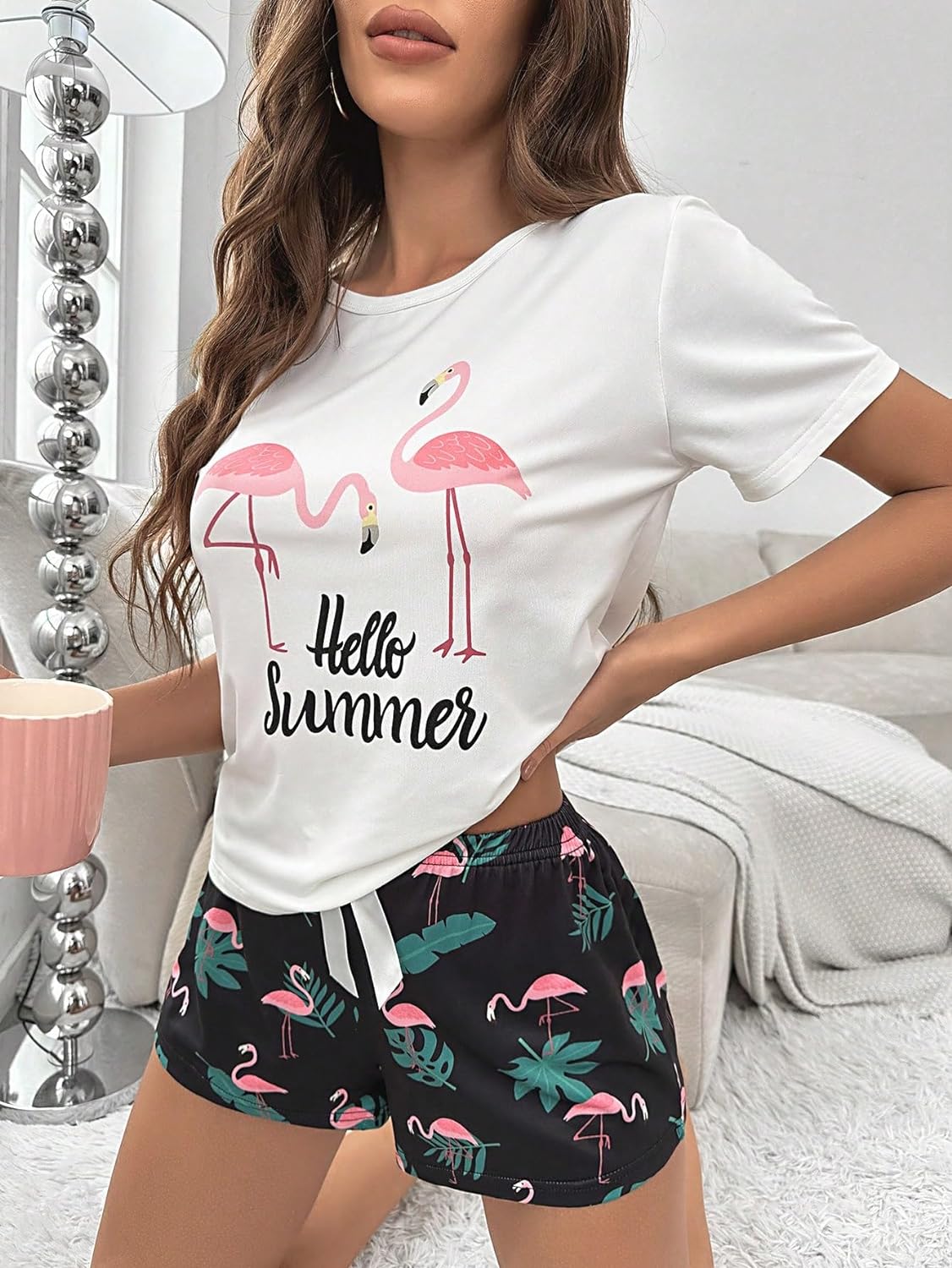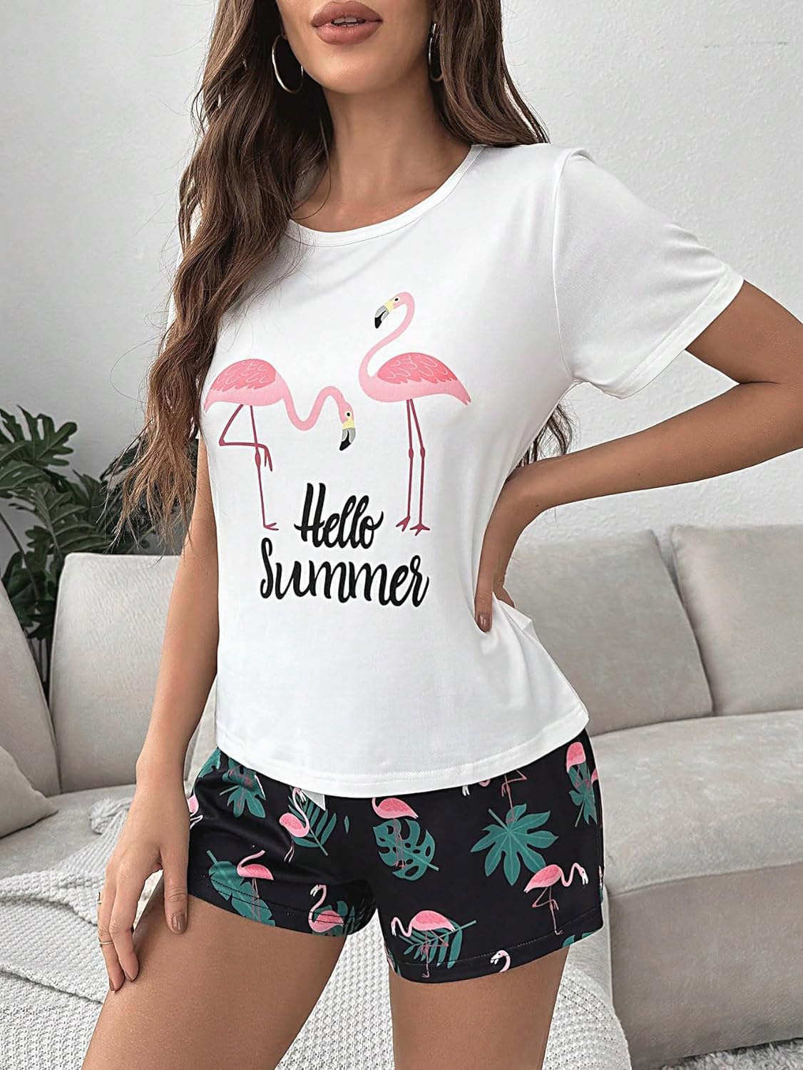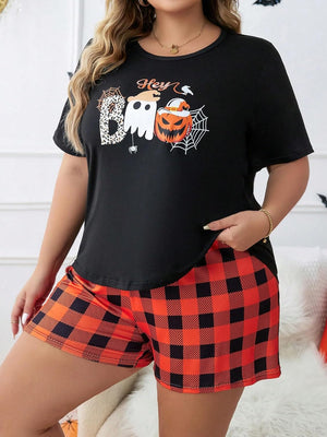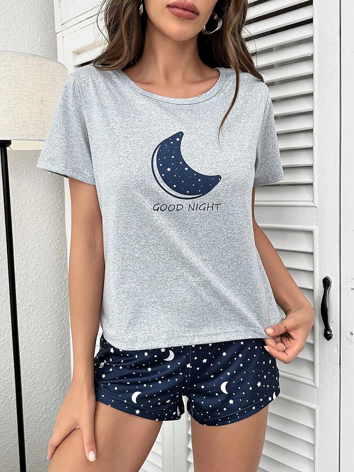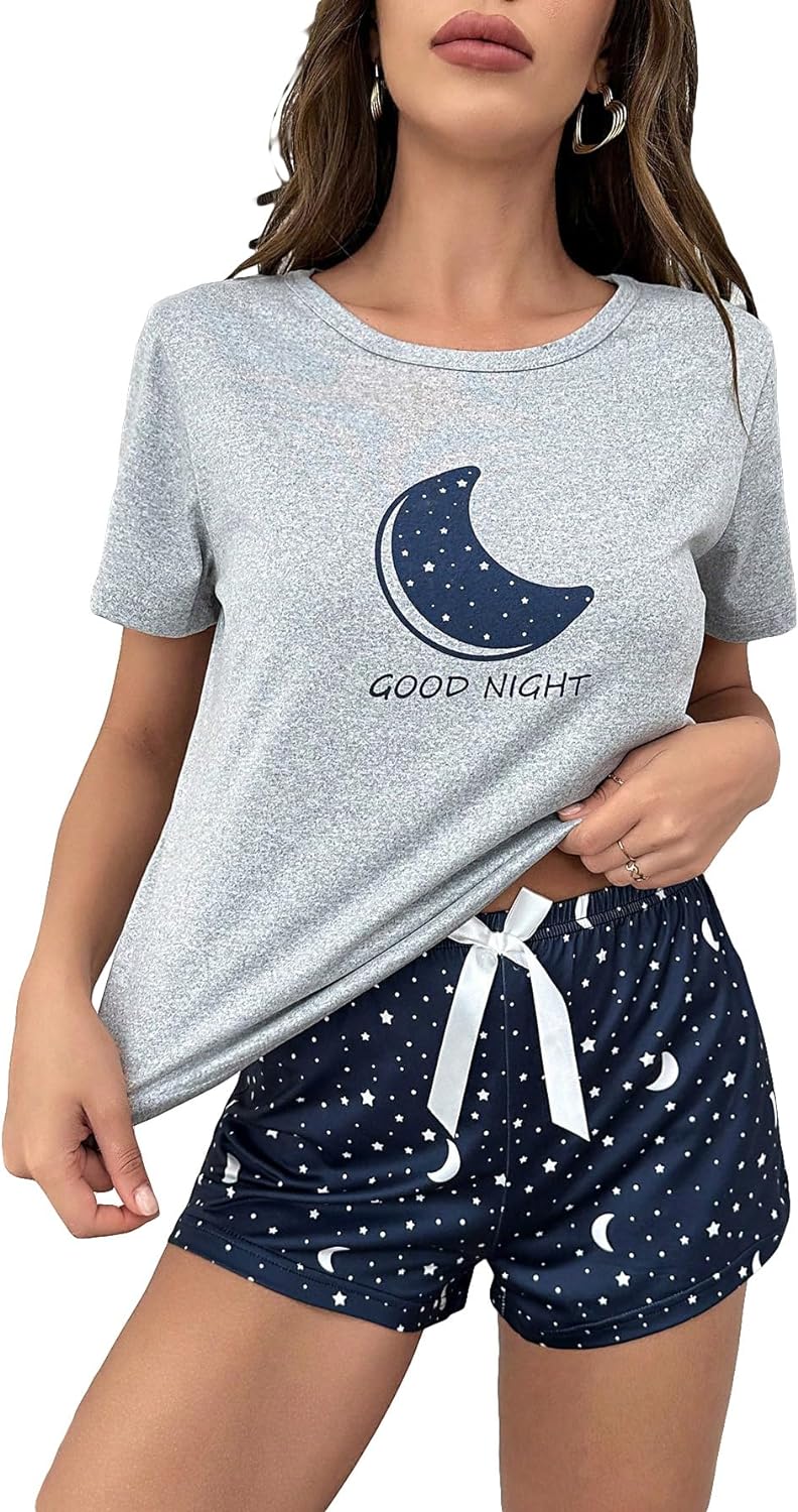 SOLY HUX Women's Short Sleeve Tee Top and Plaid Shorts Lounge Pajama Set Sleepwear