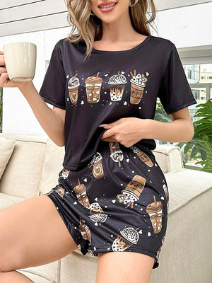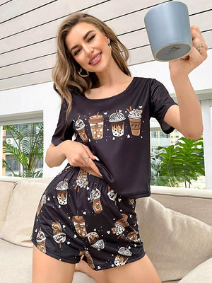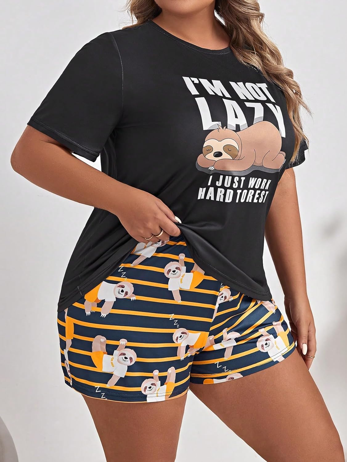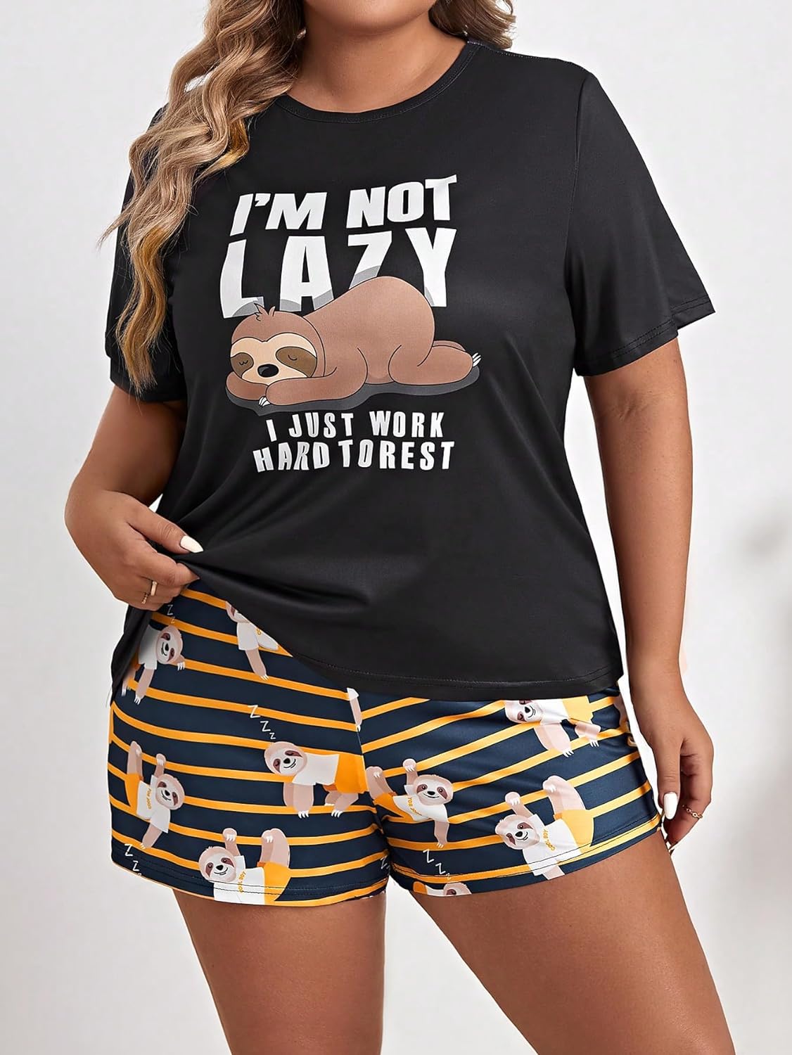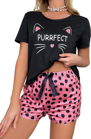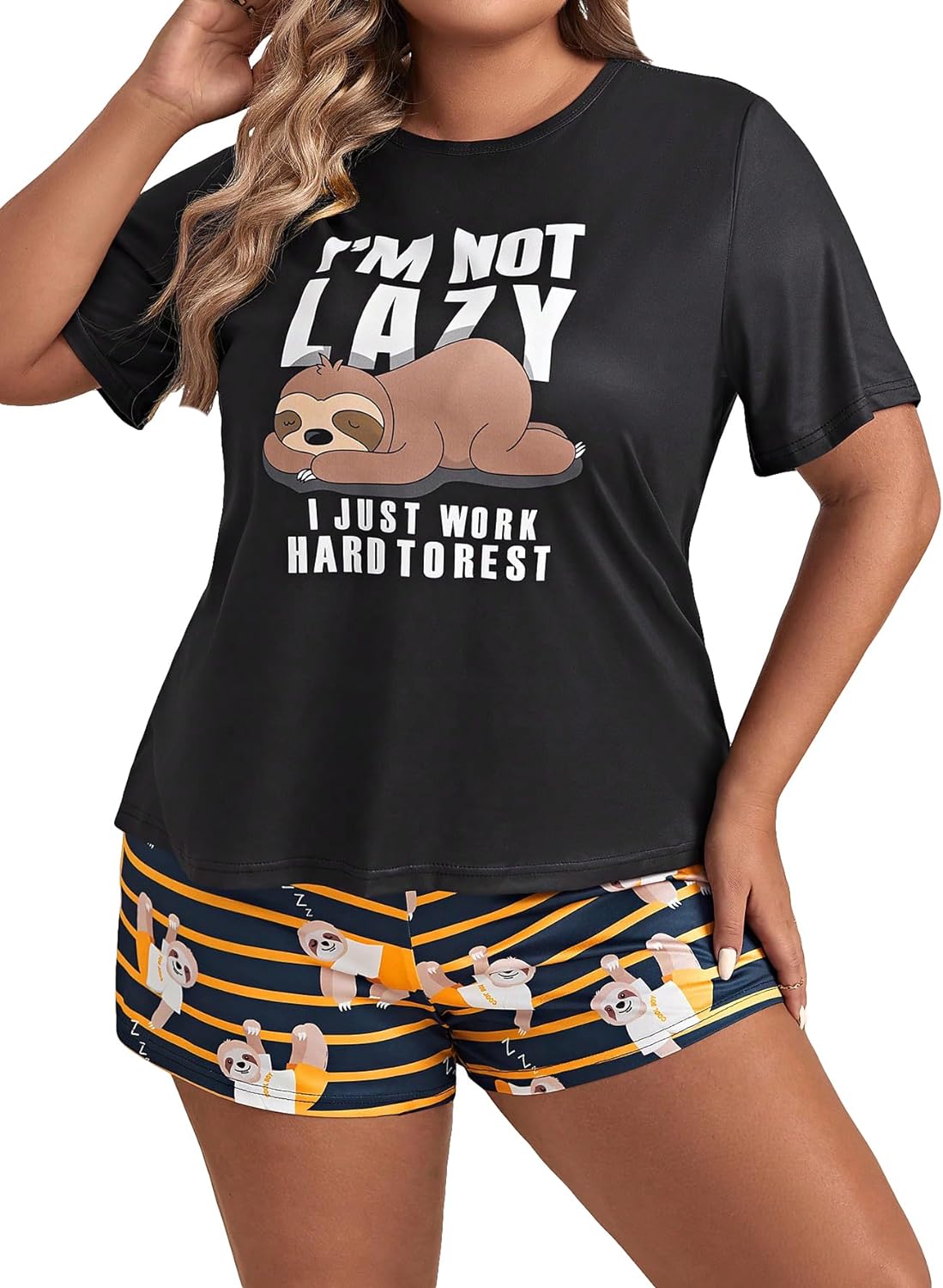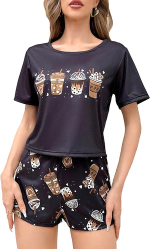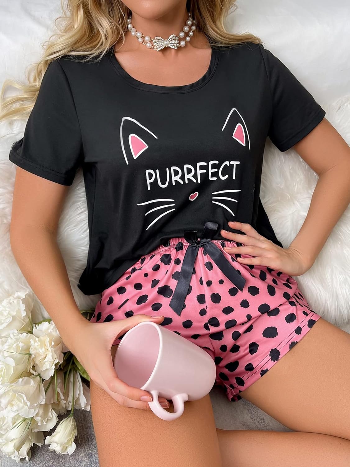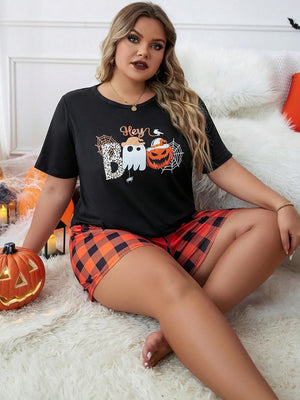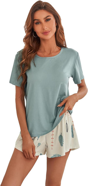 SOLY HUX Women's Short Sleeve Tee Top and Plaid Shorts Lounge Pajama Set Sleepwear