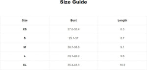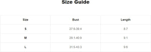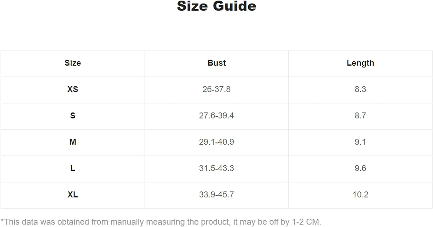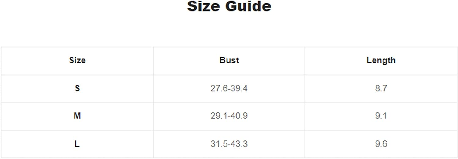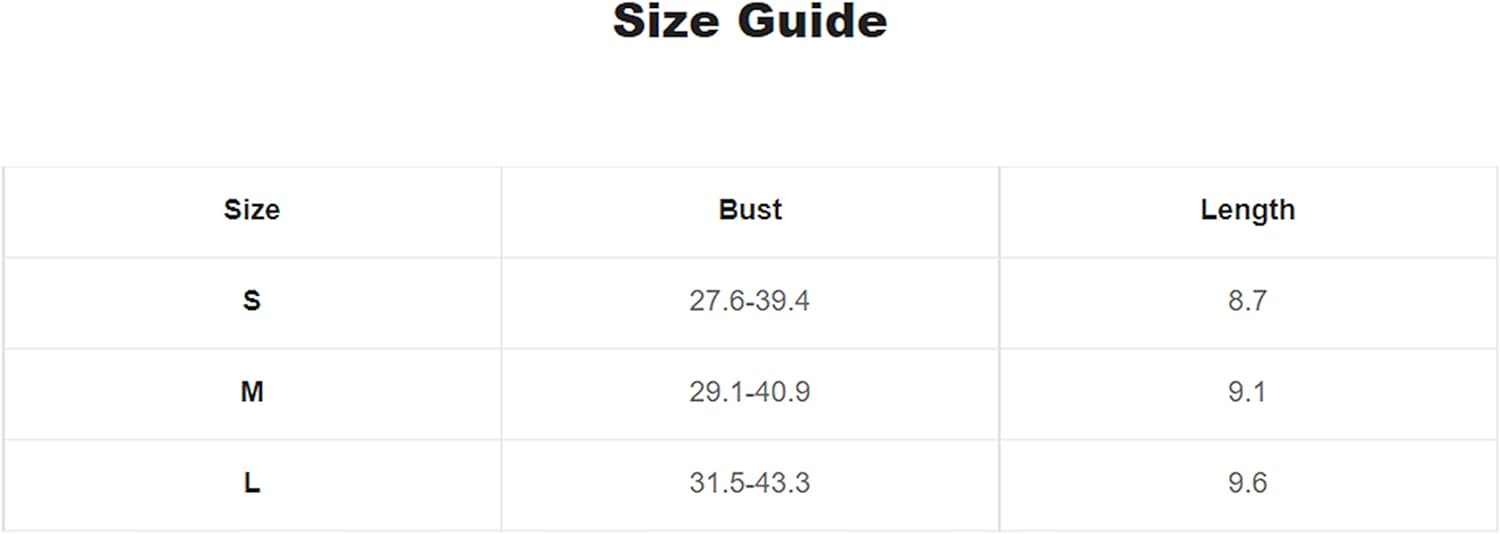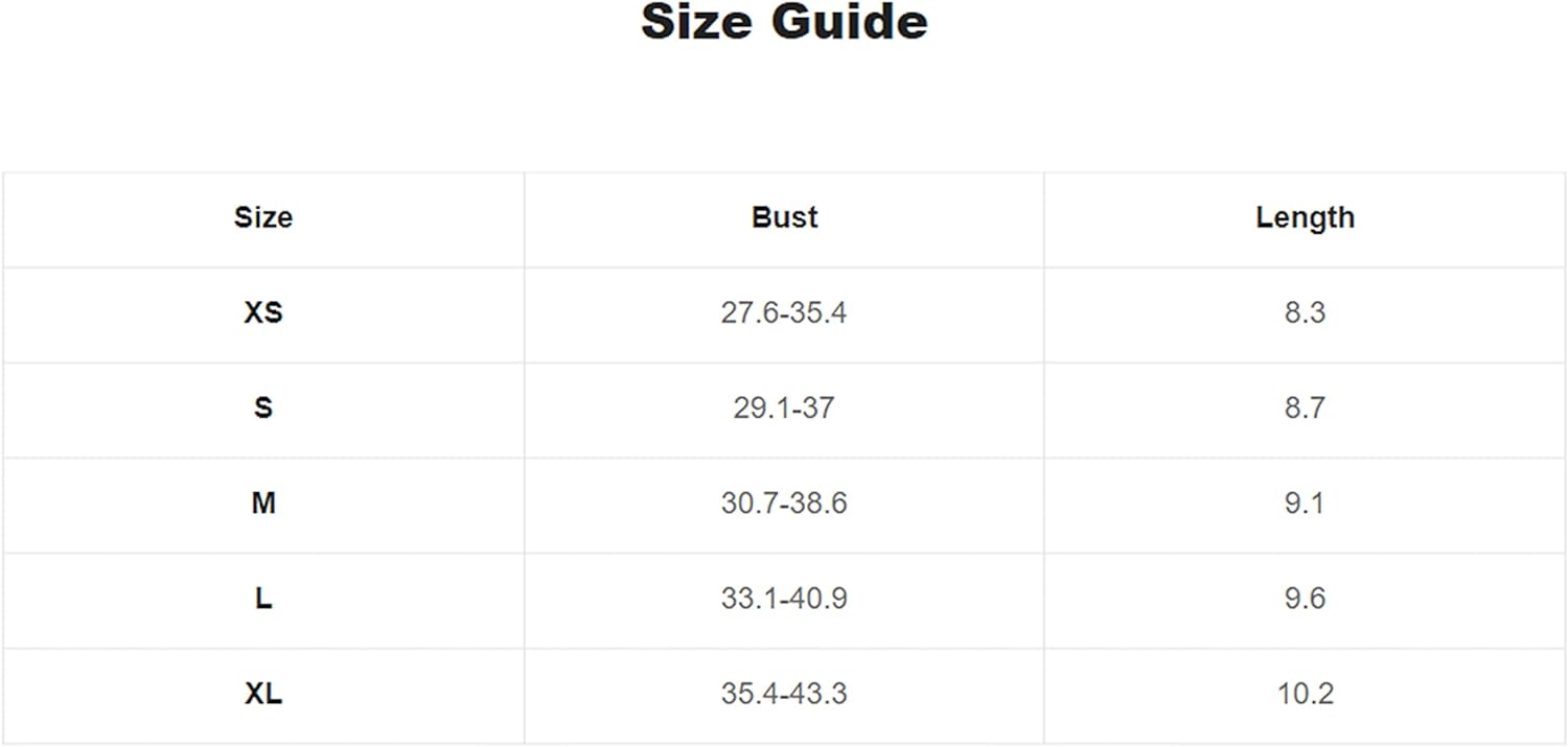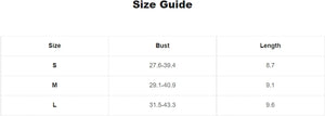Small: Bust: 27.6-39.4", Length: 8.7",