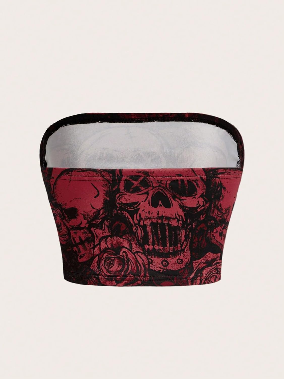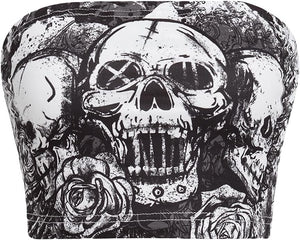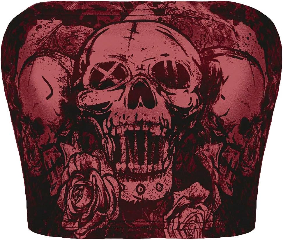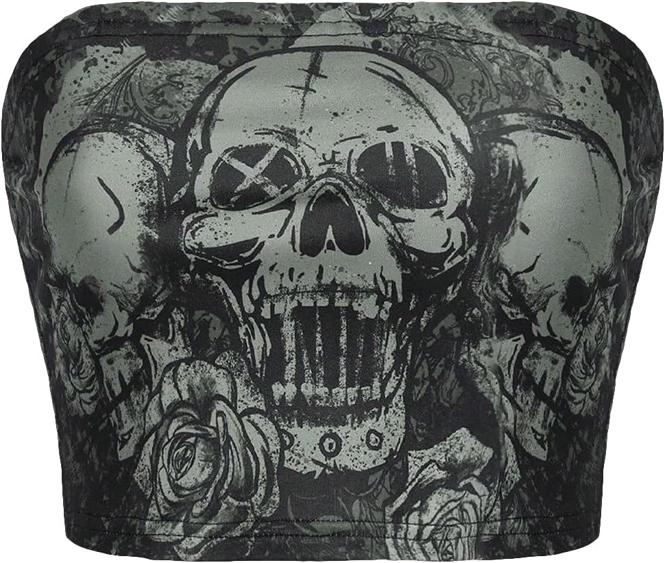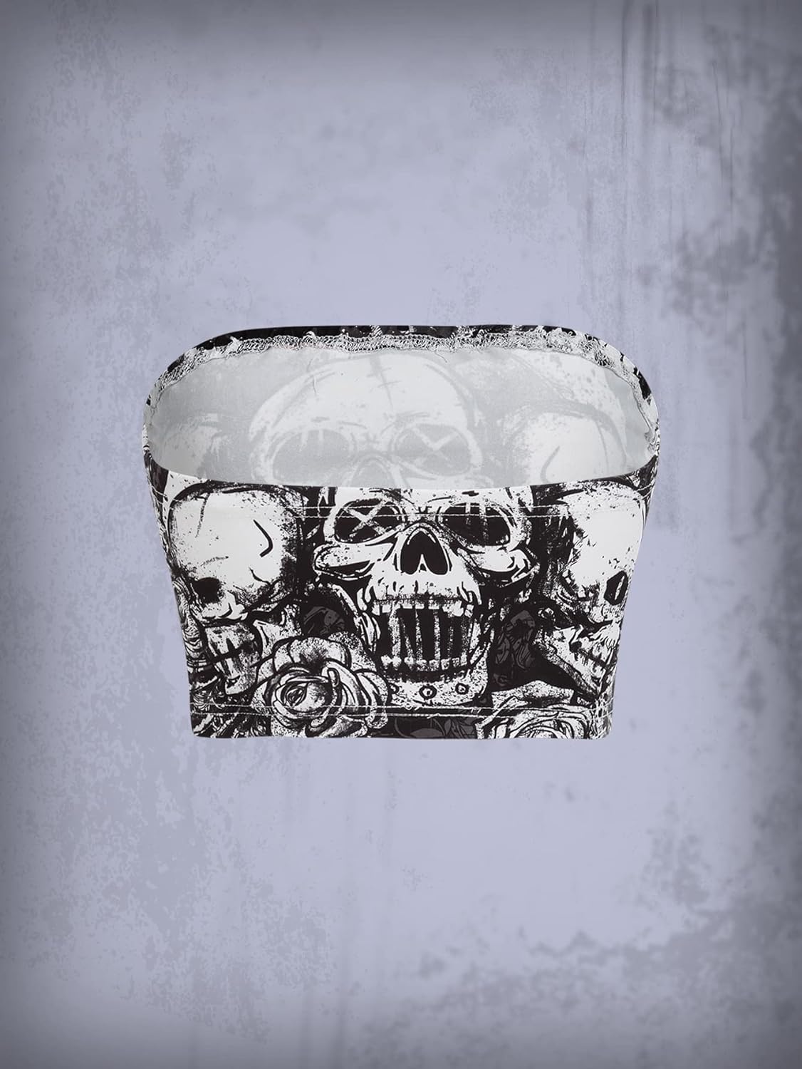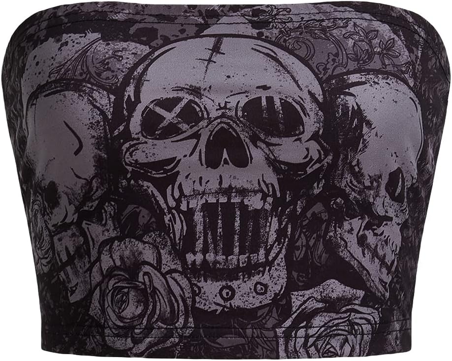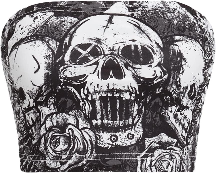 SOLY HUX Women's Skull Floral Print Tube Crop Top Sleeveless Strapless Bandeau Y2K Tops