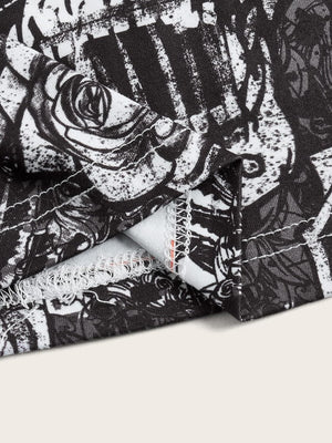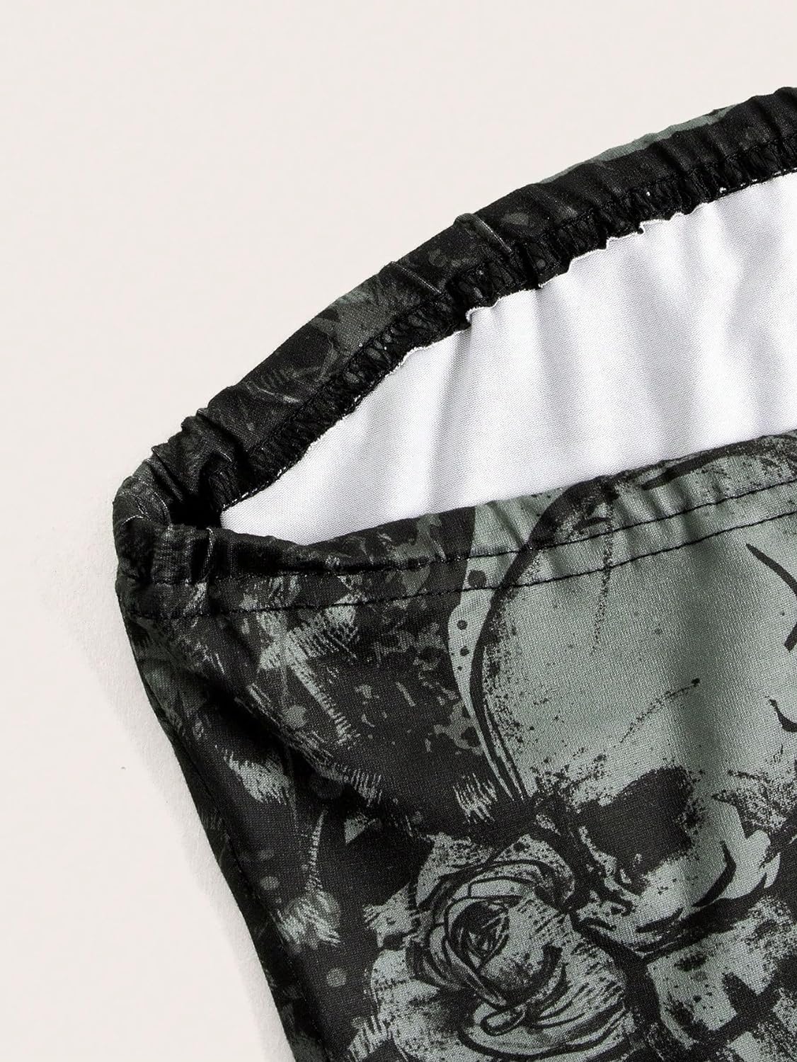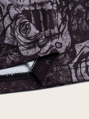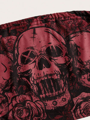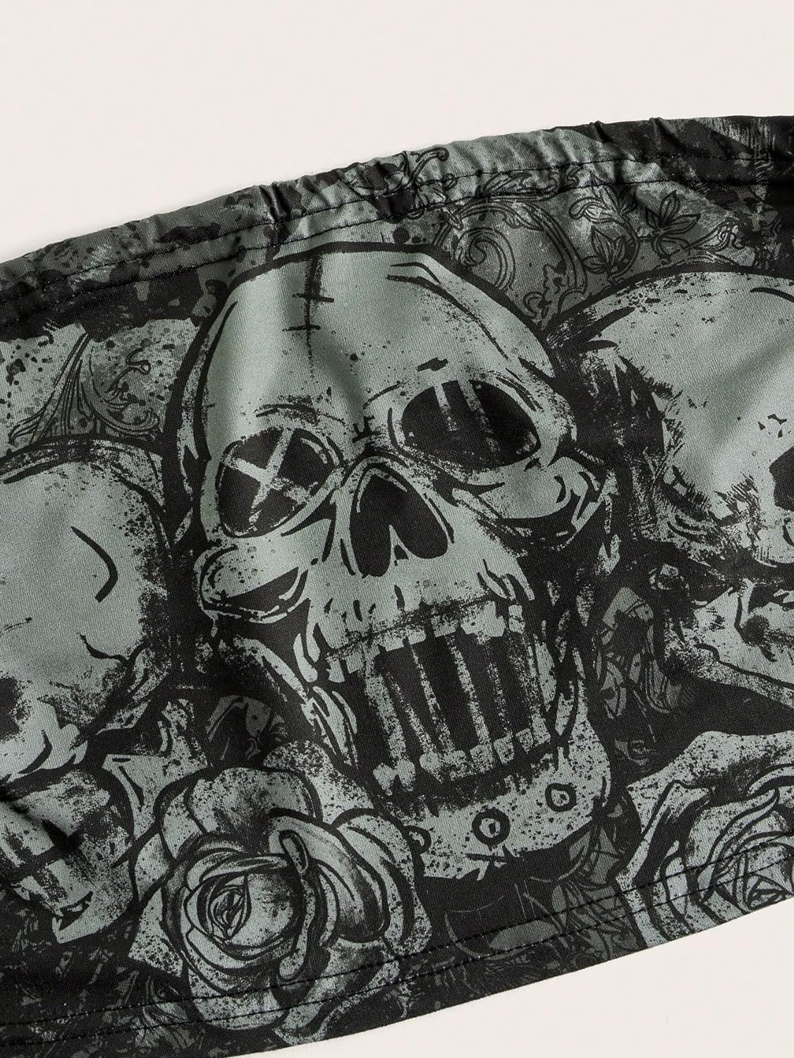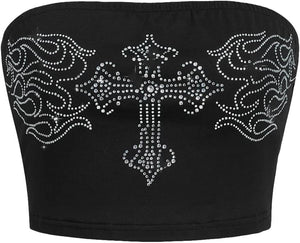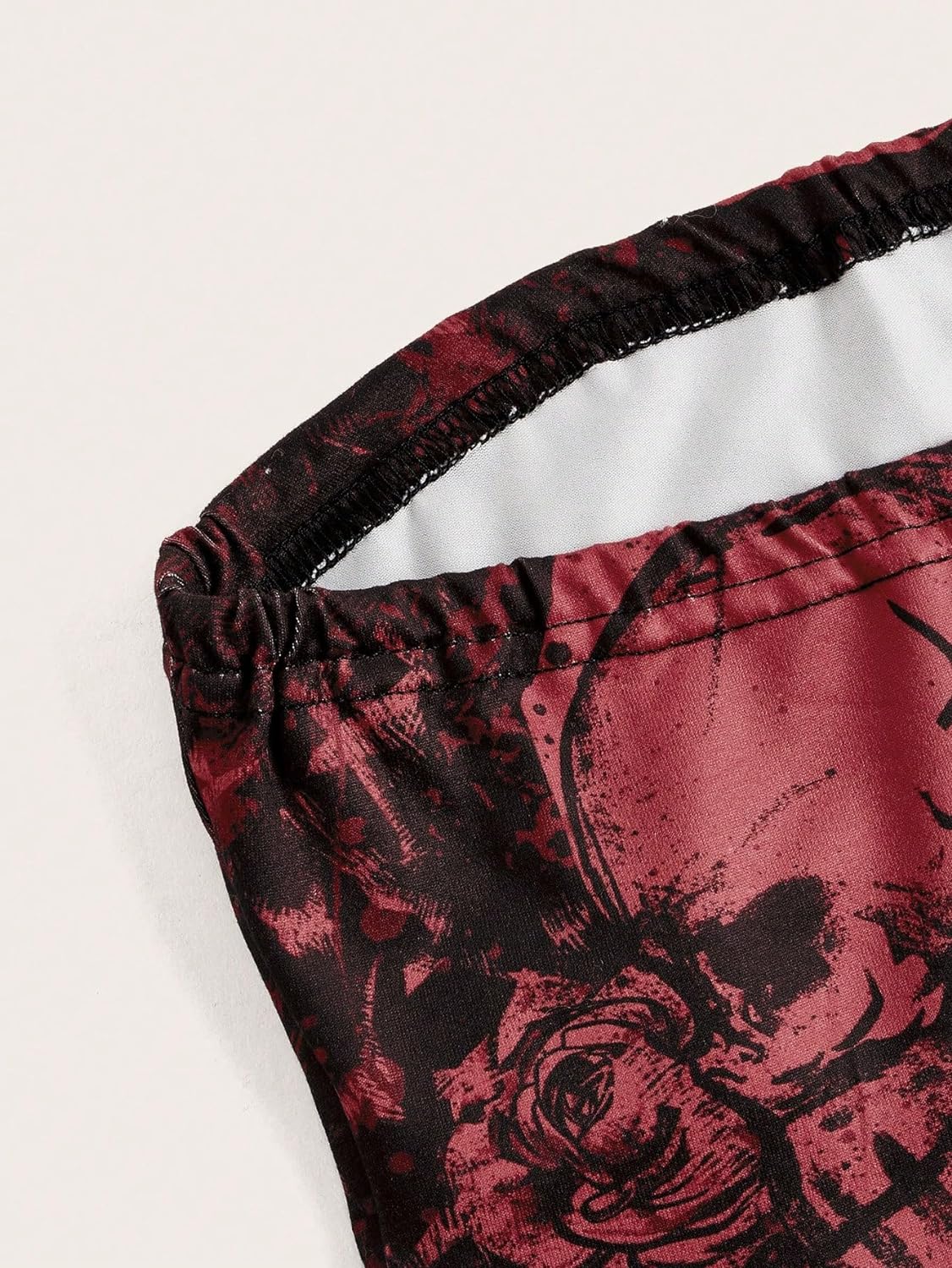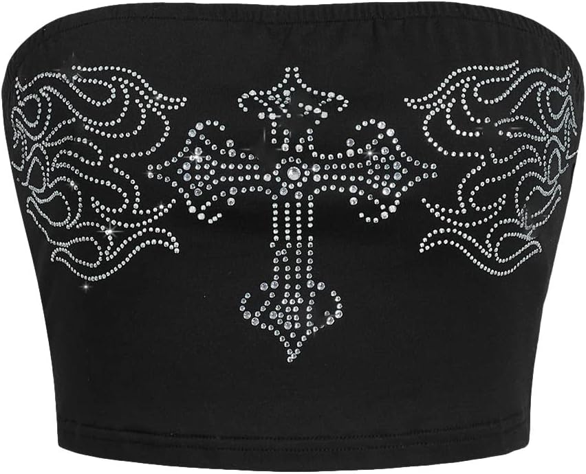 SOLY HUX Women's Skull Floral Print Tube Crop Top Sleeveless Strapless Bandeau Y2K Tops