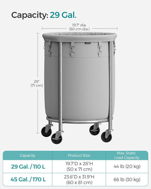 - [Plenty of Storage Space] With a size of 19.7”Dia. x 28”H, this laundry basket on wheels has a large capacity for lots of clothes and bedding sheets, letting you easily do all of your laundry in a single trip