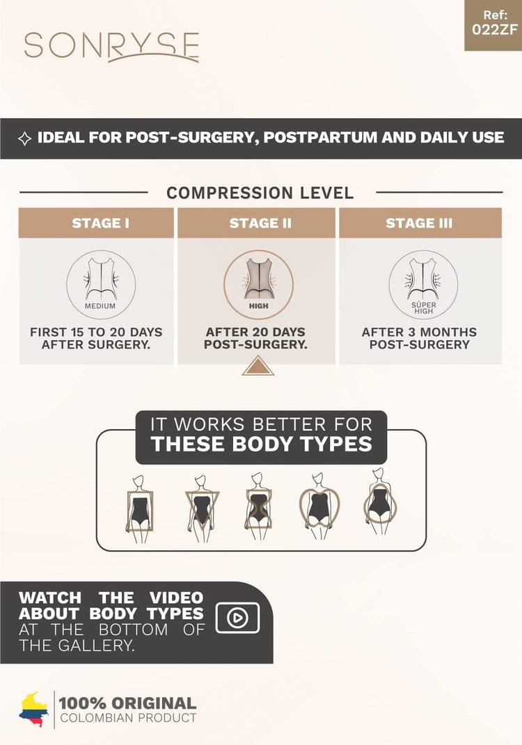 Sonryse 022ZL Fajas Colombianas Postparto Stage 1 Post Surgery Postpartum Lipo Compression Garment after Tummy Tuck