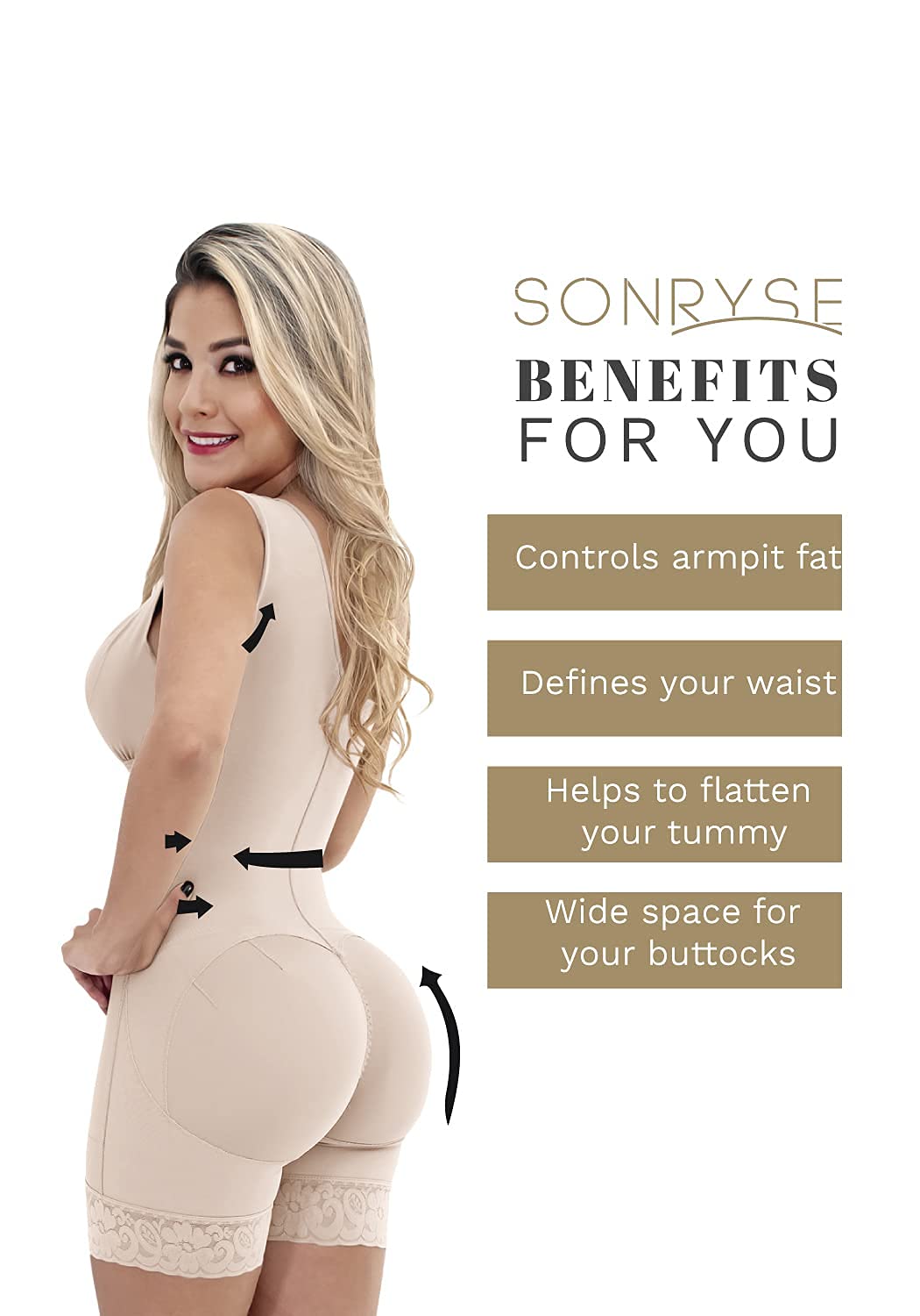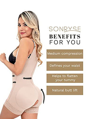 👗 BETTER THAN NO OTHER: Being light years away from any other brand of body shaper for women, our compression garment comes with double adjustment and superior fabrics. This shapewear full body faja provides an excellent combination of durability and comfort. When it comes to fajas girdles for women, our tummy tuck compression garment for women outlasts every shapewear. When you buy SONRYSE, you're not buying another Colombian fajas for women. Get 100% Colombian export quality.