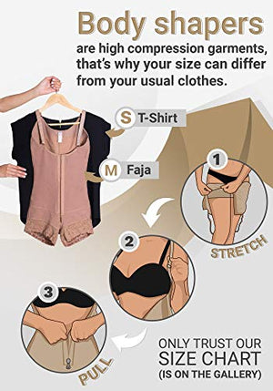 CHECK SIZE CHART BEFORE THE PURCHASE: Fajas’ sizes are different from usual clothes, always measure your waist and hips to find your size. Hips measures for BEGINNERS: XS (35-37"), S (37.1-39.5"), M (39.6-41.8"), L (41.9-44"), XL (44.1-46.5"), 2XL (46.6-48.9"), 3XL (49-51.2"), 4XL (51.3-53.5") If you are a regular faja user, find your size in the column EXPERT. It will seem smaller than it really is, STRETCH IT! We have great videos with NOT SO OBVIOUS TIPS (visit our Store to find them)