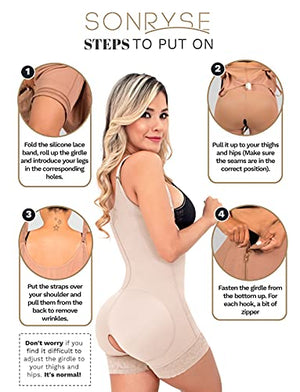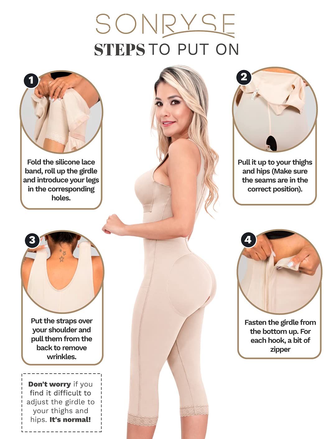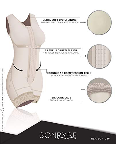Get a total makeover with this high compression body shaper for women. In 5 minutes give your back support and feel comfortable with the best full body faja in the market. Our firm control shapewear is ideal as a postoperative girdle, post partum girdles for women, girdles for women plus size, and liposuction compression garments. Being light years away from any other brand of shapewear for women, our midsection shapewear comes with double adjustment and superior fabrics. This postpartum or post surgical compression garment provides an excellent combination of durability and comfort. When it comes to girdles for women, our firm control shapewear outlasts every body shaper for women. Our body shaper for women with invisible seams, a comfy Lycra lining and Powernet exterior hugs your body as a second skin. It adjusts perfectly to your body. Our Colombian faja goes beyond a regular postoperative girdle since it features SKINVITACARE®, a component with properties for a gentle skin touch while shaping. The tummy control shapewear from SONRYSE will contour your silhouette while keeps your skin from irritation due to its superior shaping tech. We know how valuable comfort is in our compression garments after liposuction or giving birth. When you buy SONRYSE, you're not buying another high compression shapewear. Get 100% Colombian export quality.